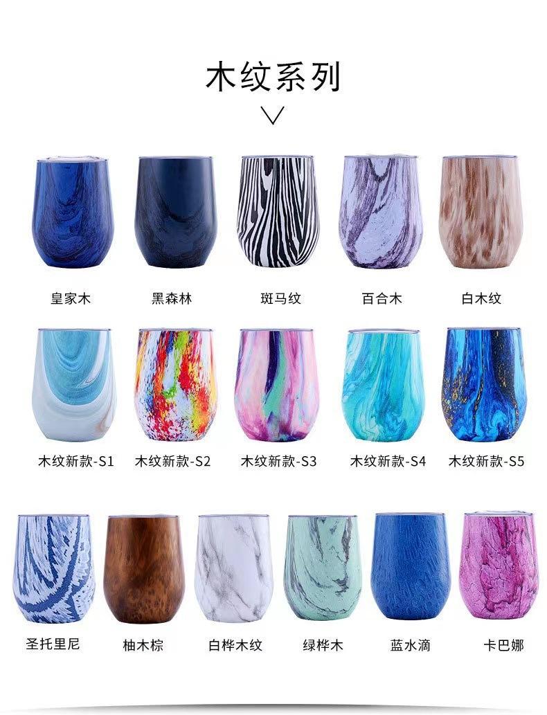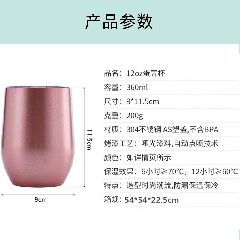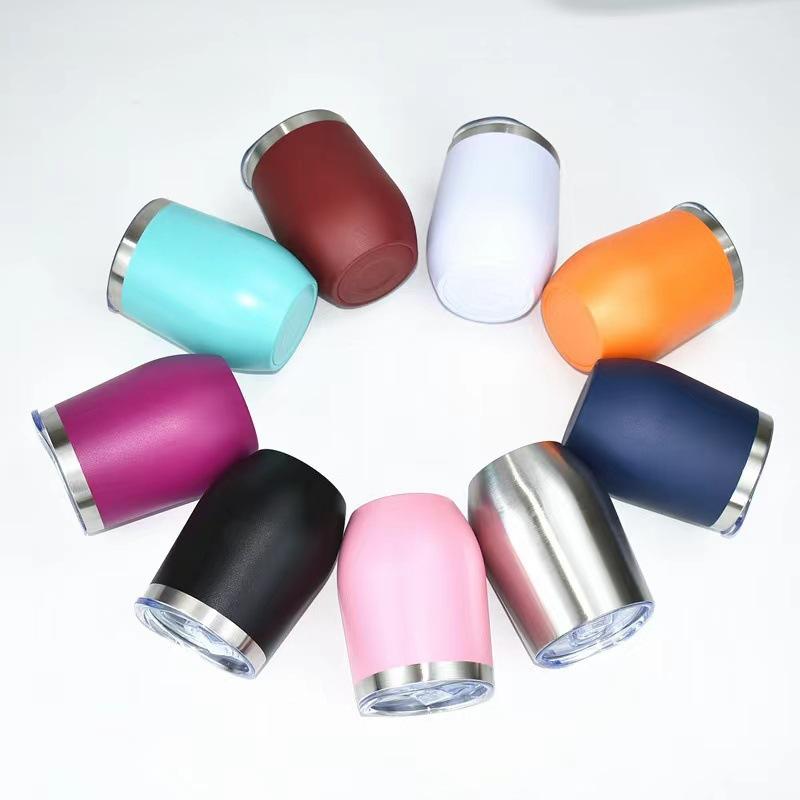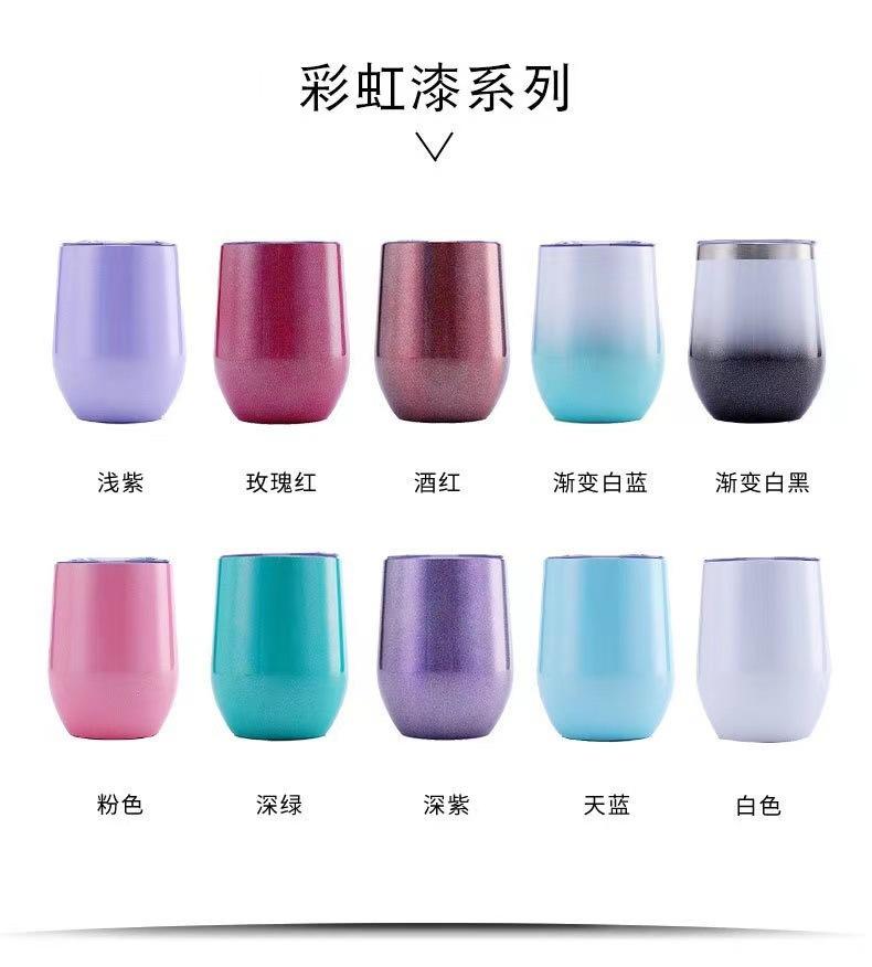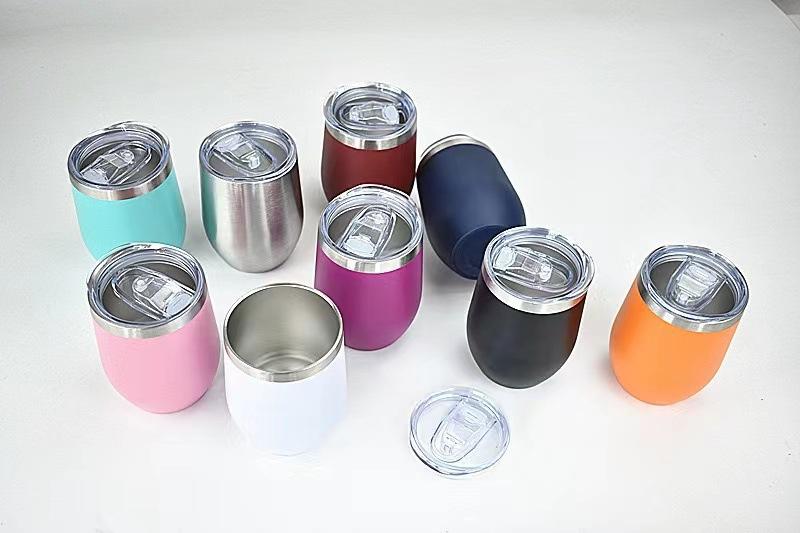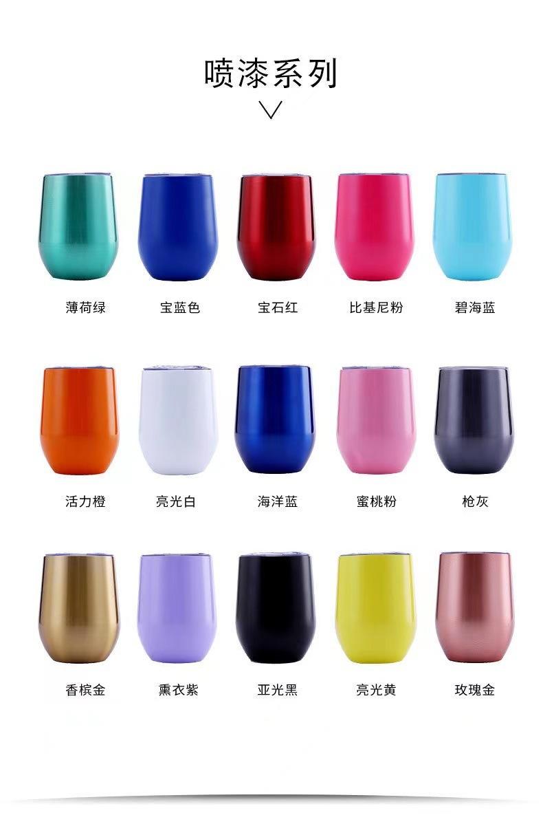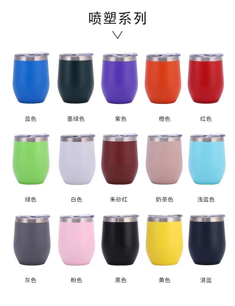 Taza de Huevo Swig Transfronteriza Personalizada Acero Inoxidable 304 Copa de Vino Tinto en Forma de U de Gran Vientre 12 oz Taza de Cáscara de Huevo Termo de Plástico Pulverizado