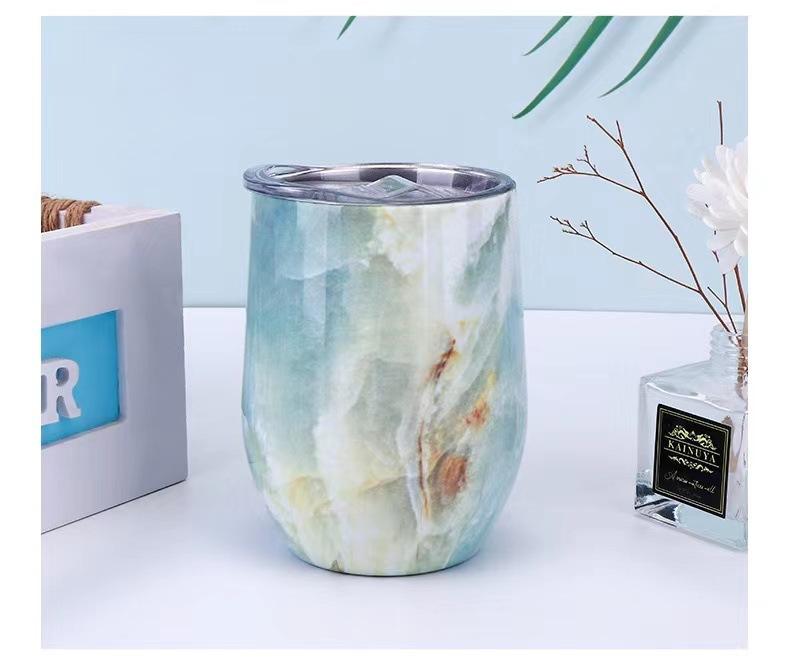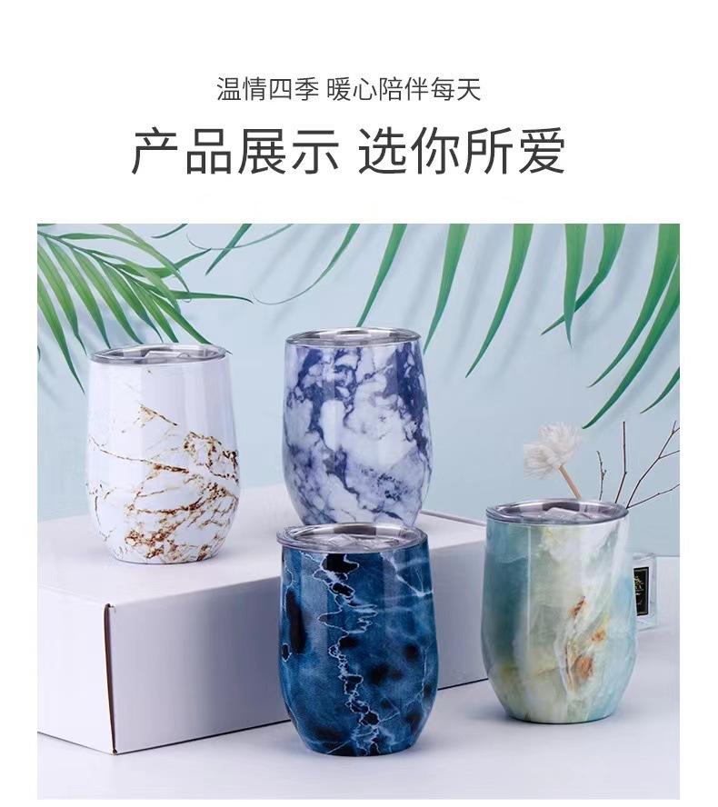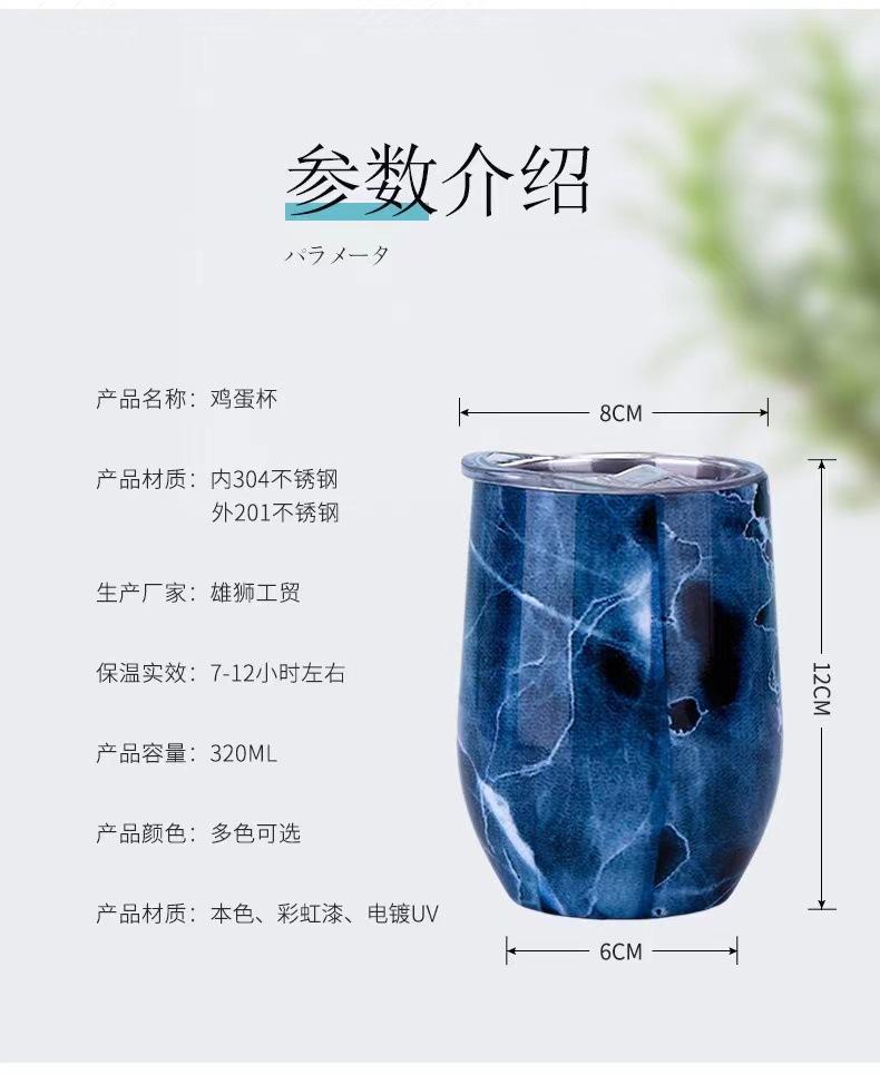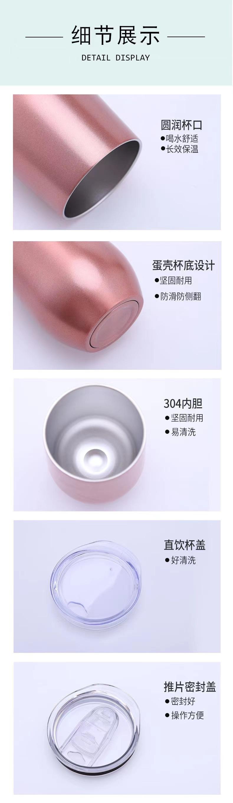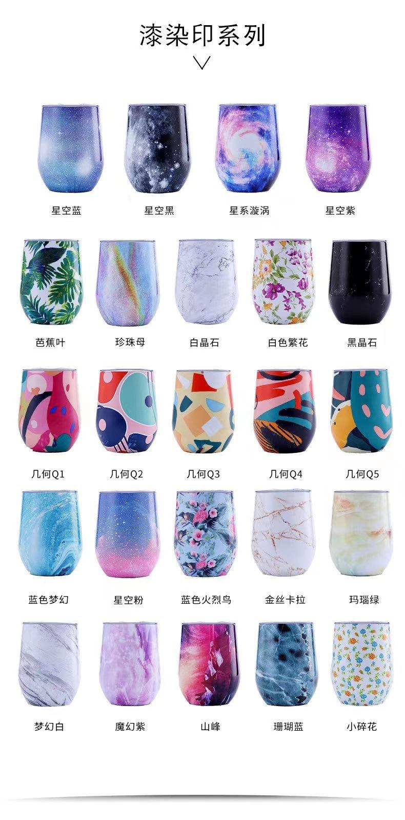 Taza de Huevo Swig Transfronteriza Personalizada Acero Inoxidable 304 Copa de Vino Tinto en Forma de U de Gran Vientre 12 oz Taza de Cáscara de Huevo Termo de Plástico Pulverizado