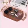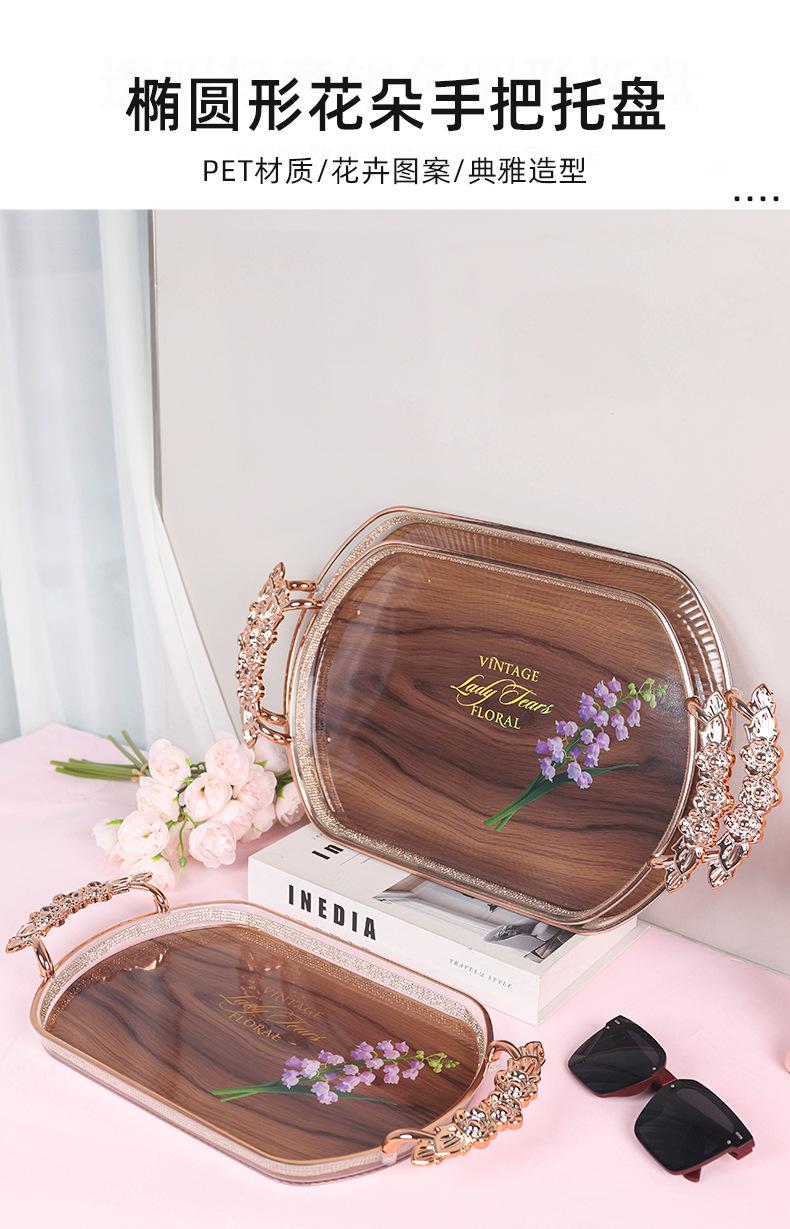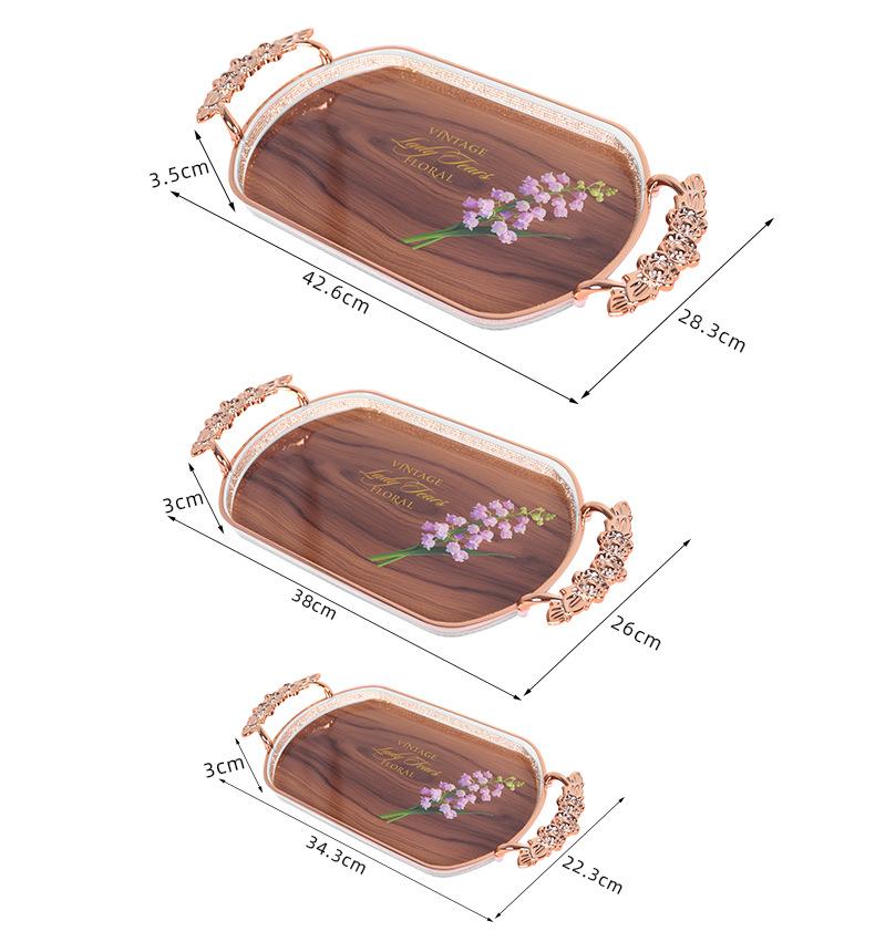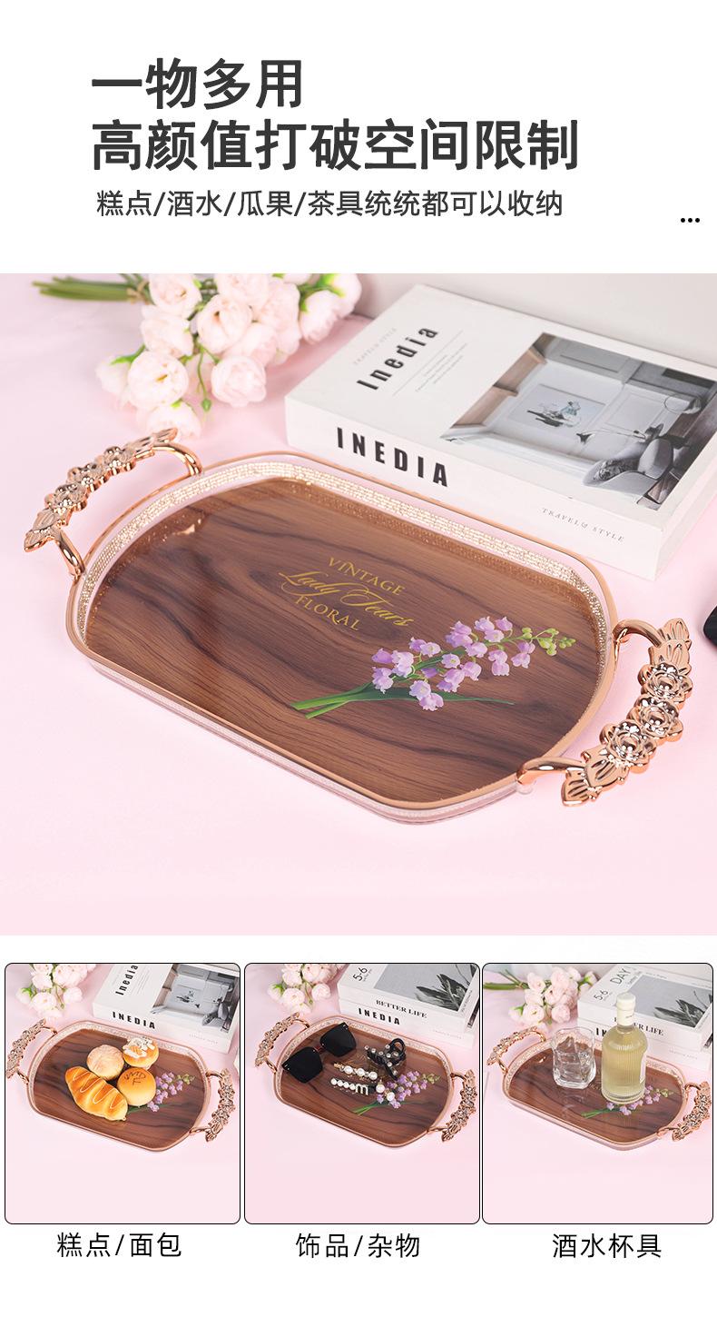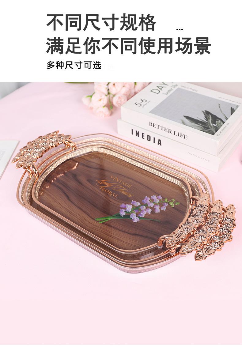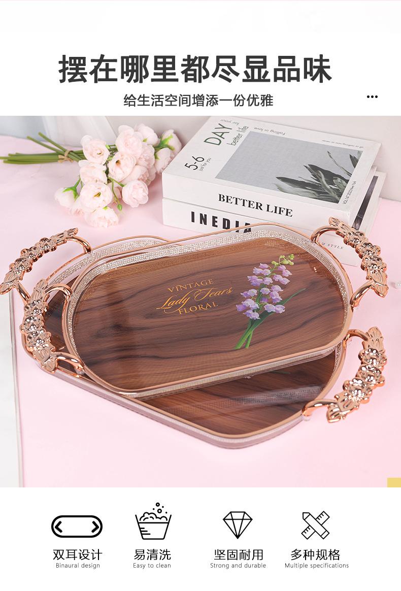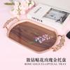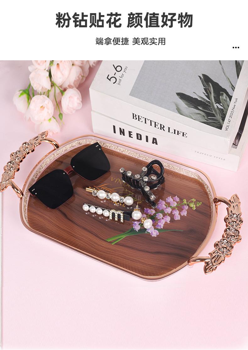 Bandeja ovalada de oro rosa con detalles de diamantes, estilo de lujo ligero, para el hogar, para tazas de té, cristalería, bandeja de almacenamiento, plato de frutas, plato de servicio