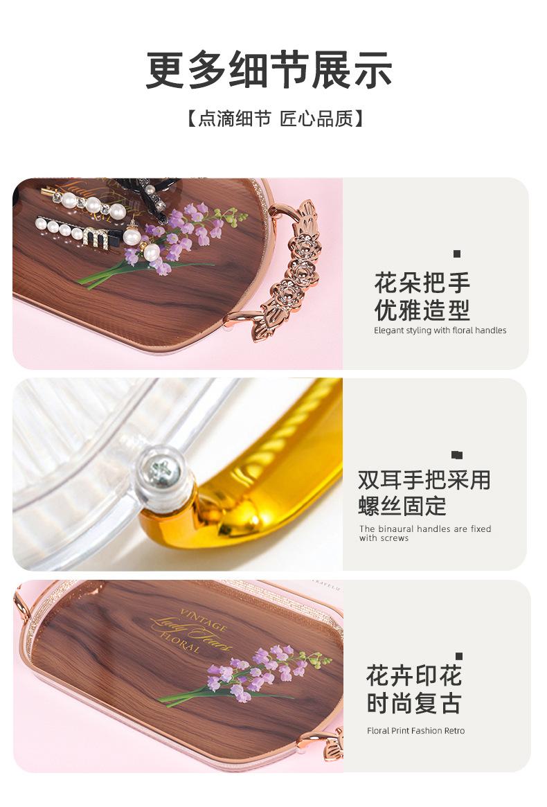 Oval Lavender Applique Rhinestone Tray Rose Handles