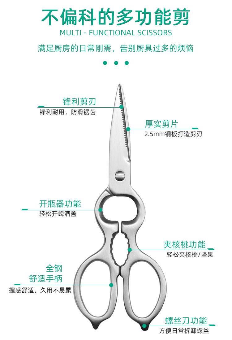 Tijeras de Cocina Multifuncionales de Acero Inoxidable para Uso Doméstico para Matar Pescado, Barbacoa, Poderosas Tijeras para Huesos de Pollo