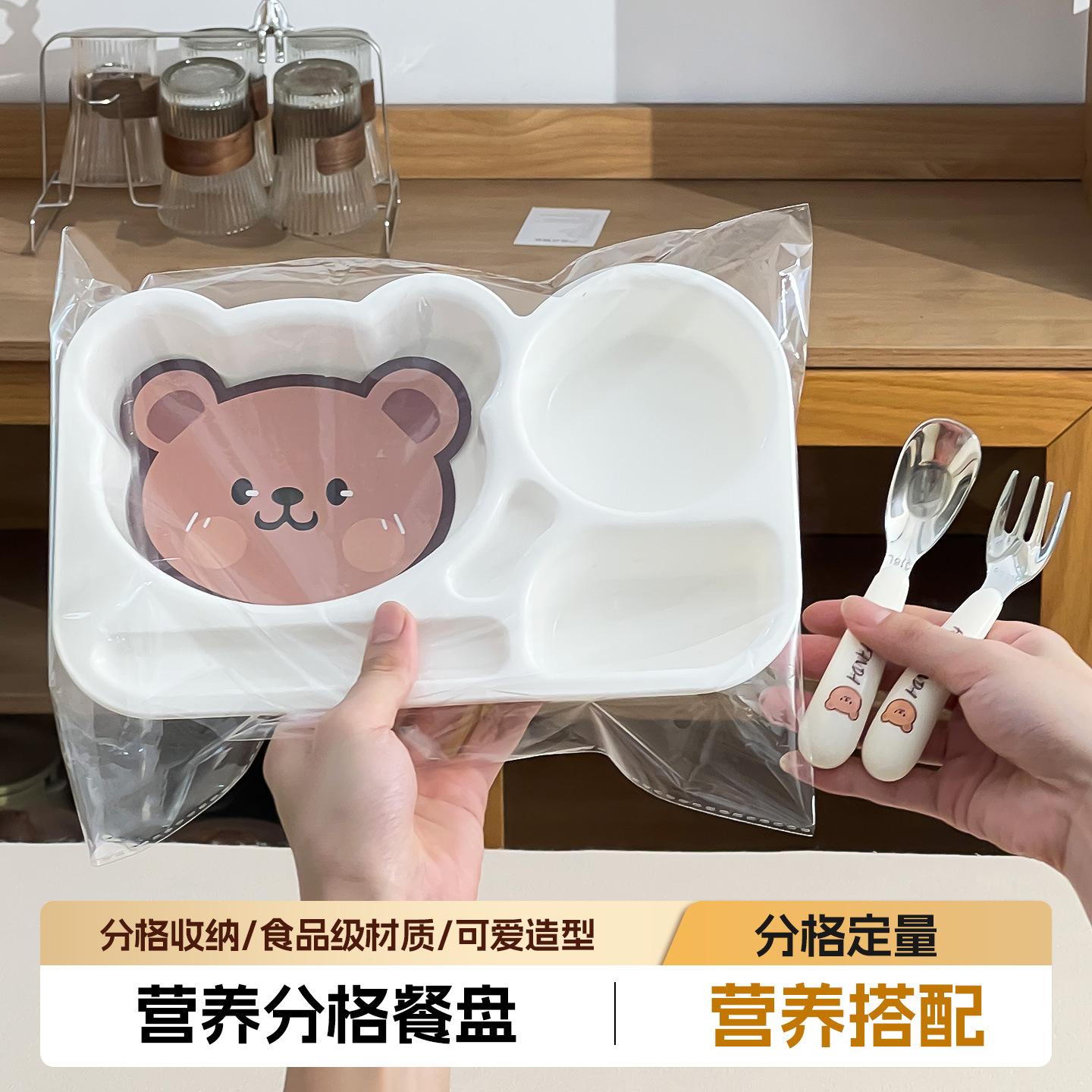 Plato Creativo para Cena de Niños Familia Oso Bebé Comiendo Plato de Dibujos Animados Lindo Plato Dividido para Hogar Vajilla Juego de Vajilla para Complemento Alimenticio