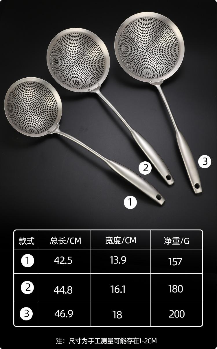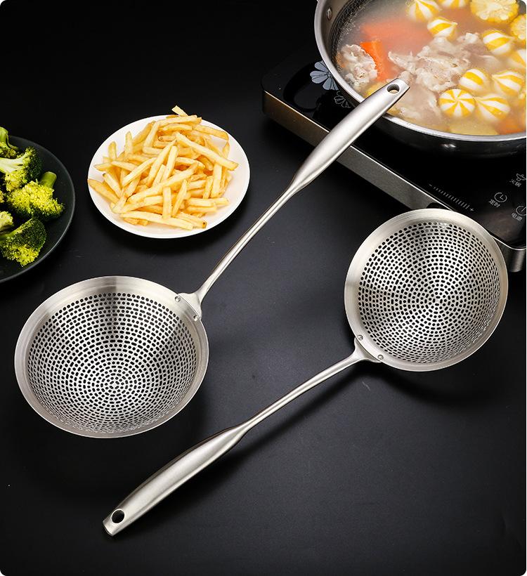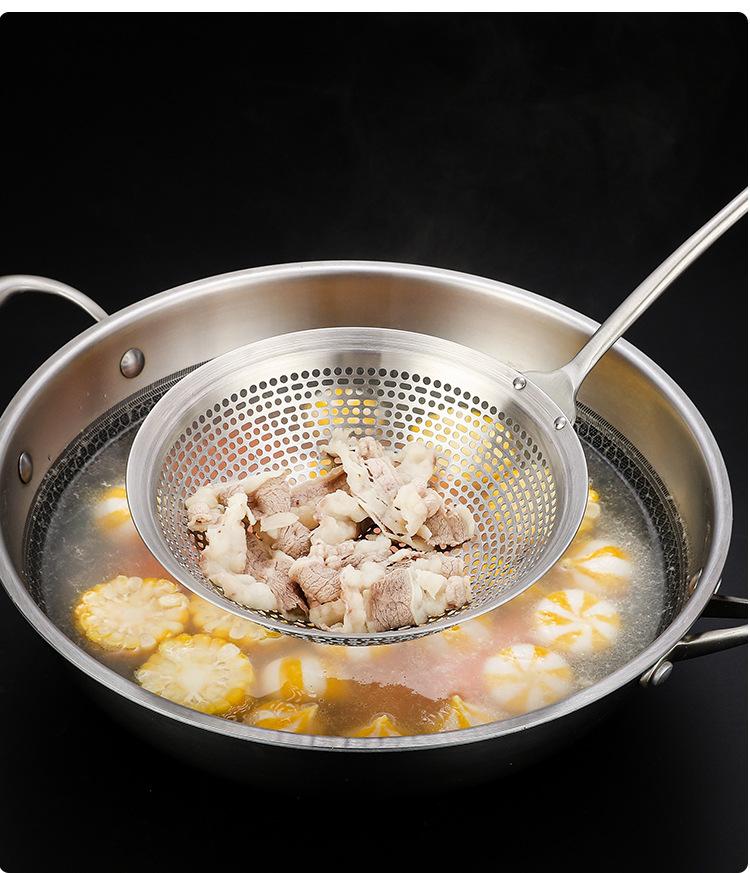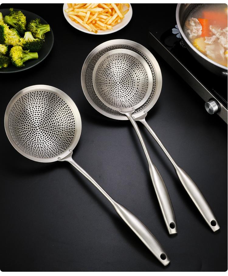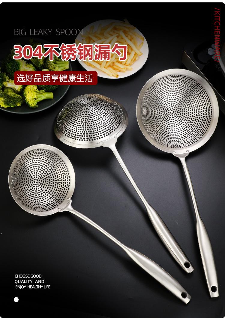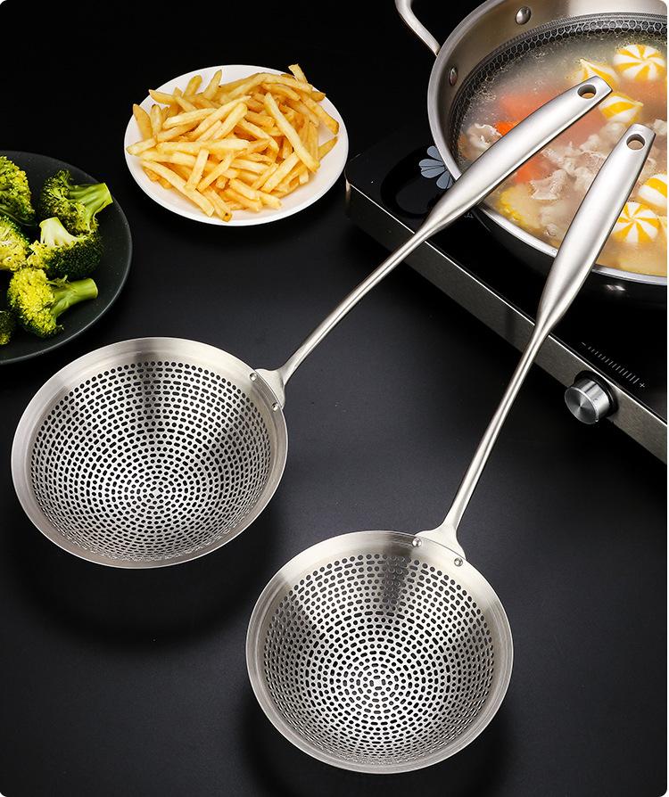 Colador de acero inoxidable 304 con filtro de malla, cuchara grande para fideos de pescado, bola de masa hervida, malla gruesa para el hogar, olla caliente frita, cuchara grande