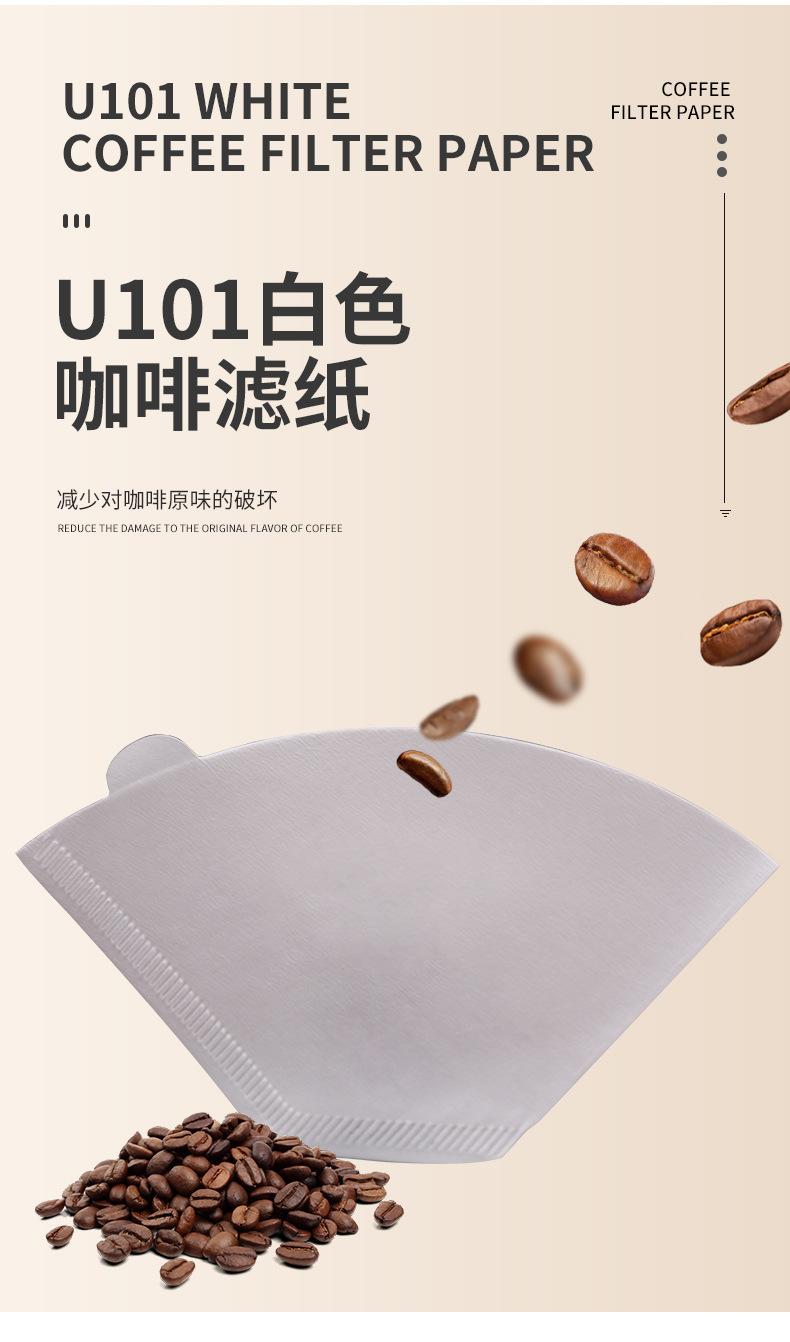 Papel de filtro de café en forma de abanico U101 embudo de café de mano plegable filtro plano americano Copa 1-2 pulpa de madera humana papel de filtro