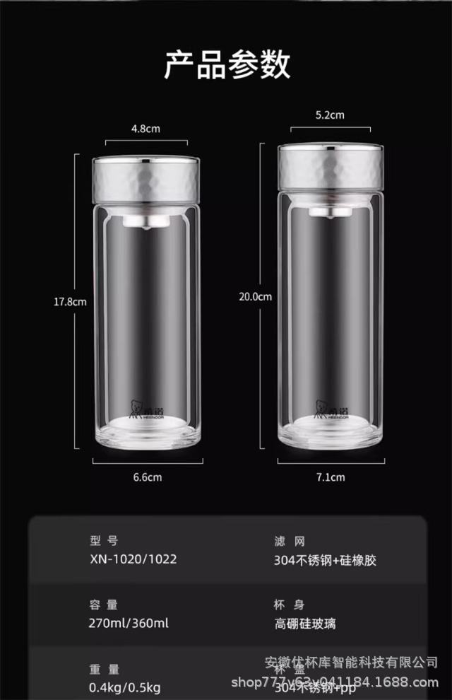 Vaso de Vidrio de Doble Capa Xino 1022 para Hombres, Vaso de Agua de Gran Capacidad, Adecuado para Uso Comercial y Doméstico, Resistente a Altas Temperaturas, Taza de Té Anti-Quemaduras, Regalo Exquisito
