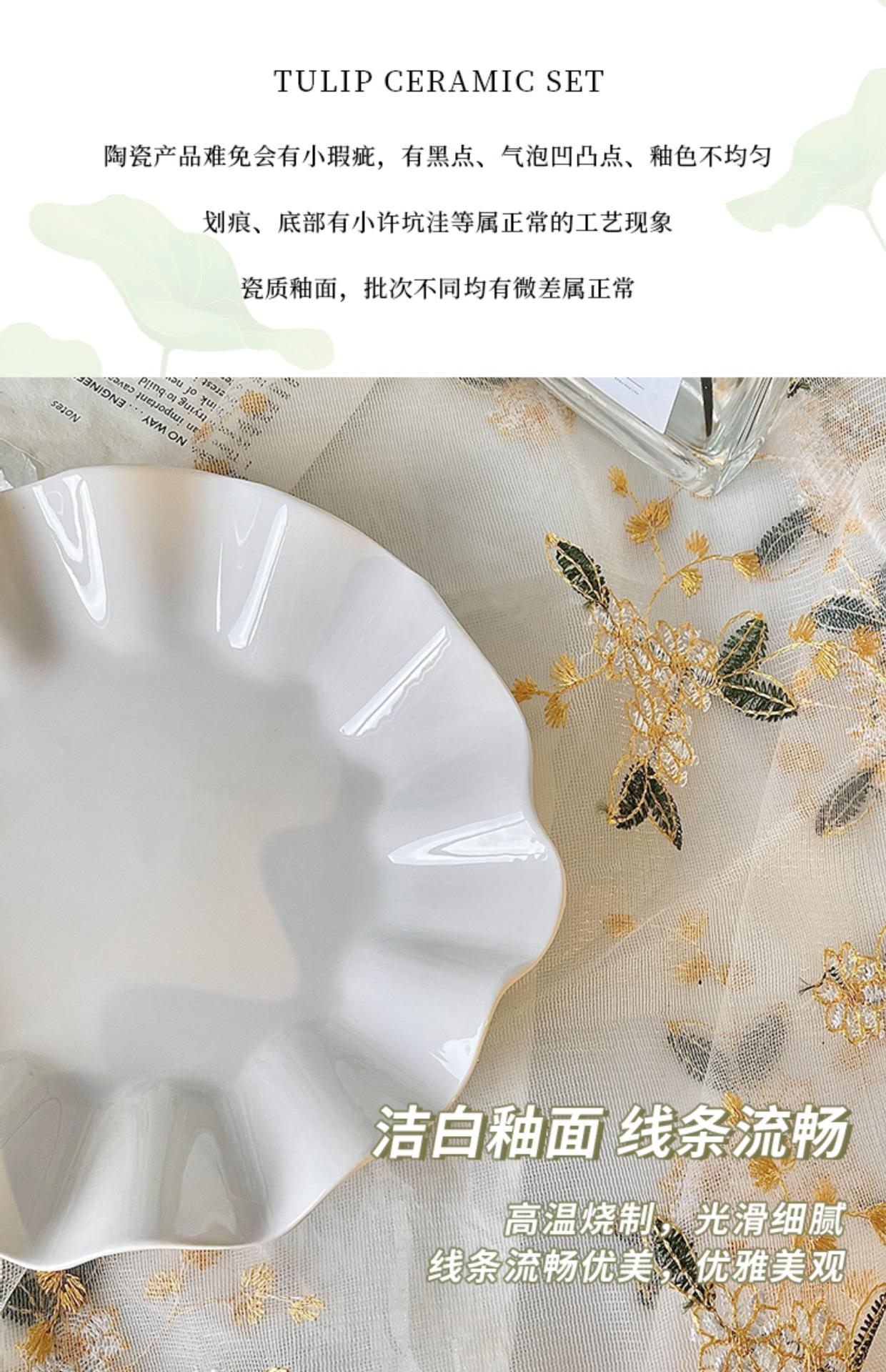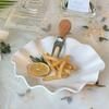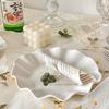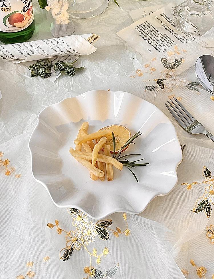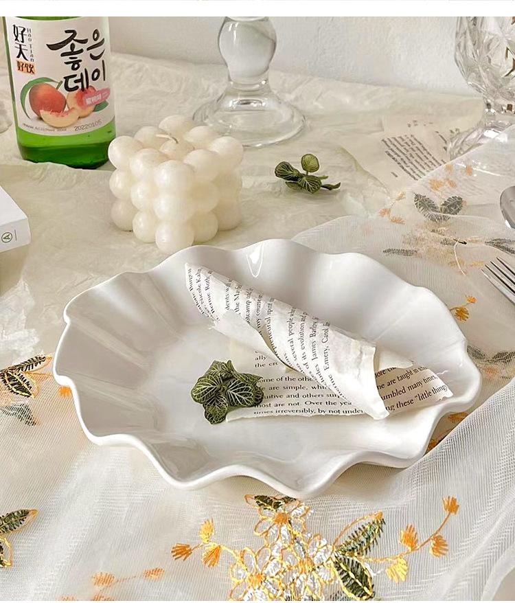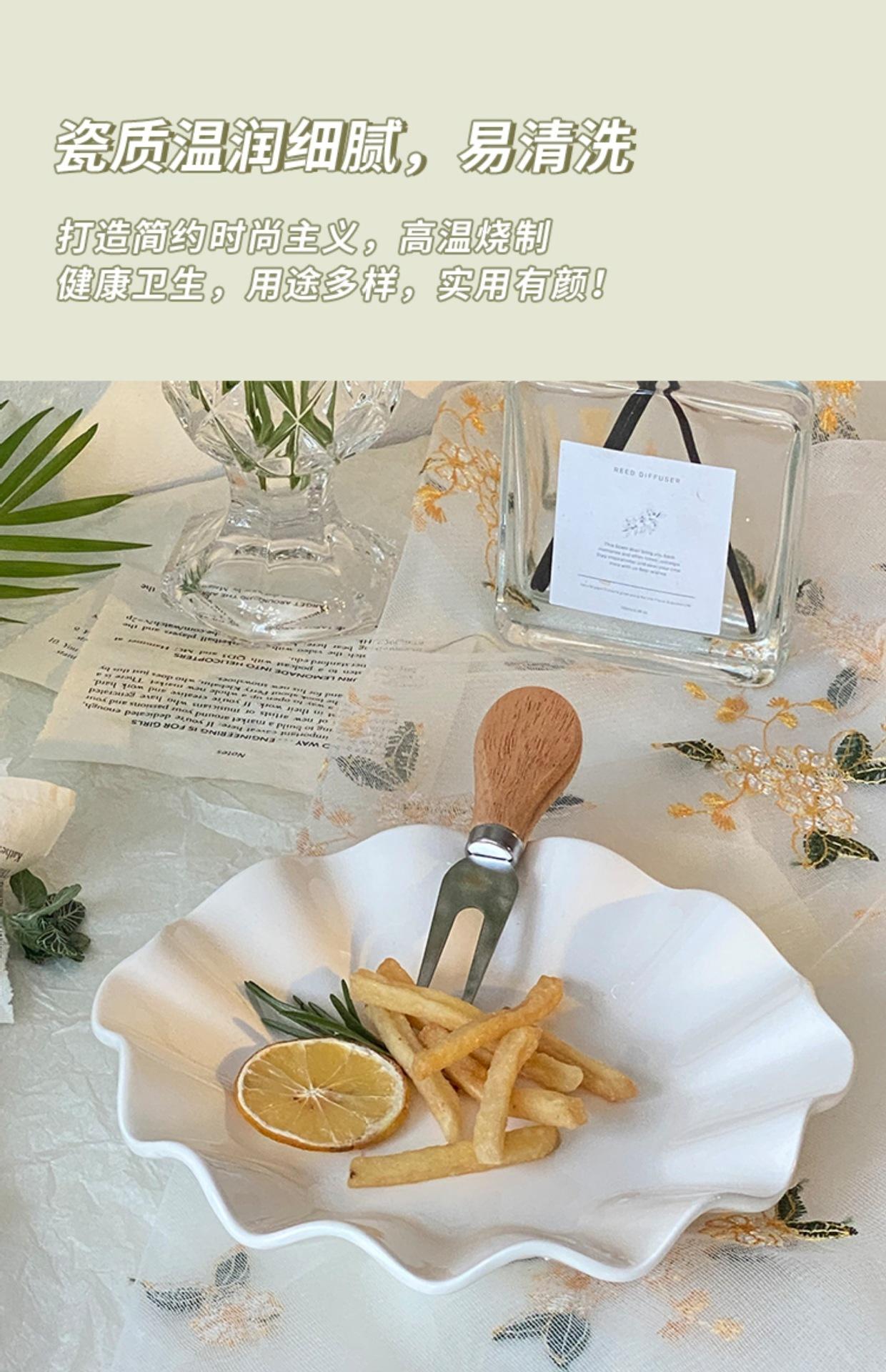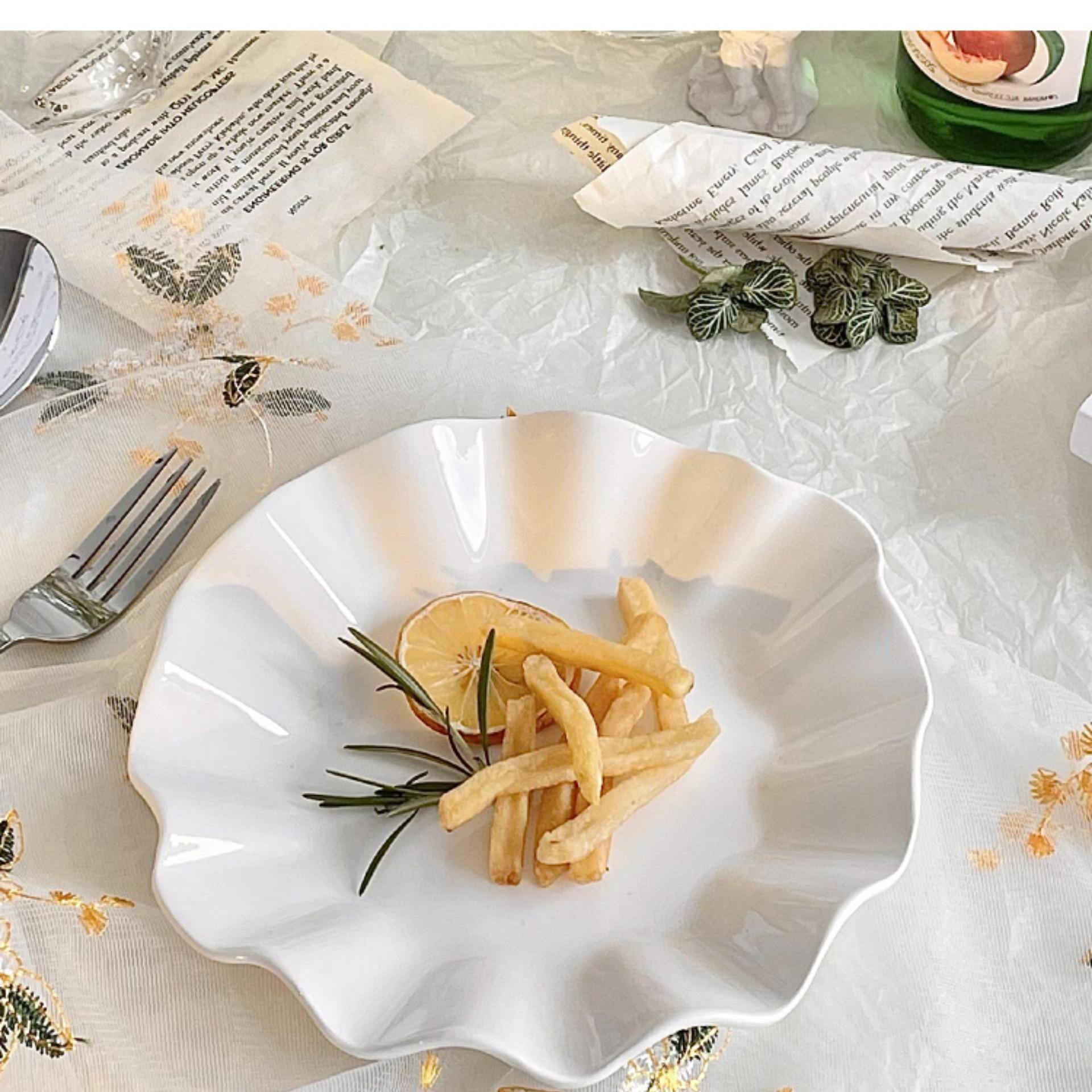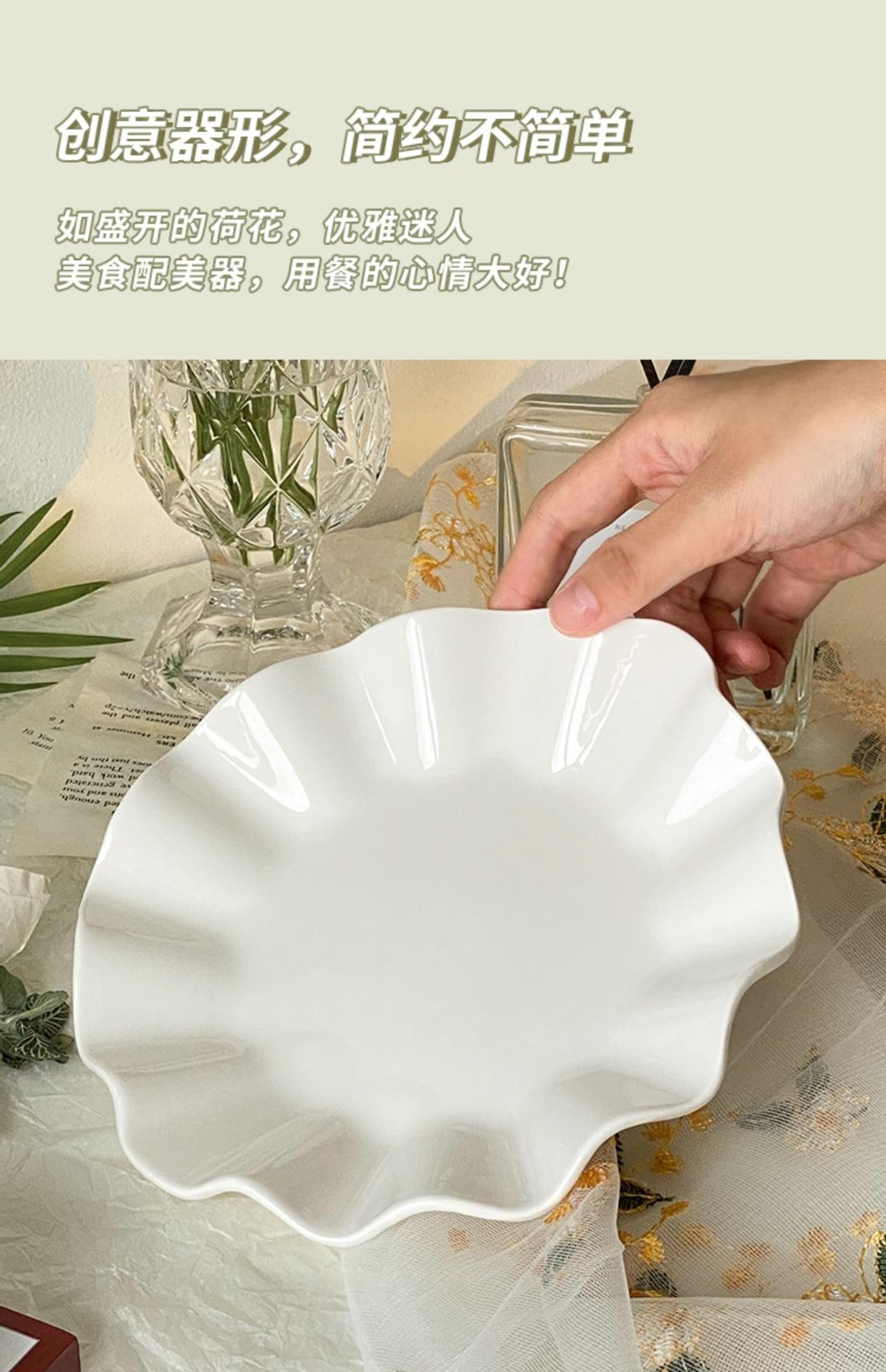 Plato de Hoja de Loto de Cerámica Blanca Pura Plato de Fruta Creativo para el Hogar Plato Restaurante Plato de Hoja Ondulado Irregular Plato Dulcero