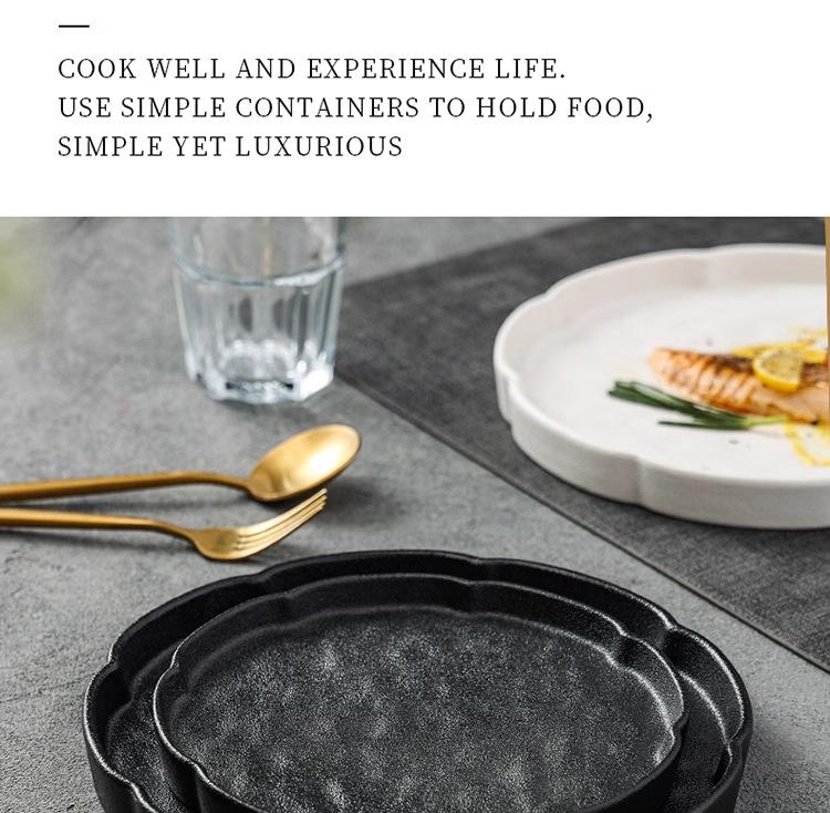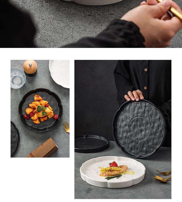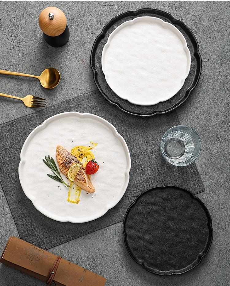 Compra Plato de cerámica en blanco y negro simple, creativo y de aspecto alto, para el hogar, restaurante, hotel, plato de carne esmerilado, plato occidental al por mayor en Joom.pro