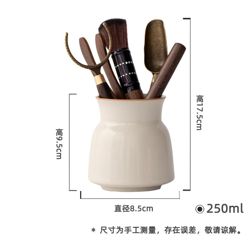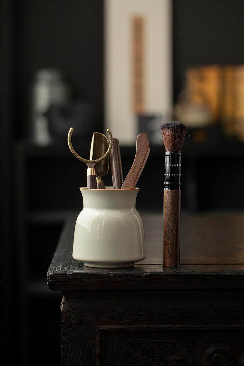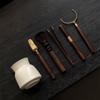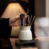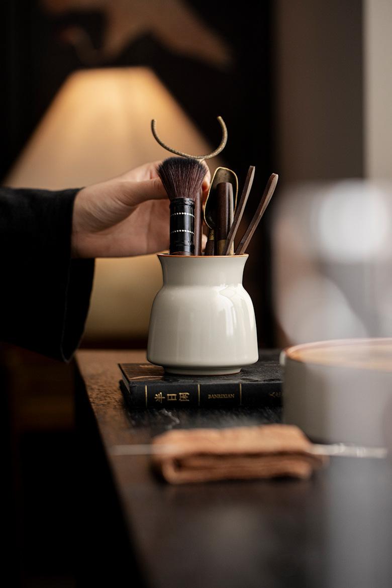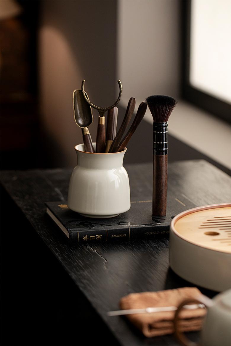 Moji Ruyao Beige Juego de Té de Ceremonia de Té para el Hogar de Cerámica Seis Caballeros Accesorios Soporte para Pincel de Té de Ébano Cuchara de Té