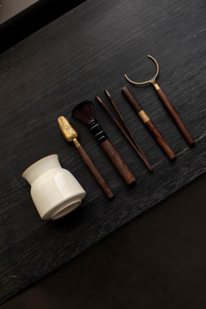Beige-ru kiln-the six gentlemen of the tea ceremony, Beige-ru kiln-tea ceremony tube, Five-piece tea ceremony accessories set
