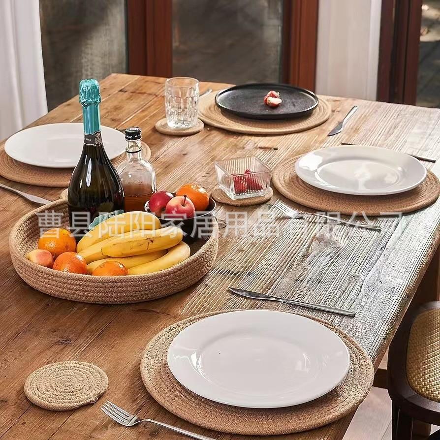 Individual de Cuerda de Algodón Tapete Aislante Antimanchas Tapete para Mesa Coaster Doméstico Tapete para Cazuela Resistente a Altas Temperaturas Antideslizante Estilo Ins Tapete Decorativo