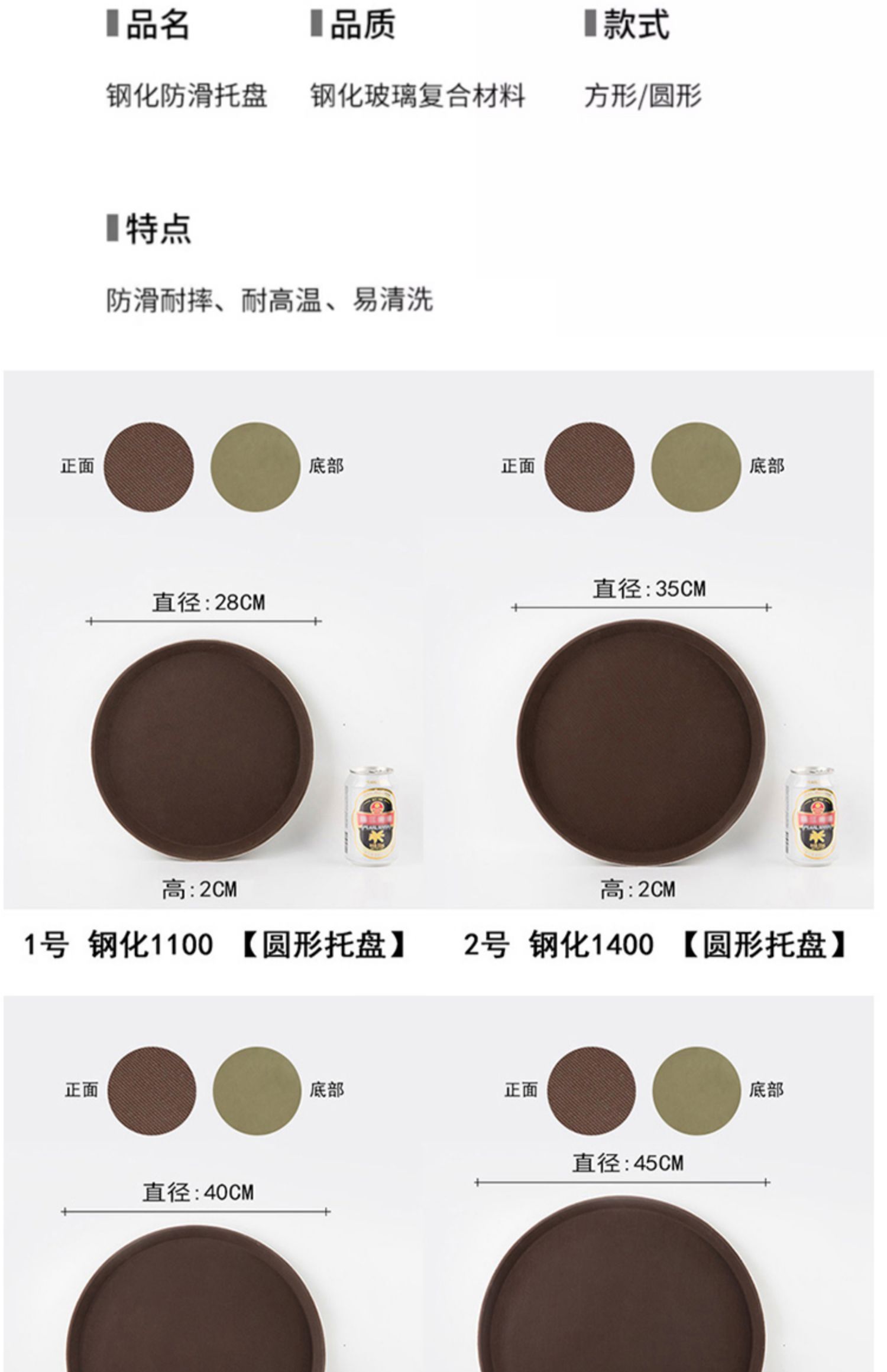 Bandeja Antideslizante Bandeja Rectangular Bandeja de Servicio de Plástico Bandeja de Servicio Comercial para Hotel Bar Catering Bandeja Grande