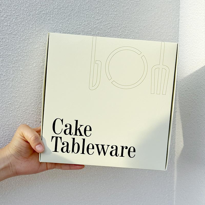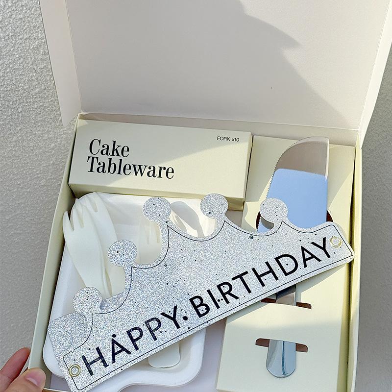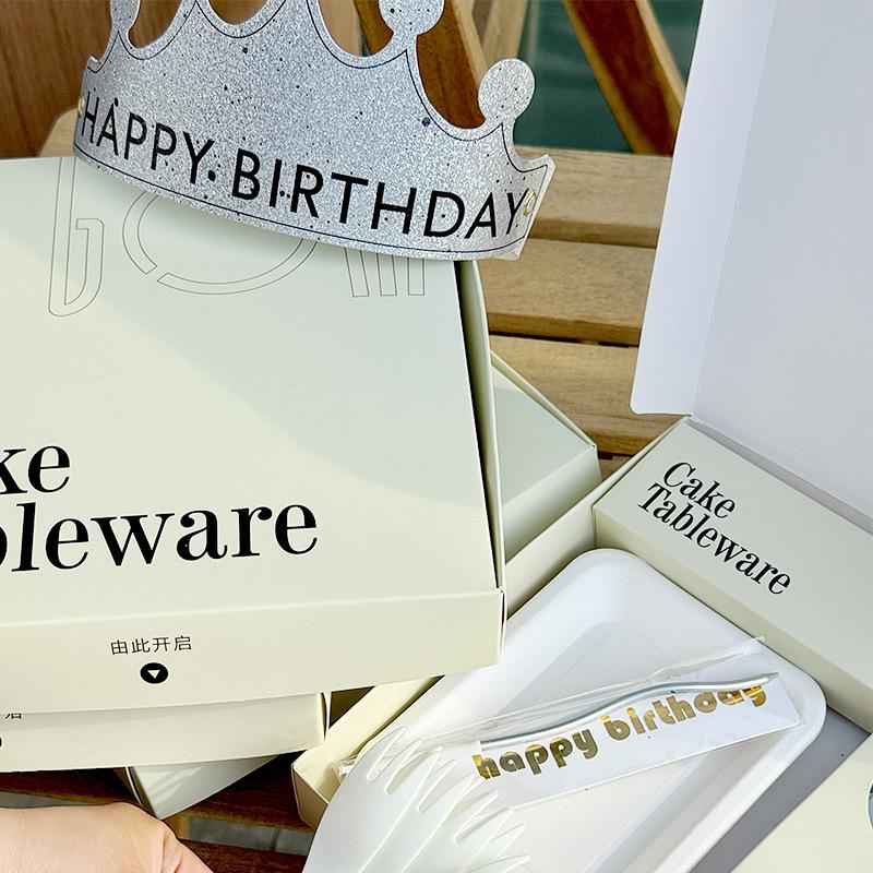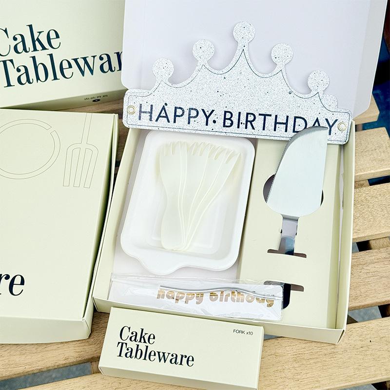 Juego desechable de plato, tenedor y cuchillo para pastel, combinación de plato y tenedor cuatro en uno, cuchillo y tenedor de acero inoxidable, vajilla de cumpleaños con logo