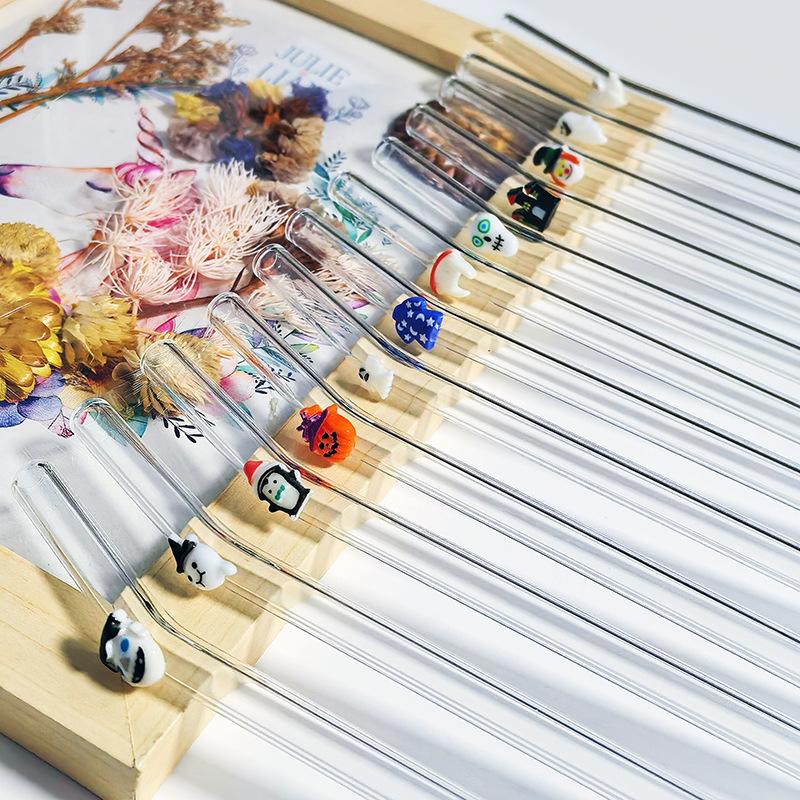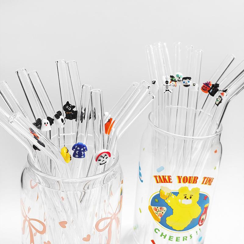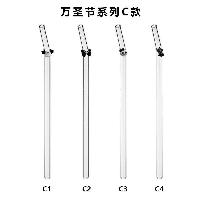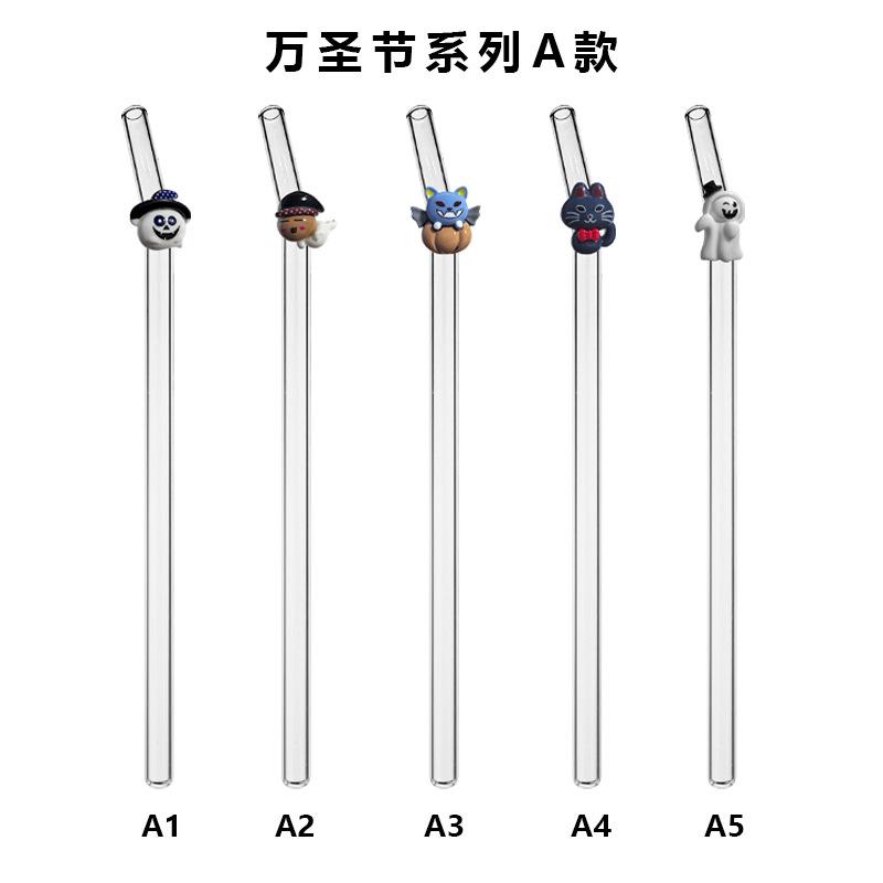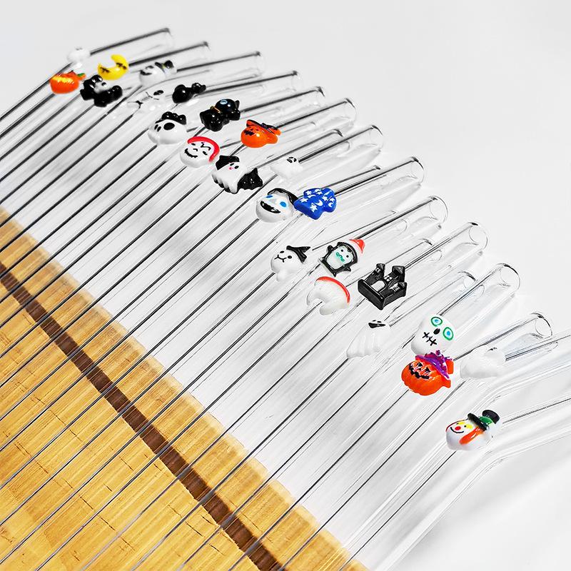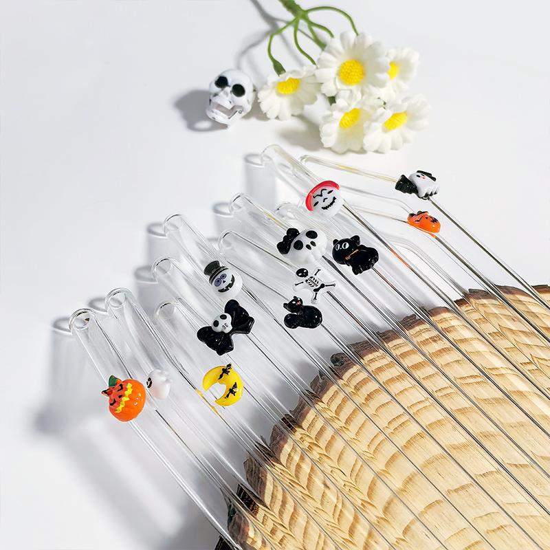Pajita de Vidrio de Halloween Resistente al Calor Fácil de Limpiar Accesorios de Plástico Forma Personalizada Elementos Lindos Ventas Directas de Fábrica
