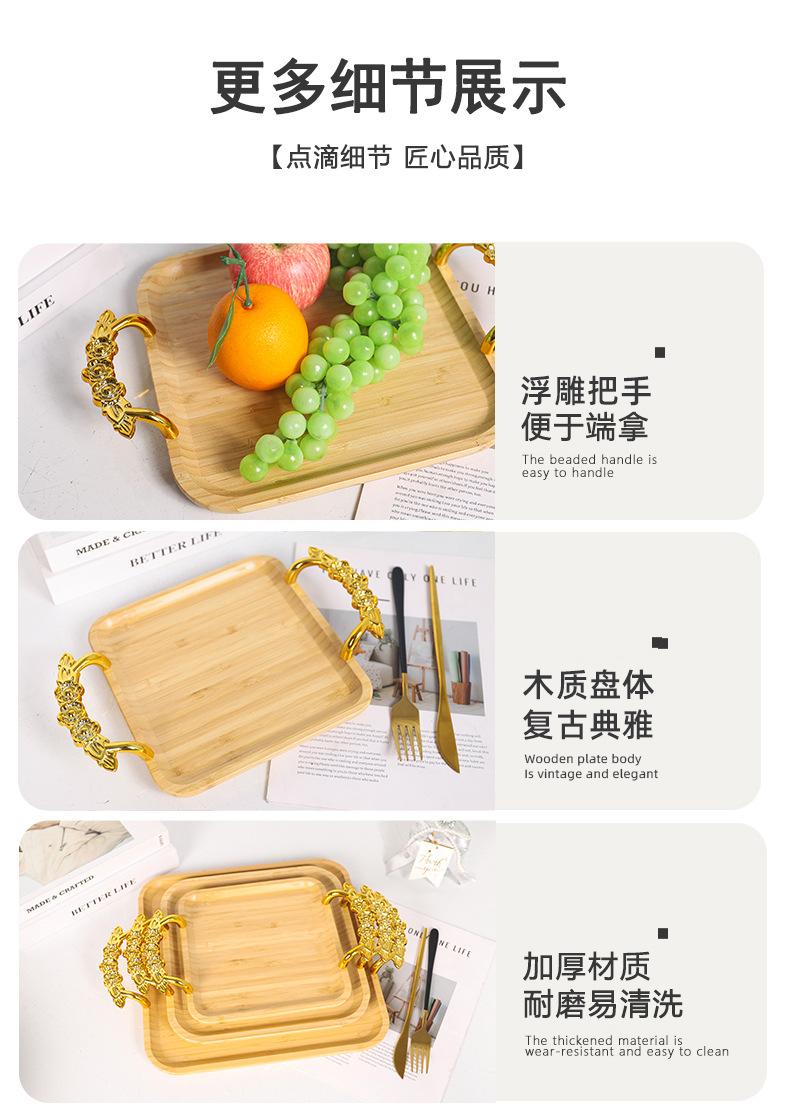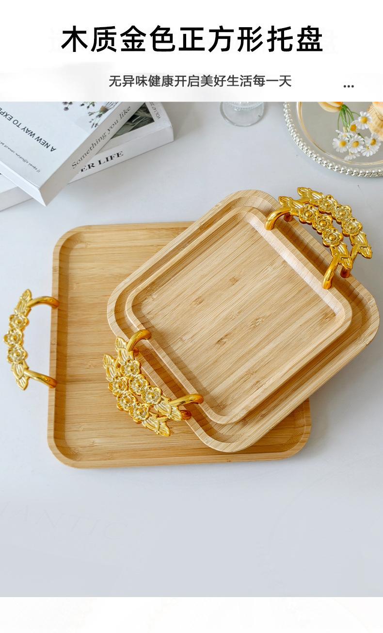 Bandeja Cuadrada de Madera con Asa Bandeja Simple Bandeja para Tazas de Agua Doméstica Bandeja para Té Bandeja para Fruta Bandeja para Almacenamiento de Nueces y Aperitivos