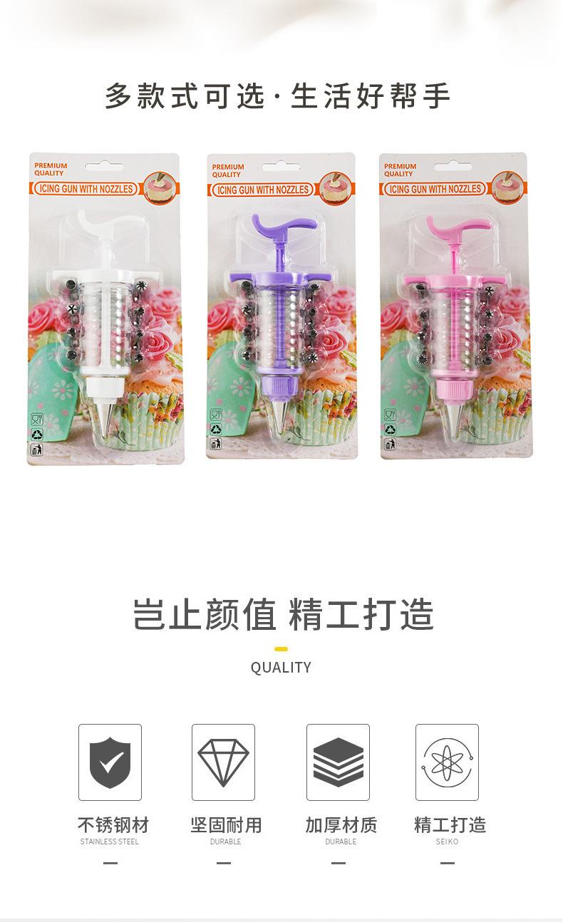 Pistola decoradora de plástico pastel galleta lechera acero inoxidable boquilla decoradora traje raspador de silicona traje venta directa de fábrica