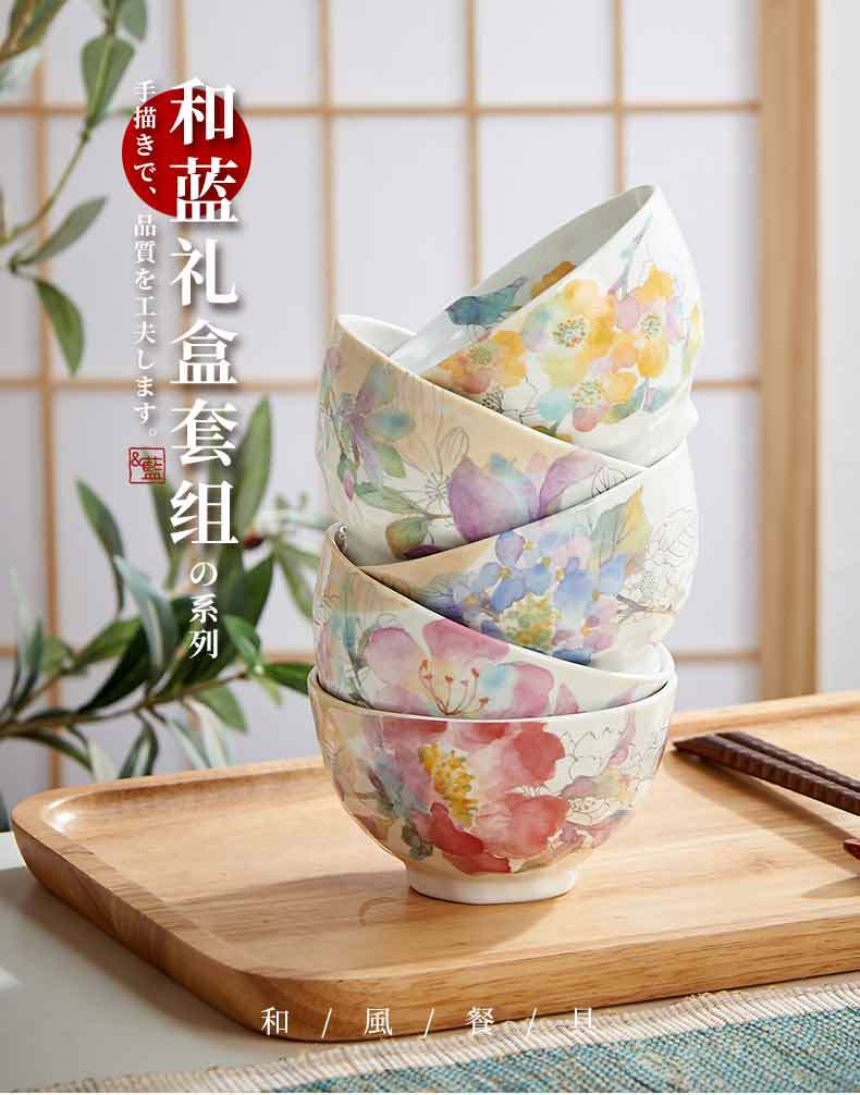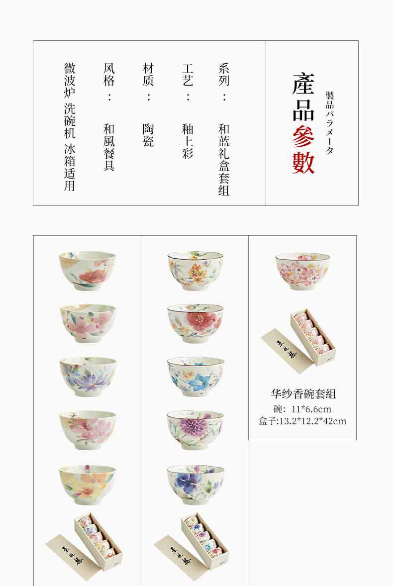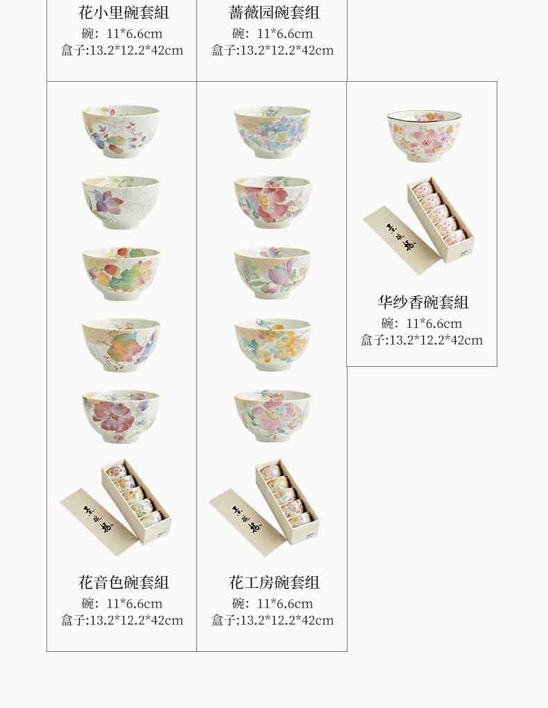 HL-01263-0 flower bud five-in-bowl set, HL-01802-1 flower watercolor five-in-bowl set, HL-02375-9 flower fragr...