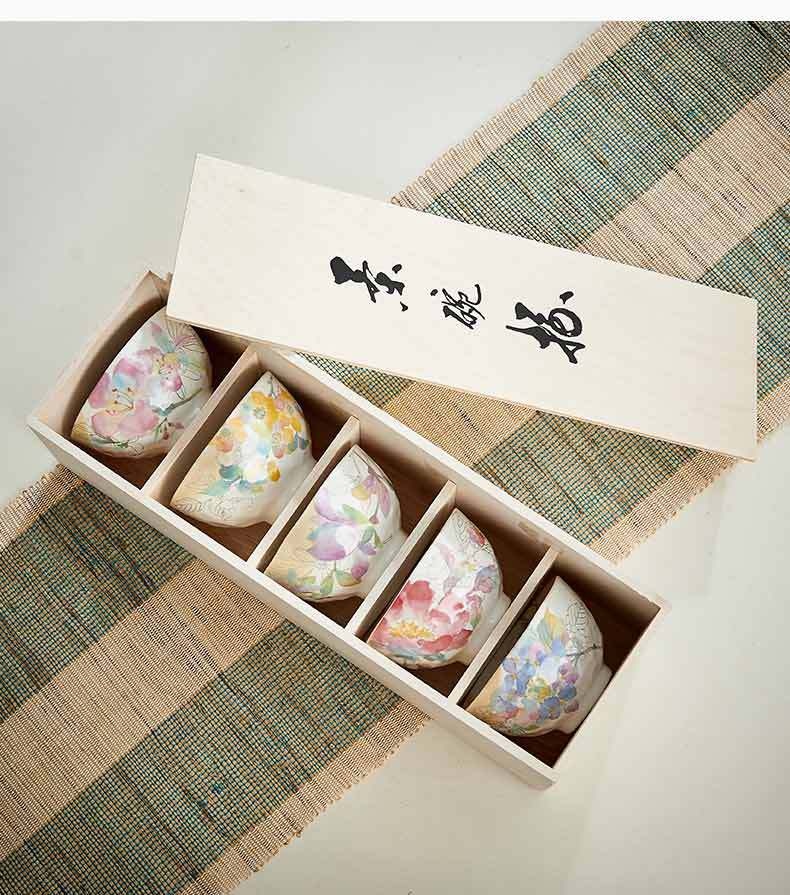 Cerámica Japonesa Mino y Vajilla de Cerámica Japonesa Azul Tazón de Arroz Juego de Cinco Tazones Caja de Madera Regalo de Boda Inauguración de Casa