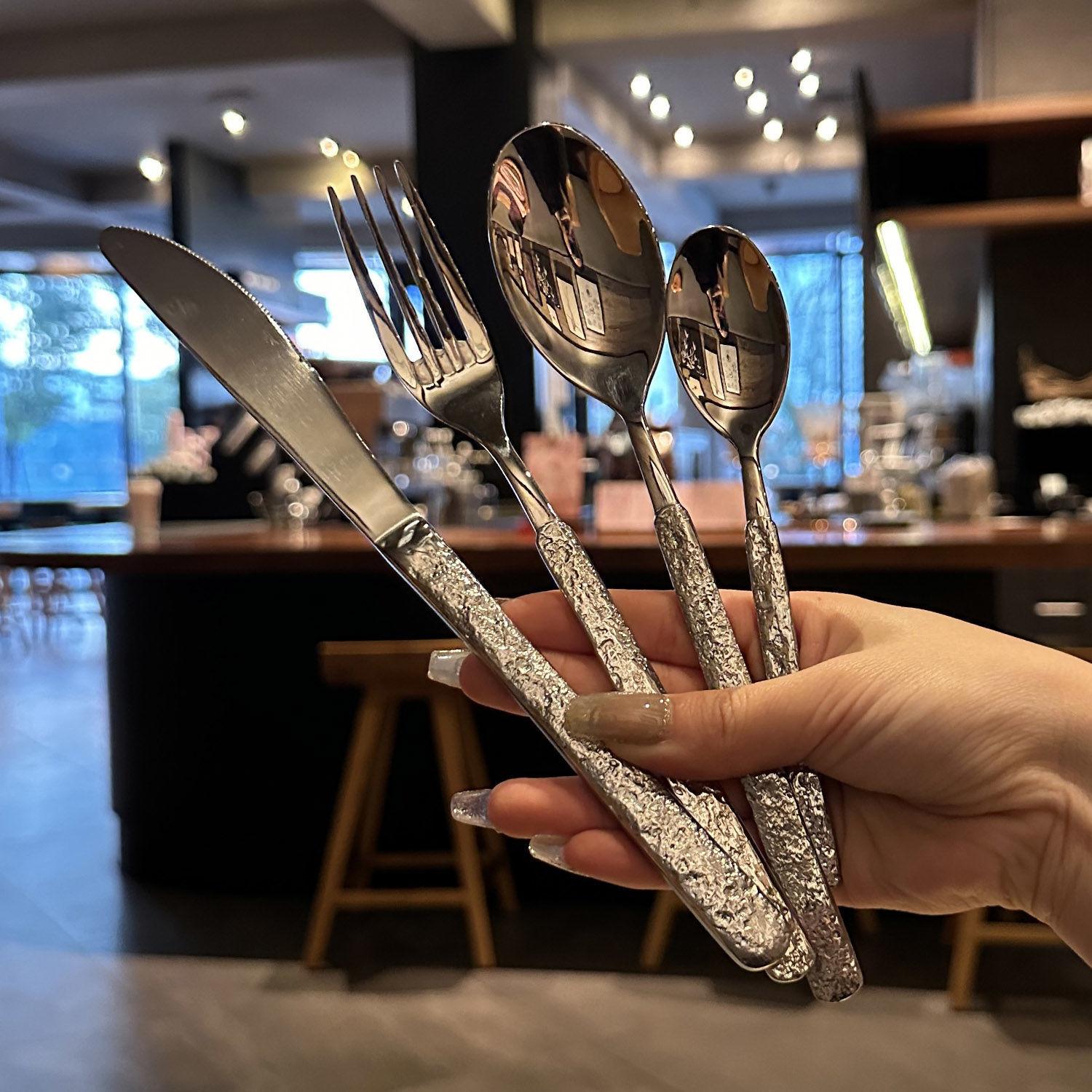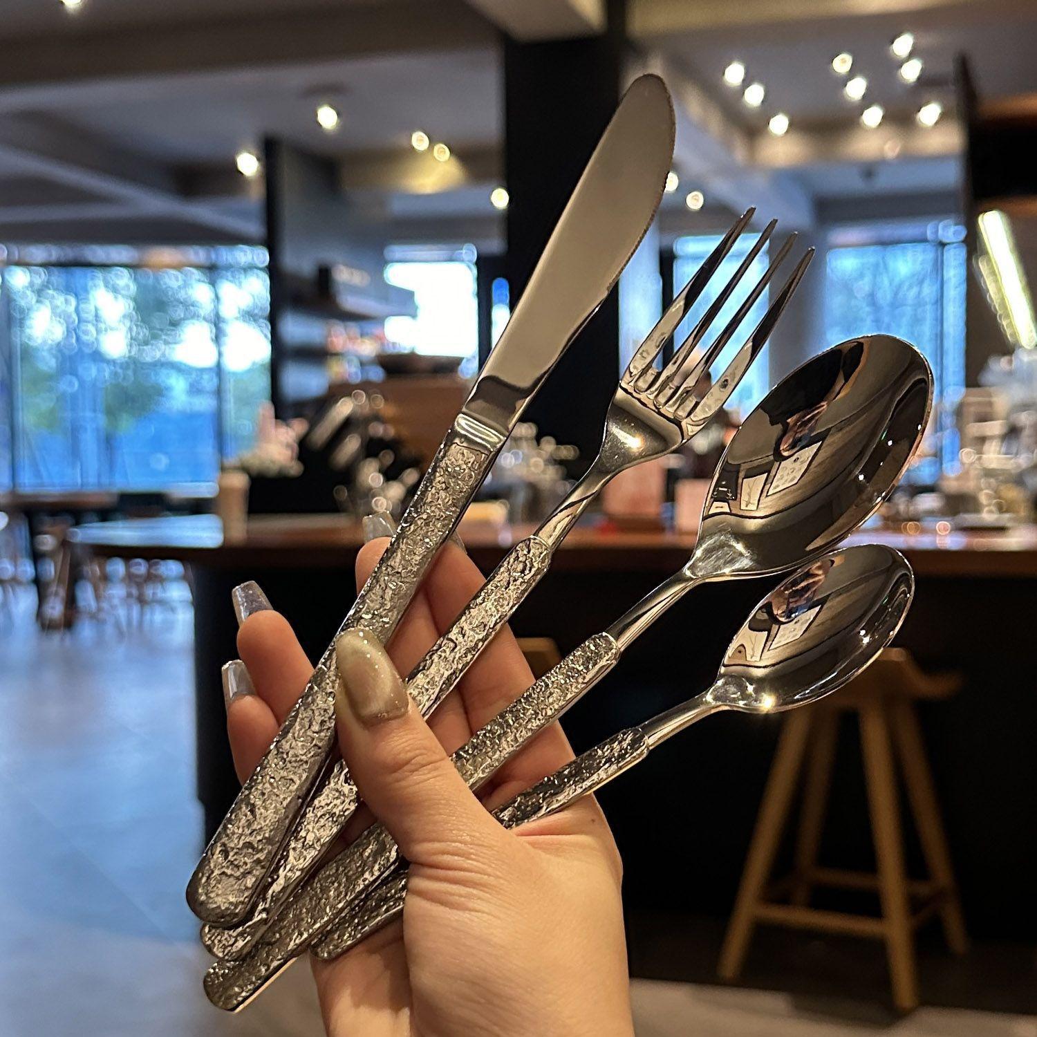 Cuchillo y Tenedor para Bistec de Acero Inoxidable 18-10 Patrón Piedra Alemana Cuchara para Comida Occidental Suministros para Hotel Cuchillo para Comida Occidental Juego de Tenedor para Comida Occidental