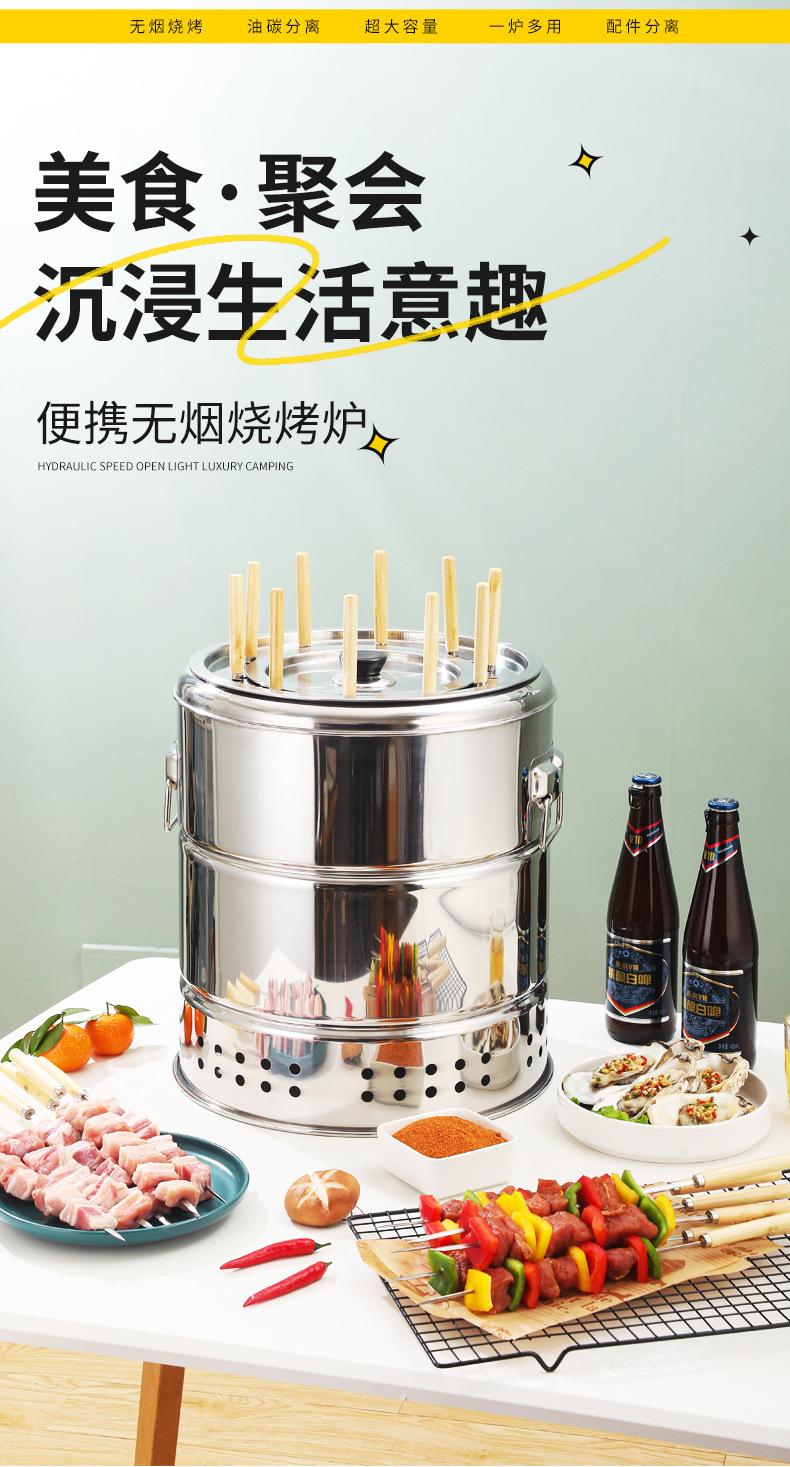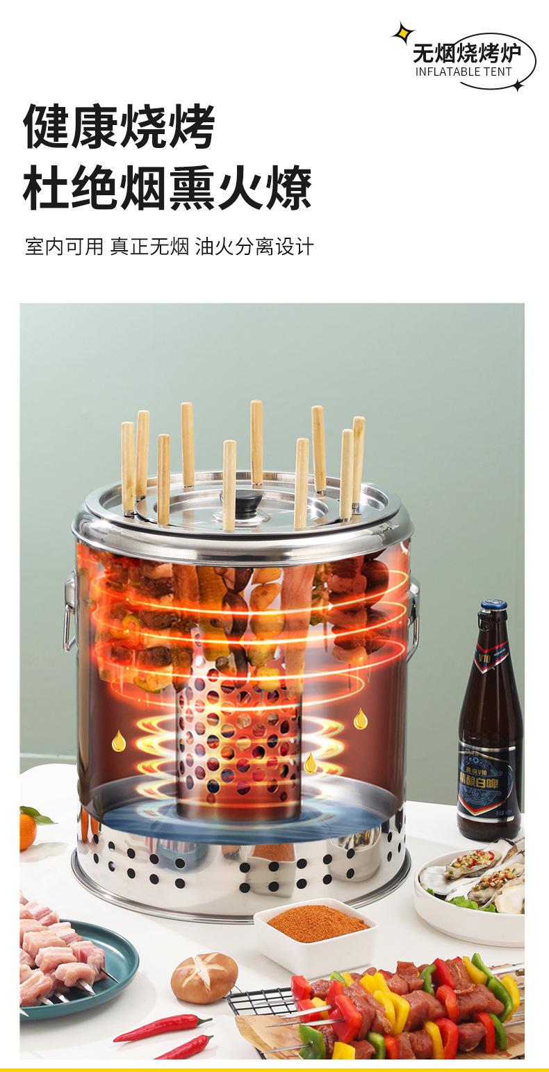 Parrilla de Barbacoa sin Humo para el Hogar Rejilla para Barbacoa al Aire Libre Ahumador de Acero Inoxidable Brochetas de Carne para Interior Estufa Conveniente Horno Colgante de Carbón