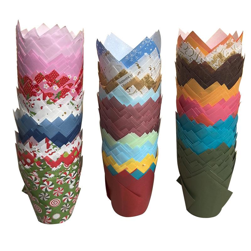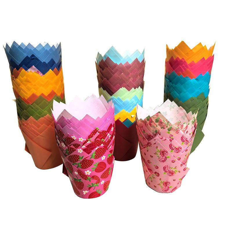 Cápsula para Pastel Tulipán Estampada en Caliente Transfronteriza Resistente a Altas Temperaturas Llama Cápsula para Pastel Fondo 5cm A Prueba de Aceite Cápsula para Pastel Muffin