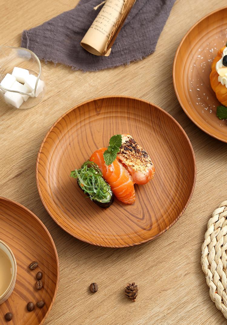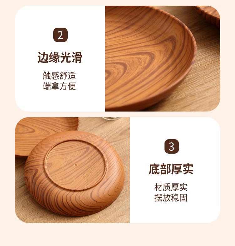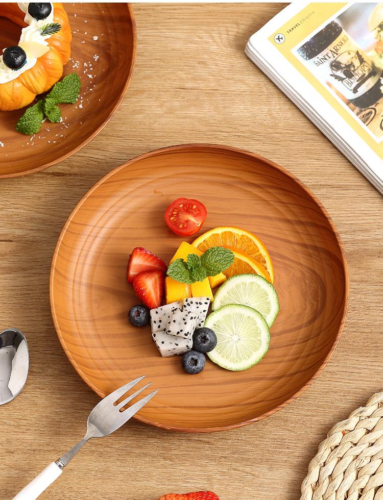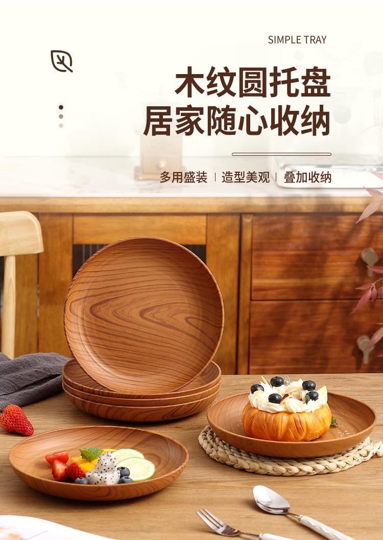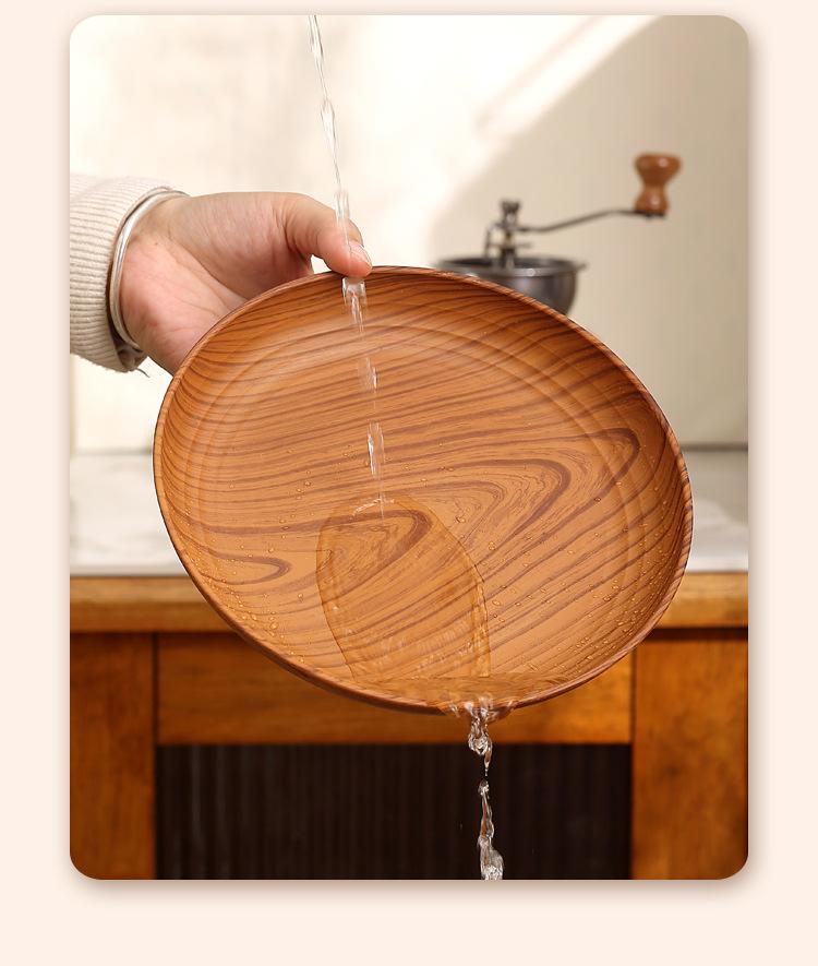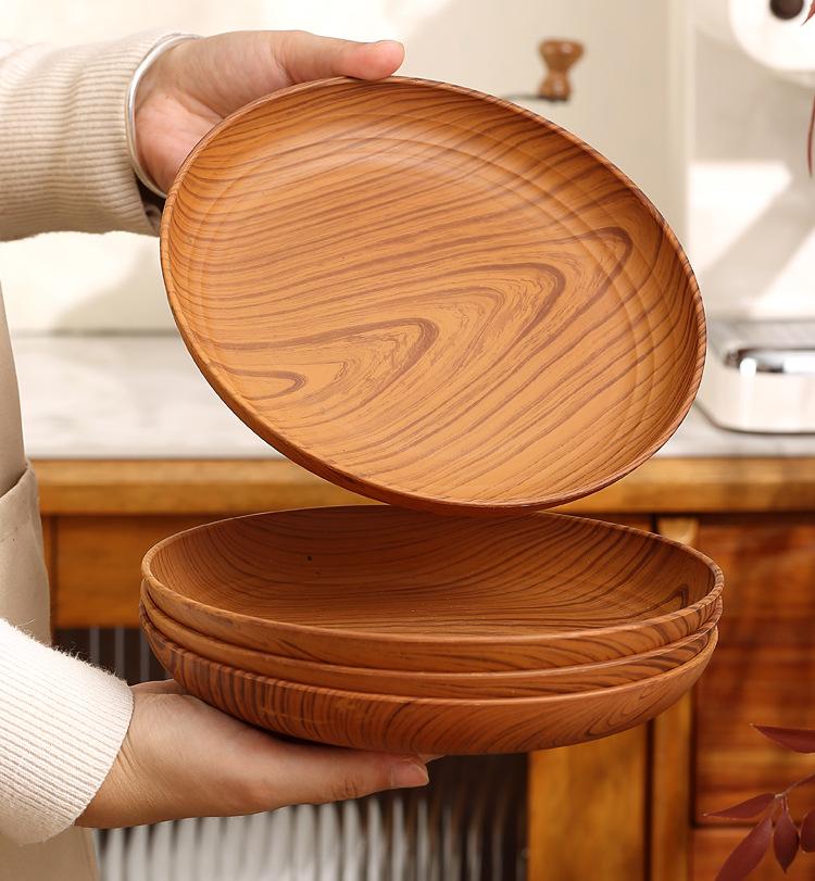 Plato de Plástico con Disco de Grano de Madera Retro Plato Comercial Redondo para Hogar Café Pastel Postre Fruta