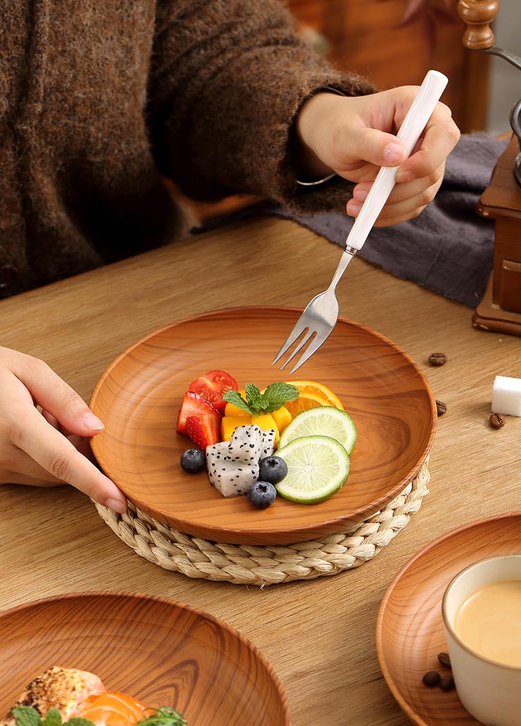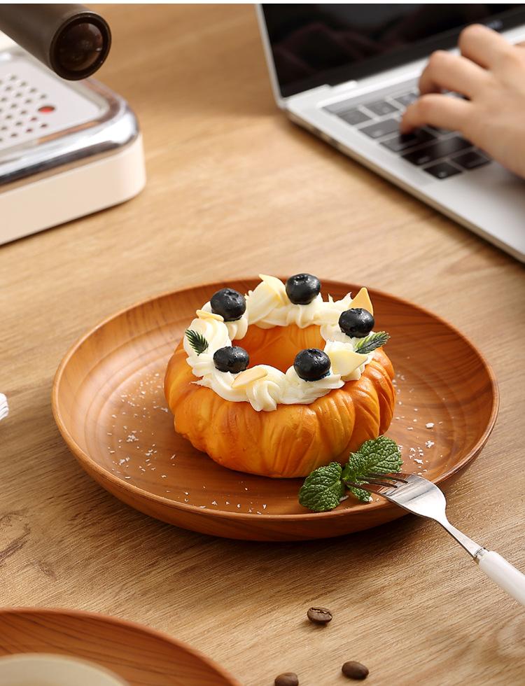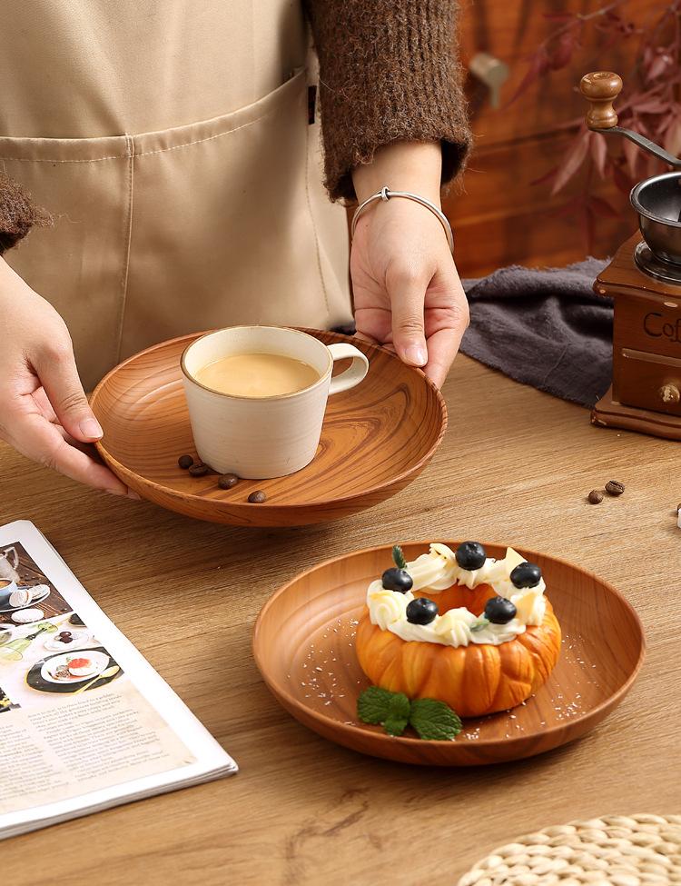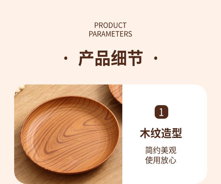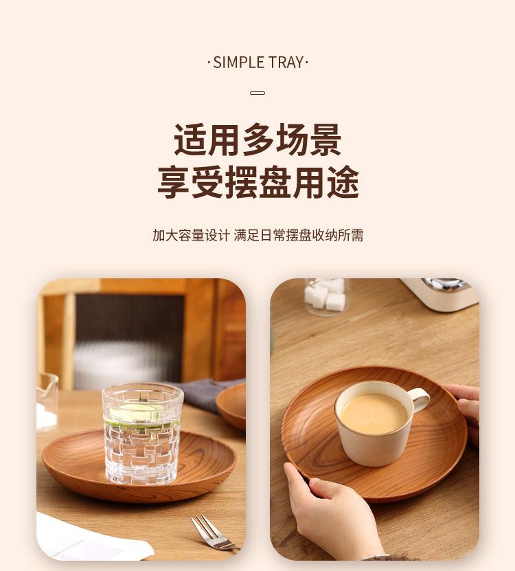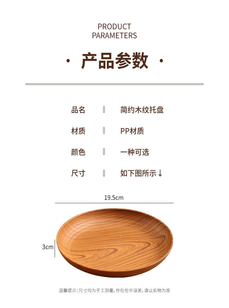 Plato de Plástico con Disco de Grano de Madera Retro Plato Comercial Redondo para Hogar Café Pastel Postre Fruta