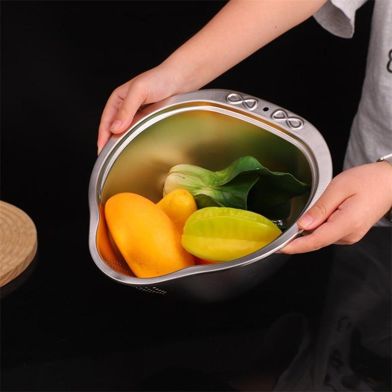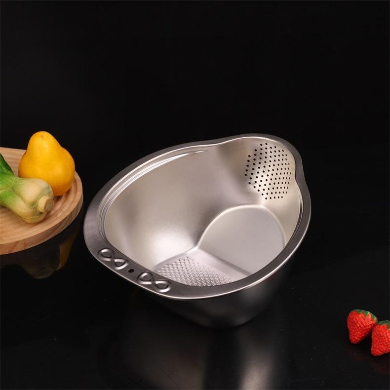 Nuevo Colador Inclinado de Acero Inoxidable para Lavar Verduras, Cesta de Frutas, Colador para Lavar Arroz, Tazón Multipropósito de Malla Fina para Cocina, Herramienta para Lavar Arroz