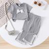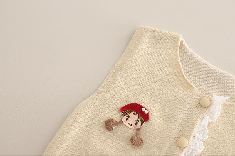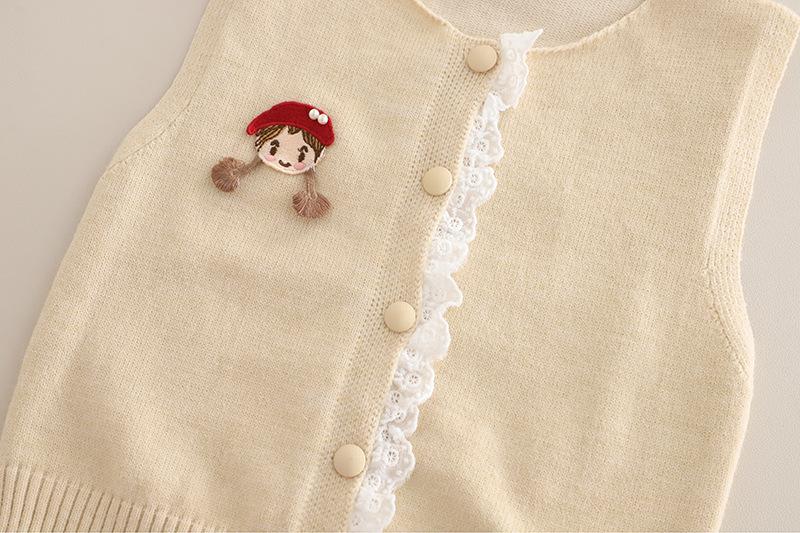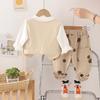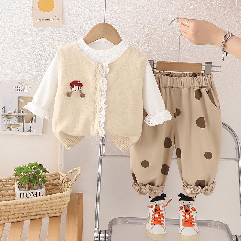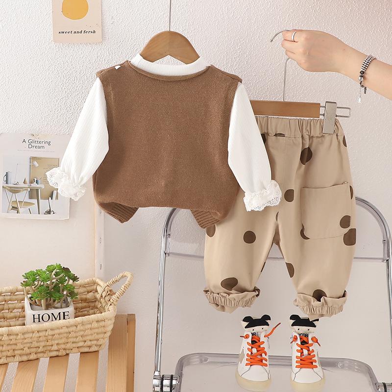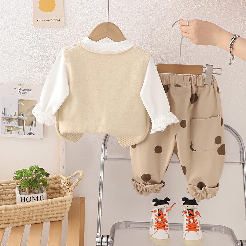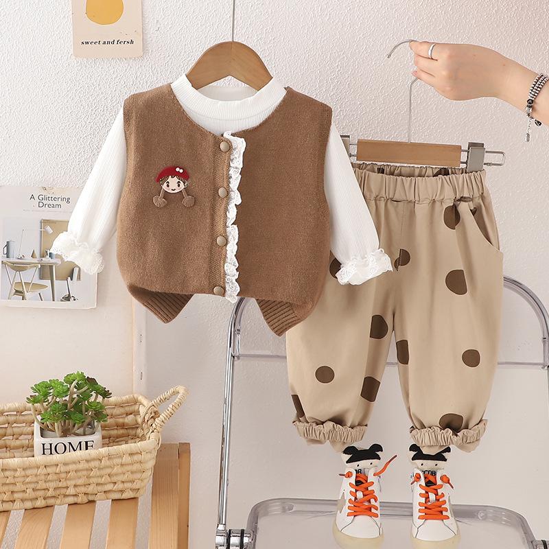 2025 Ropa Nueva de Primavera y Otoño para Niños Chaleco de Encaje a la Moda para Niñas Camisa de Cuello Redondo Conjunto de Tres Piezas Conjunto de Top para Niñas