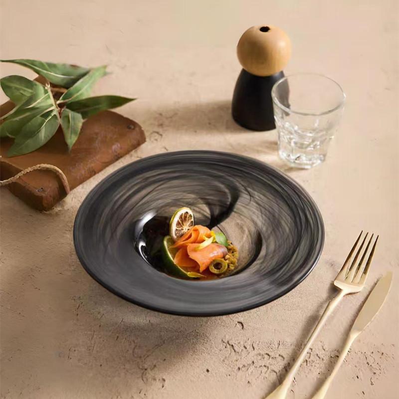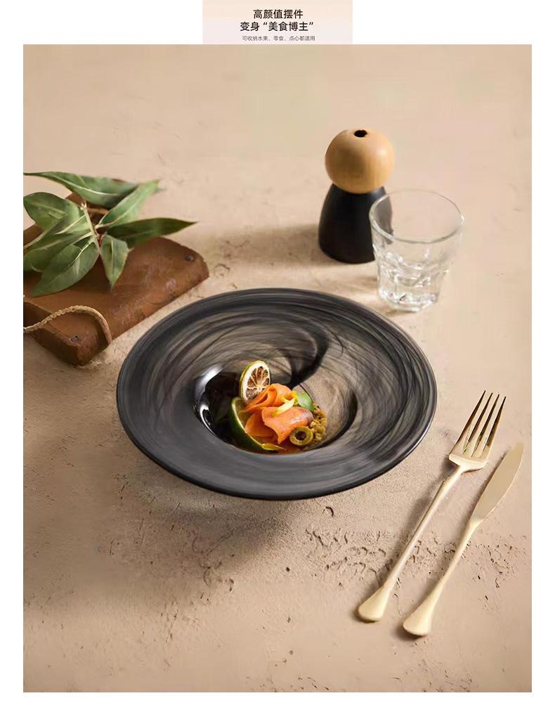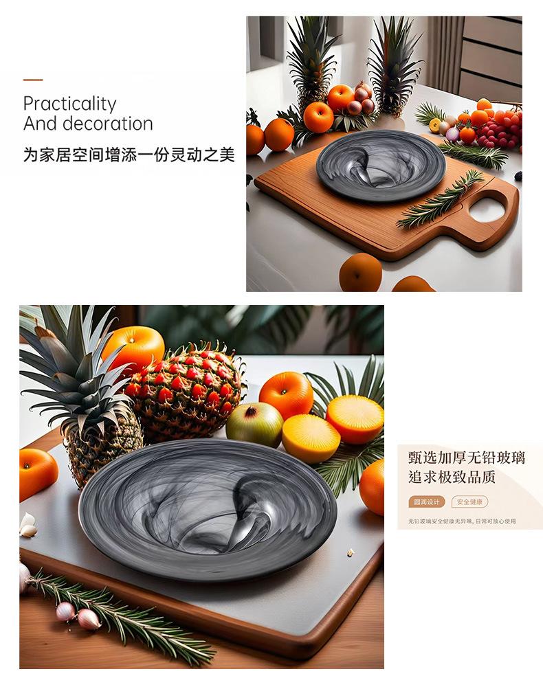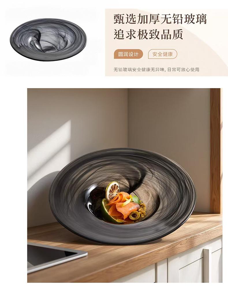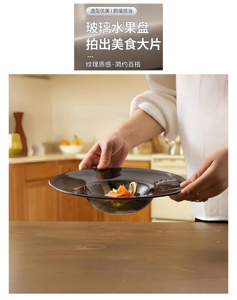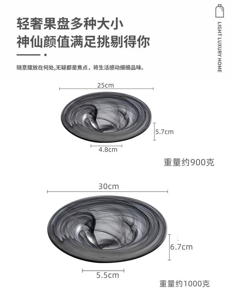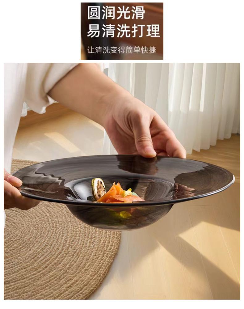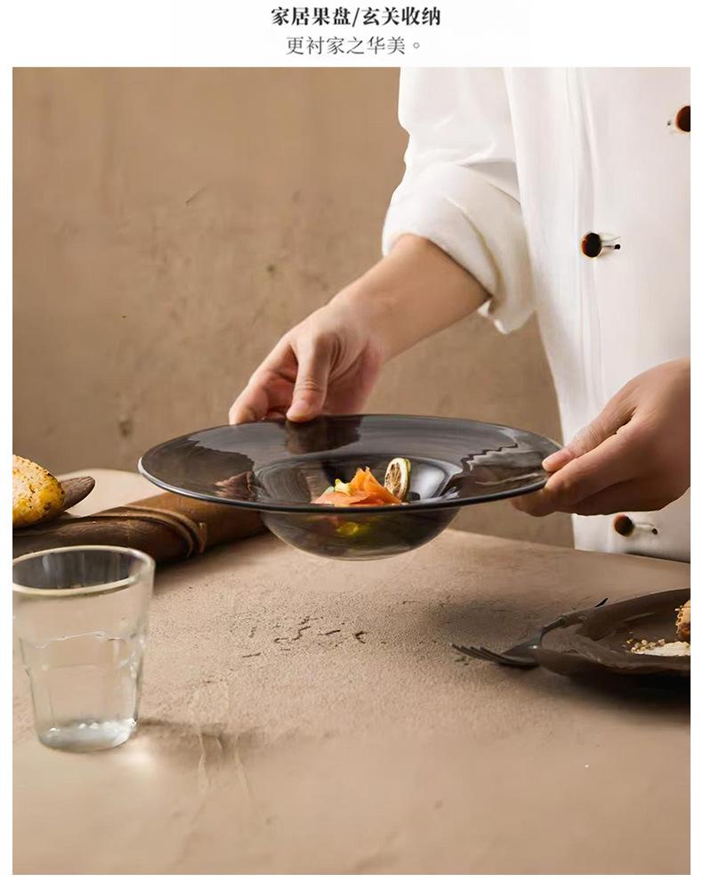 Ink glass fruit plate straw hat style small 25cm, Ink glass fruit plate straw hat style medium 30cm, Ink glass...