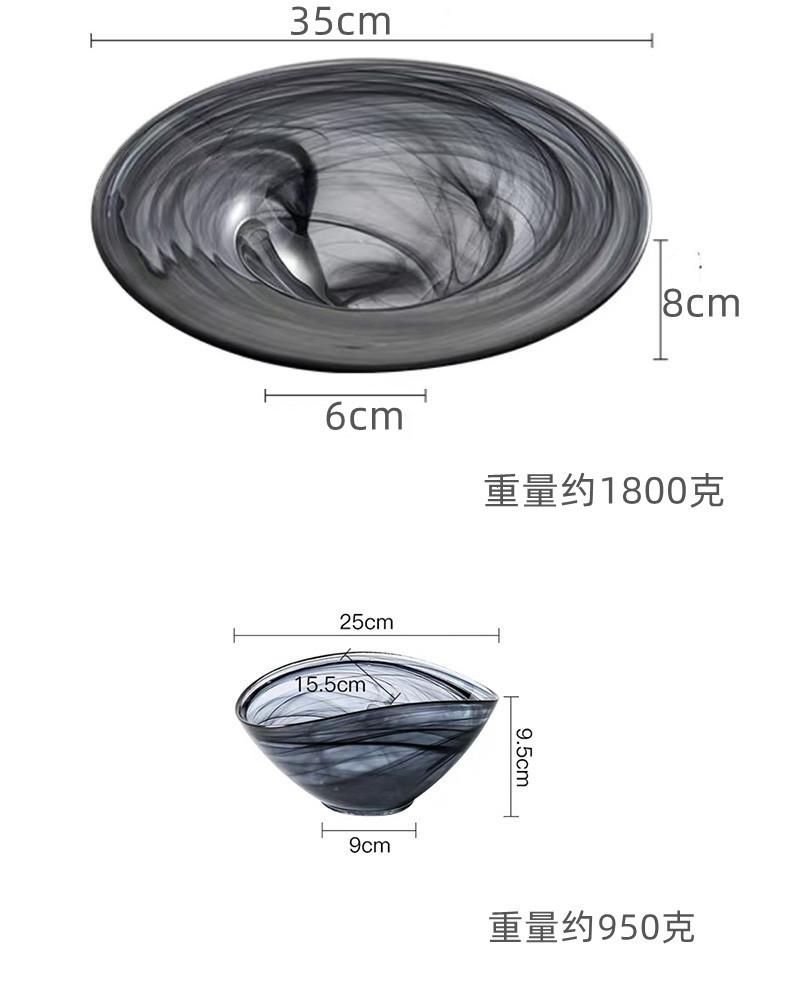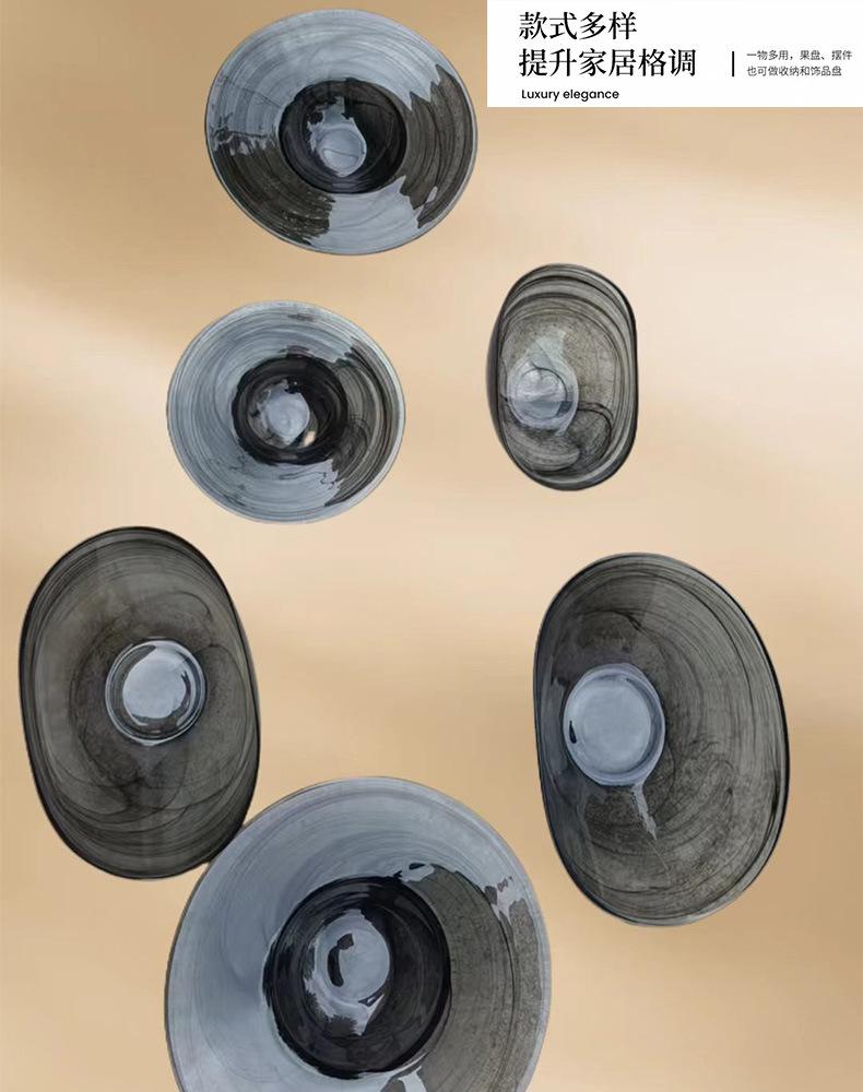 Compra Creativo Redondo Grande Ensaladera Decoración Modelo Sala Suave Decoración Modelo Sala Escritorio Tinta Plato de Fruta Tazón de Vidrio al por mayor en Joom.pro