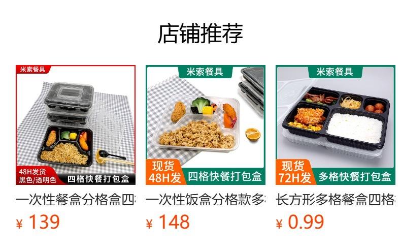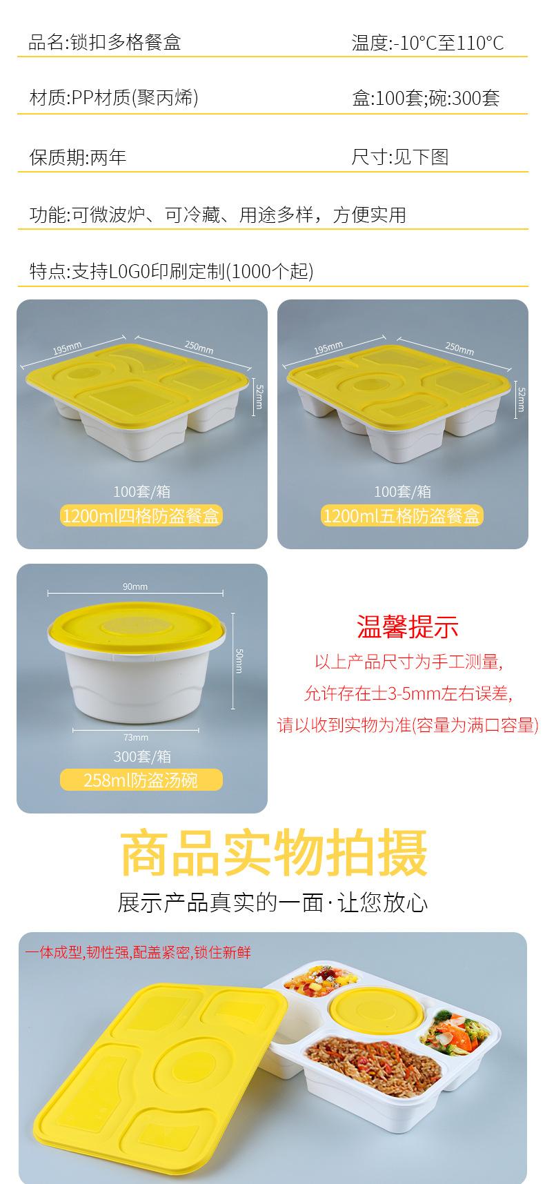 Four-compartment lunch box (100 sets/box), Five-compartment lunch box (100 sets/box), Locking soup bowl (300 sets/box)
