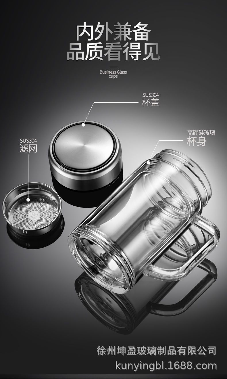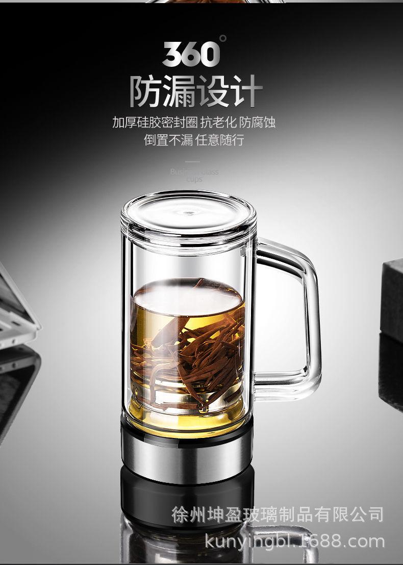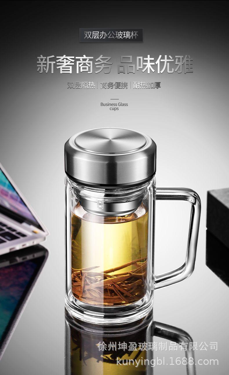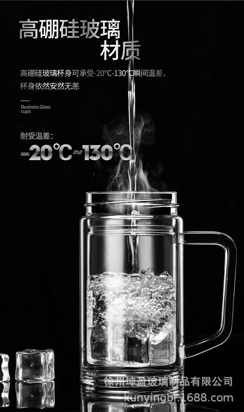 Taza de Vidrio de Borosilicato Alto de Doble Capa con Asa, Engrosada y Transparente, Taza para Agua Potable y Té para Oficina con Tapa, Taza para Agua de Gran Capacidad