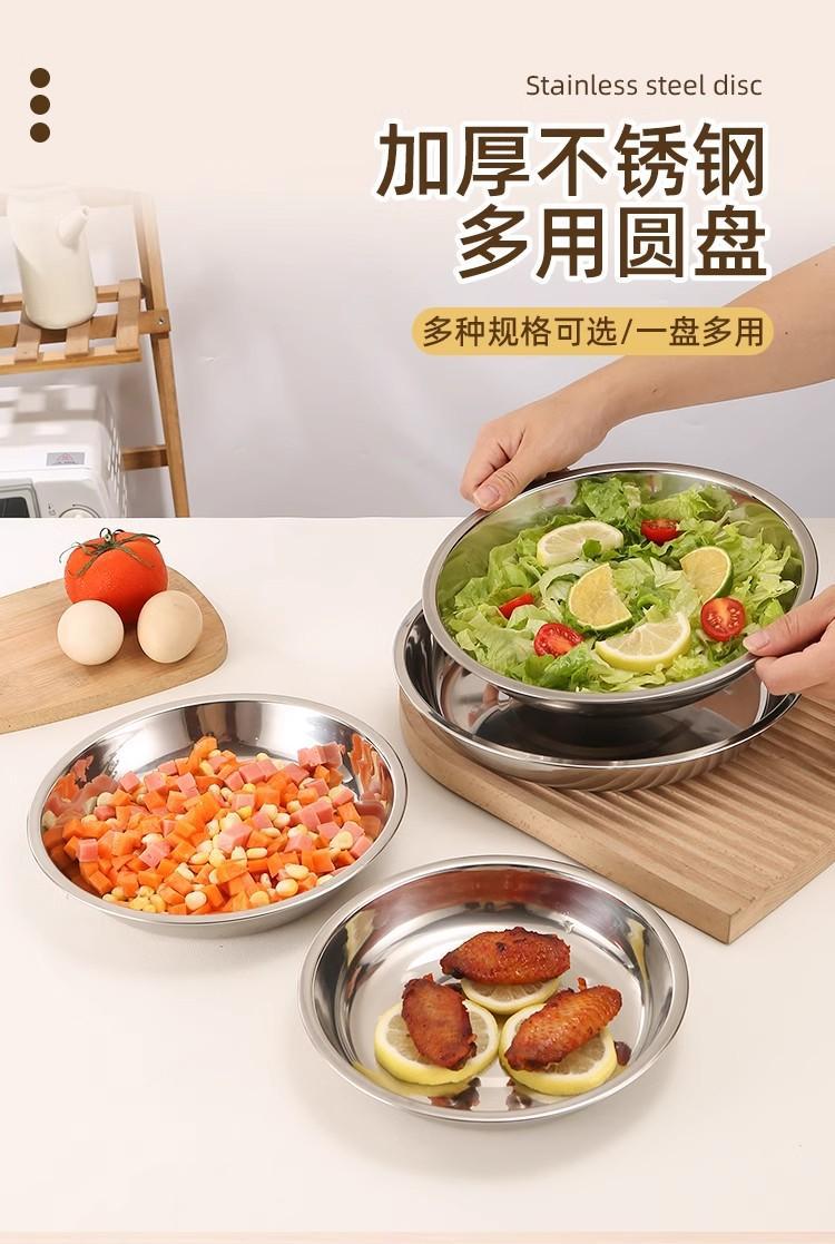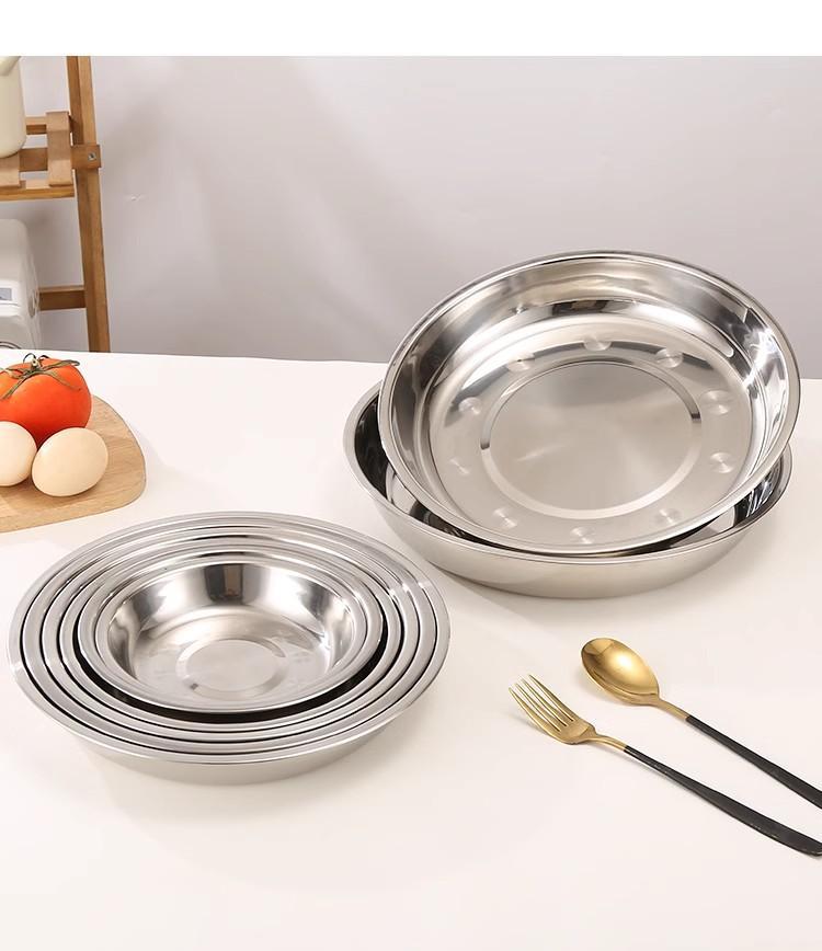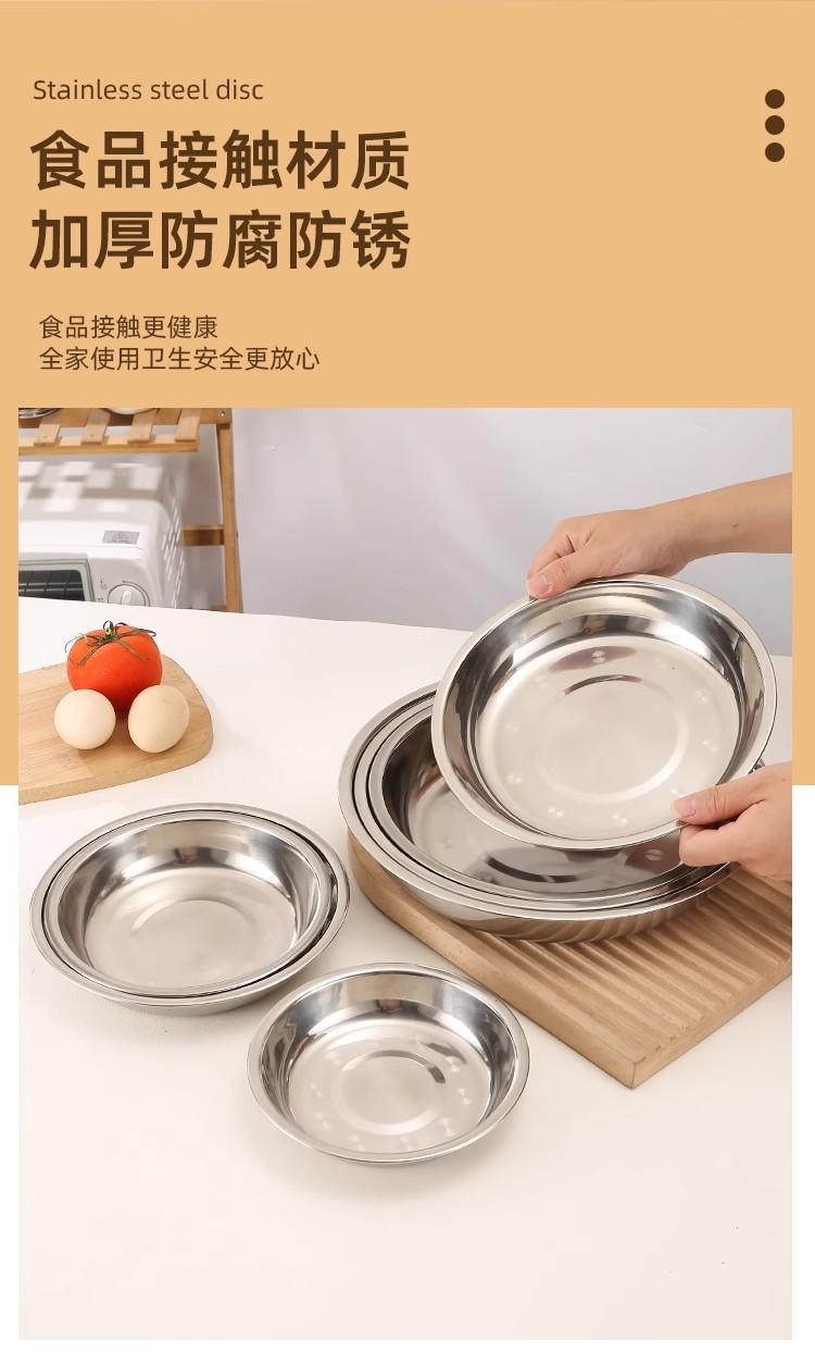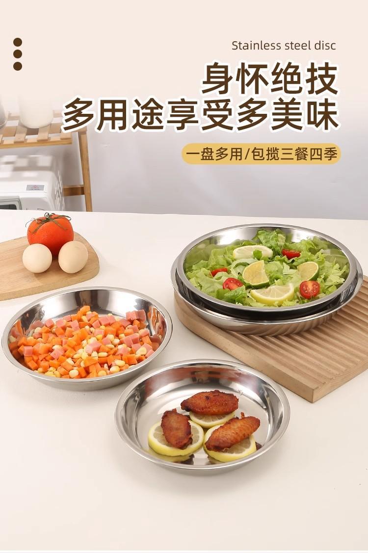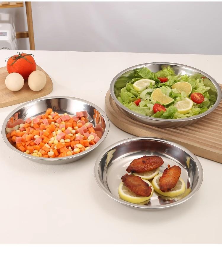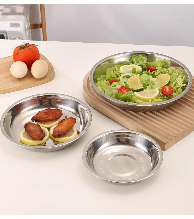 Plato de Disco de Acero Inoxidable Engrosado Plato para Dumplings Plato para Escupir Huesos Plato para Frutas Plato Hondo Plato para Vaporizar Plato de Acero Inoxidable