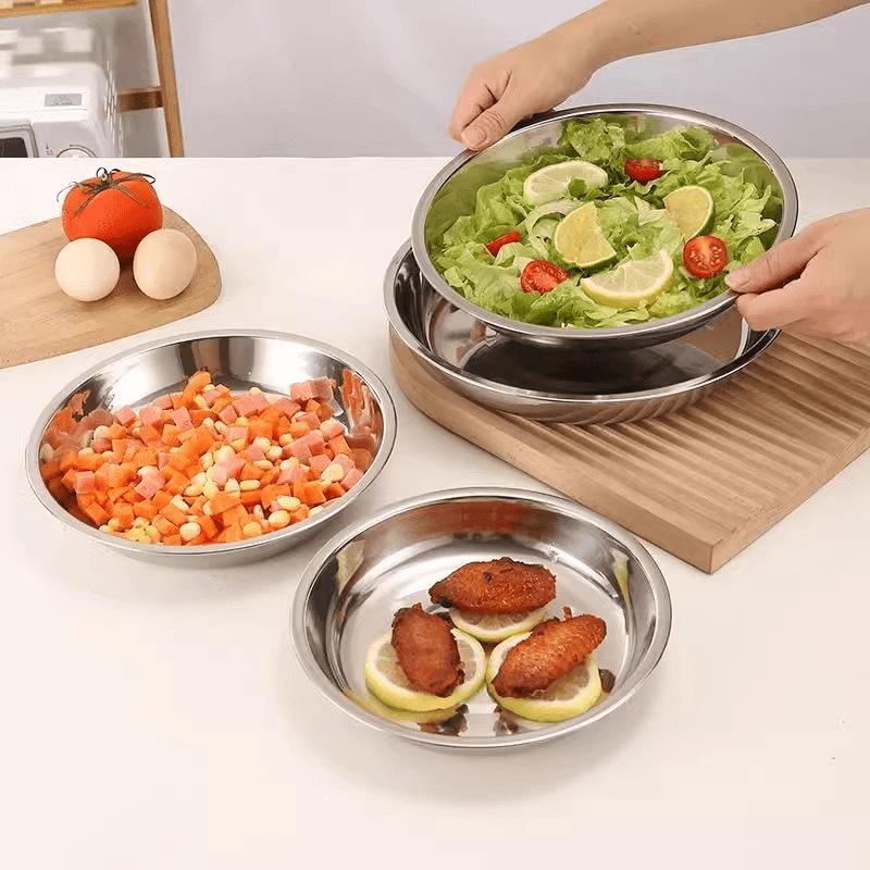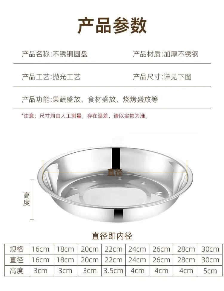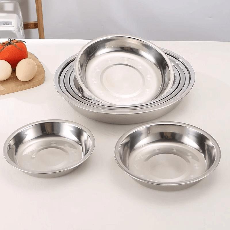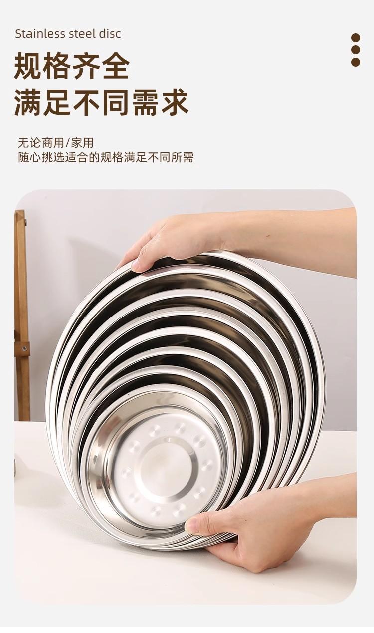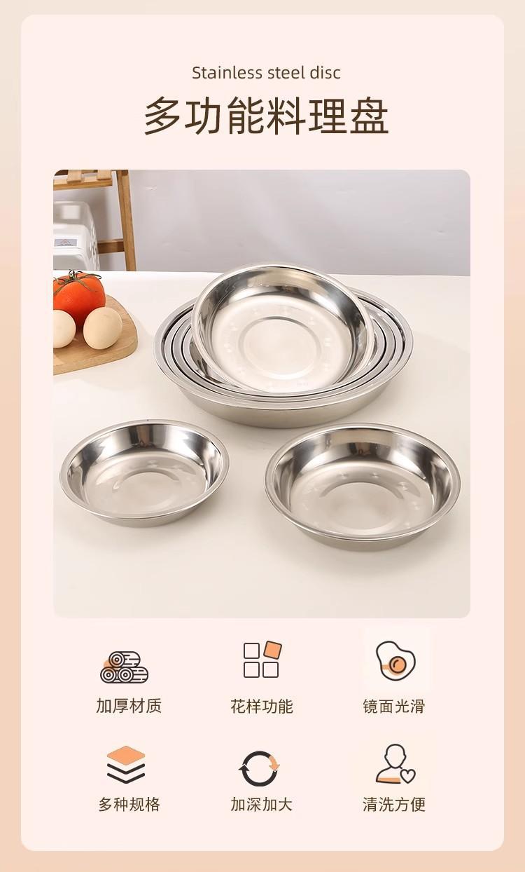 Plato de Disco de Acero Inoxidable Engrosado Plato para Dumplings Plato para Escupir Huesos Plato para Frutas Plato Hondo Plato para Vaporizar Plato de Acero Inoxidable