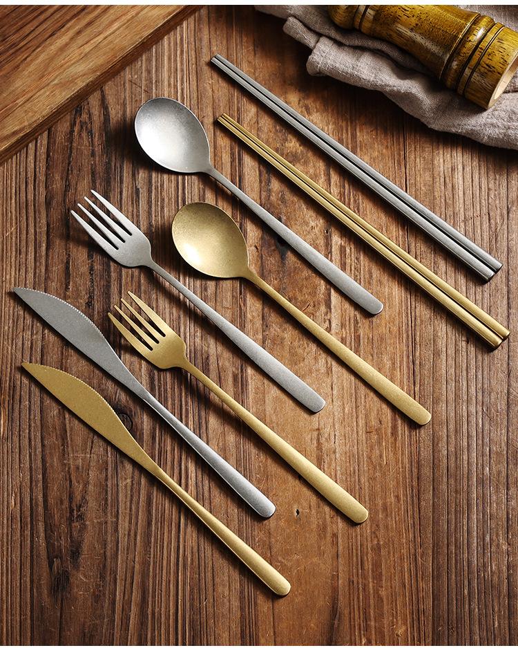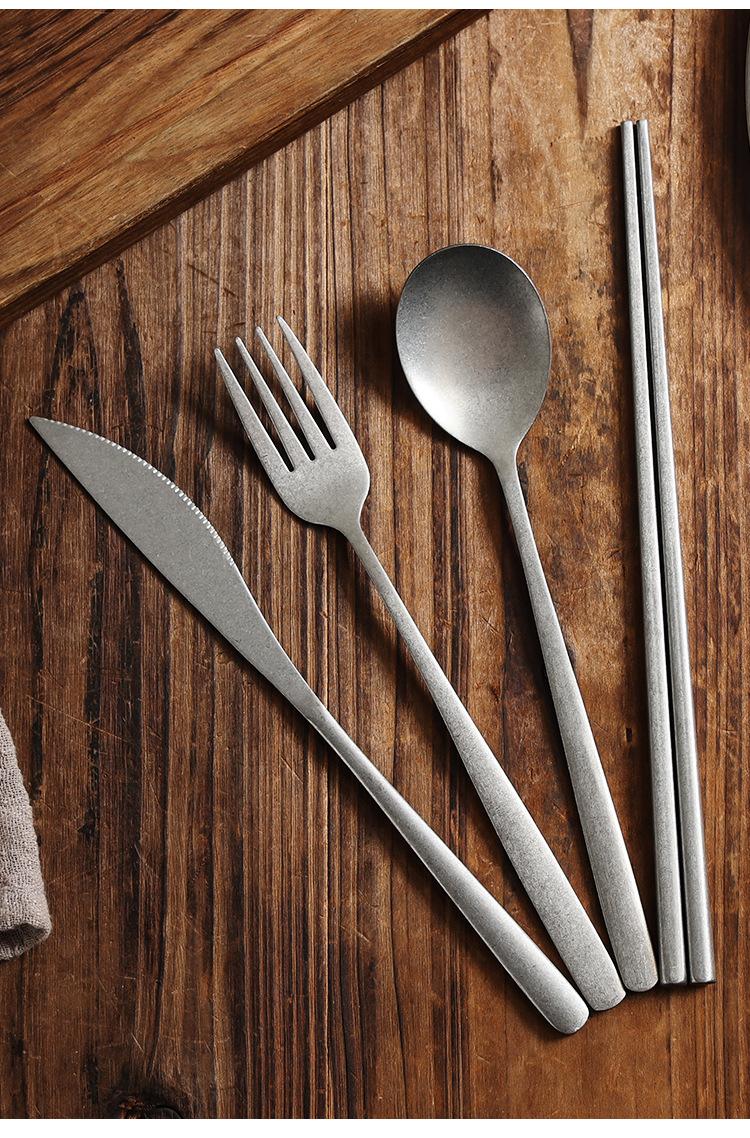Cubiertos Retro de Acero Inoxidable 304 Palillos Cuchara Tenedor Cuchillo Tenedor Cuchara Juego de Cubiertos Occidentales
