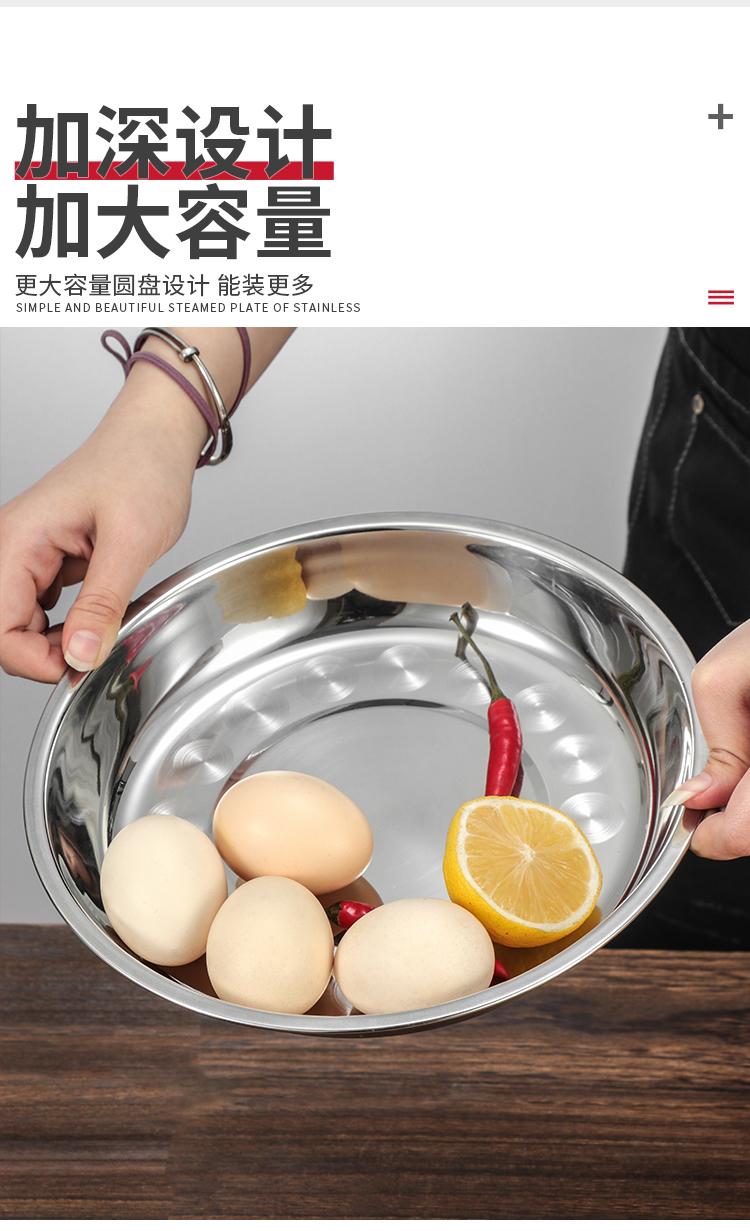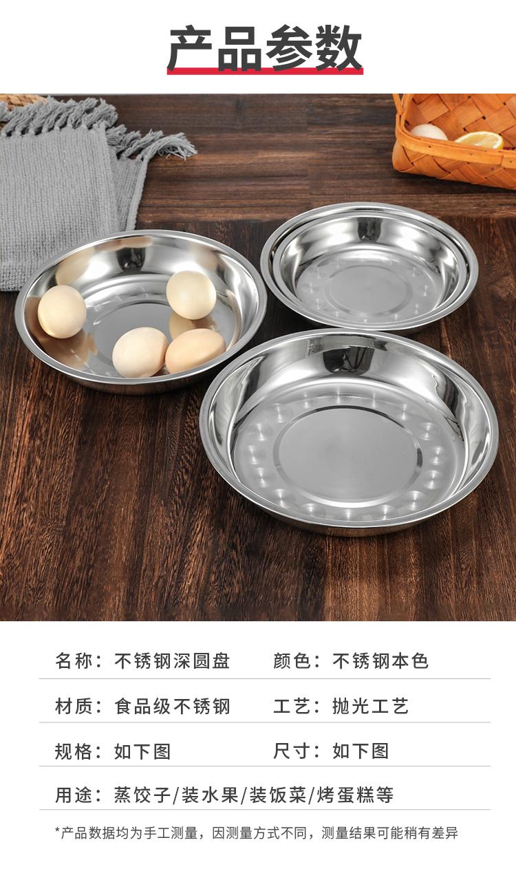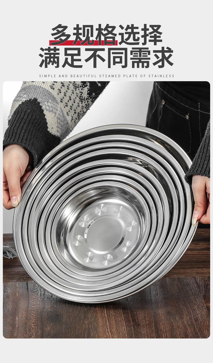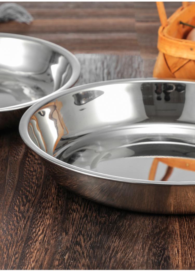 Plato Redondo de Acero Inoxidable 304 Plato Hondo para Hogar Plato Plano Plato Hondo Plato Grueso Plato para Barbacoa Grado Alimenticio Plato para Cena