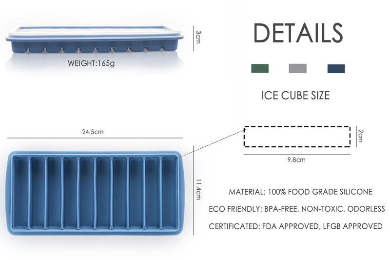 [Nombre del producto]: Bandeja de hielo de silicona de diez dedos con tapa de silicona de alta transparencia