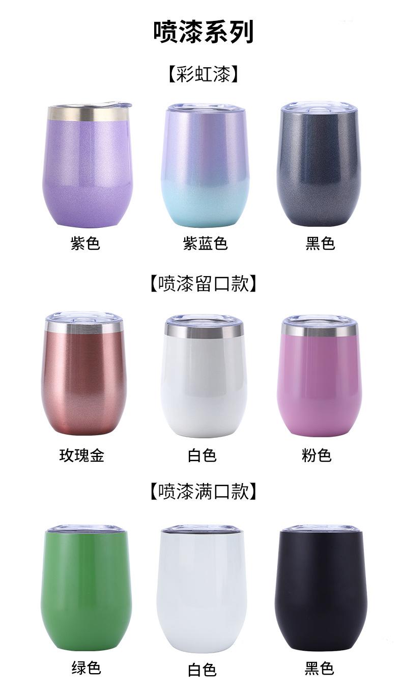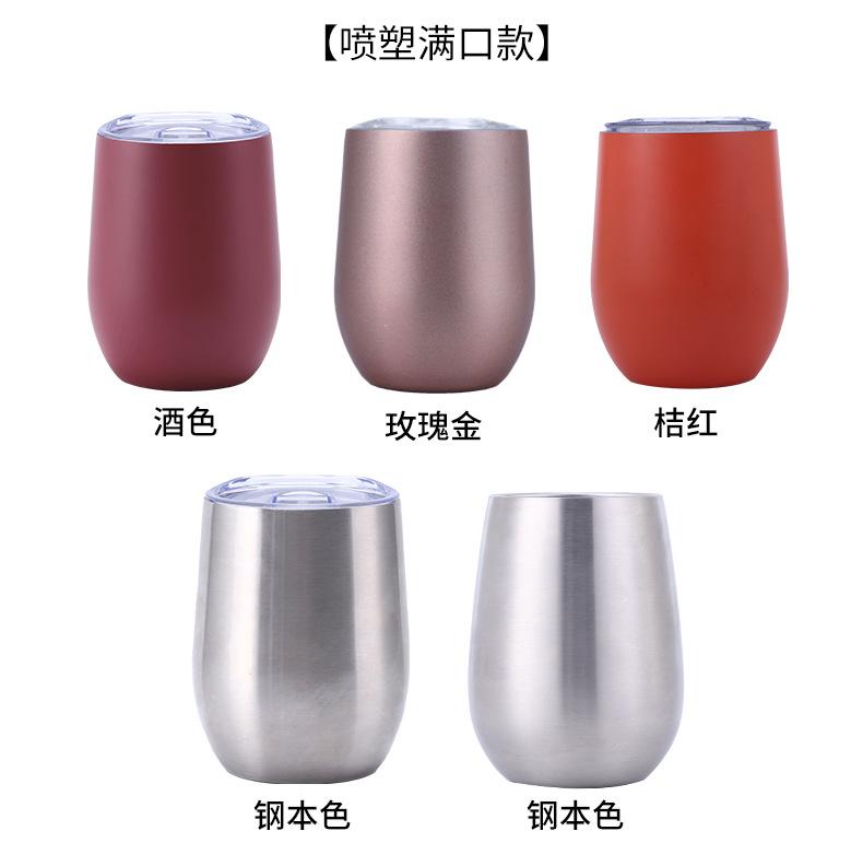 Suministro Directo Transfronterizo Acero Inoxidable 304 Taza de Cáscara de Huevo 12oz Copa de Vino Tinto Aislamiento Térmico Taza de Huevo con Vientre Grande en Forma de U