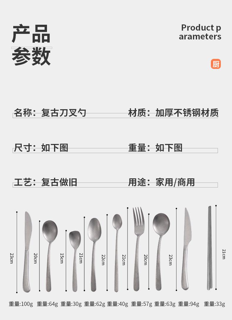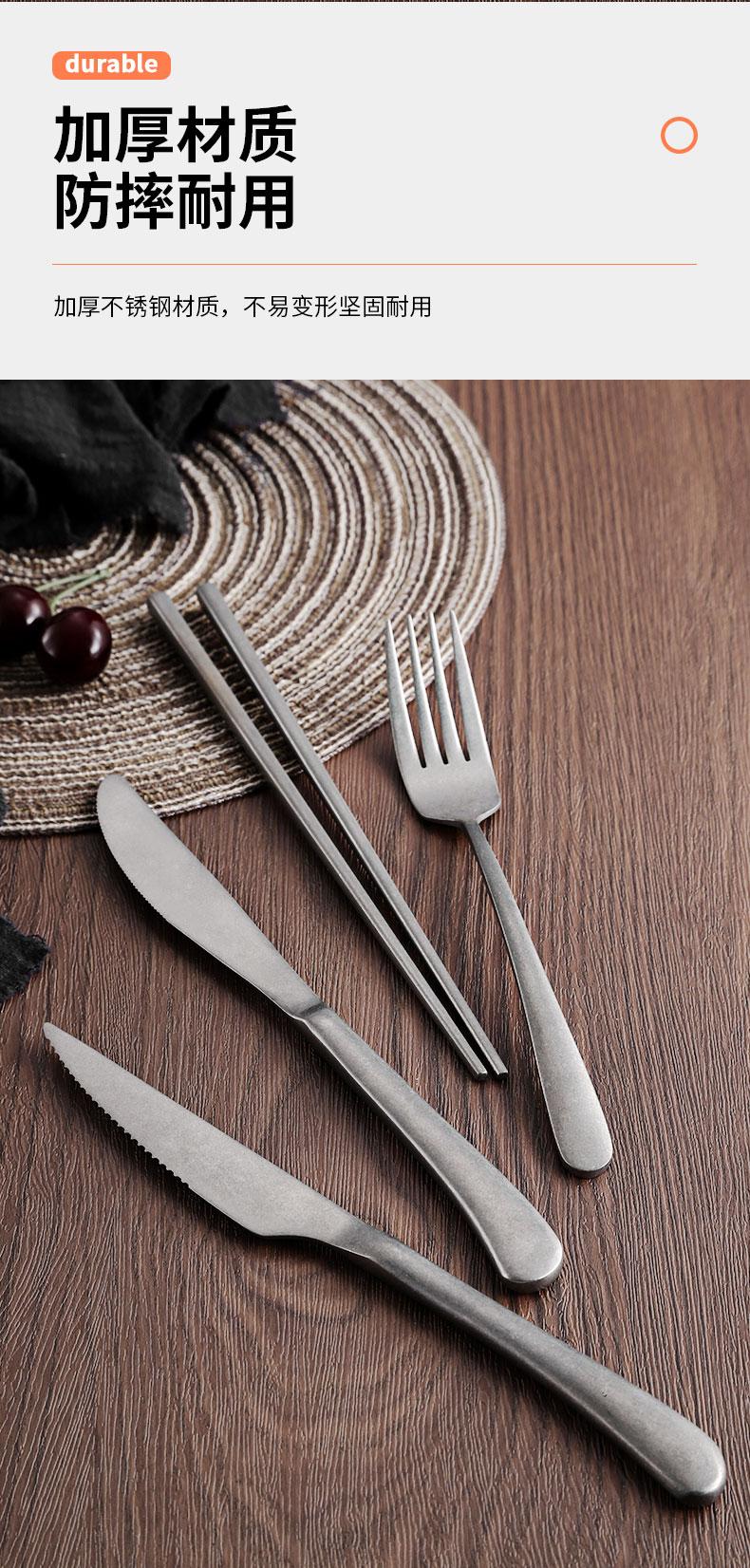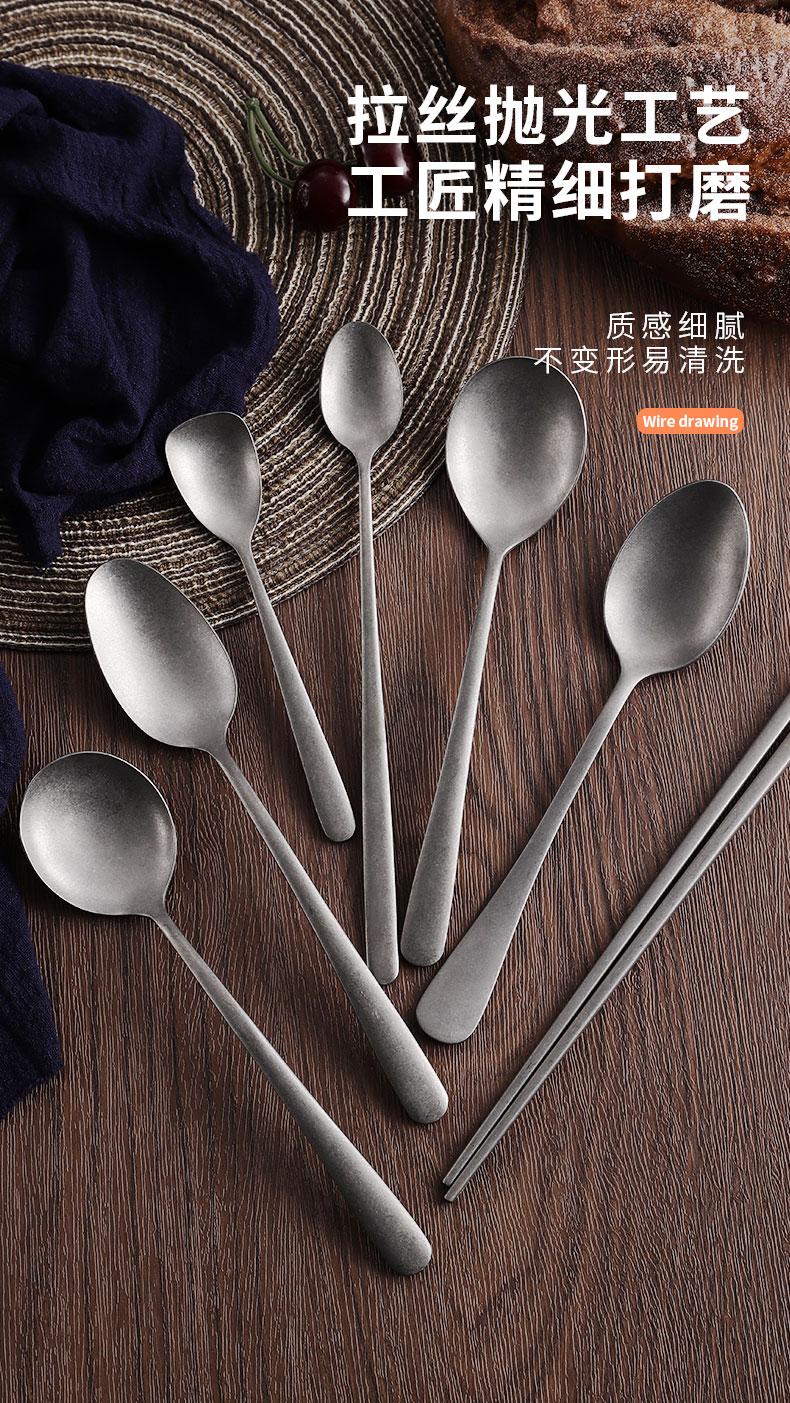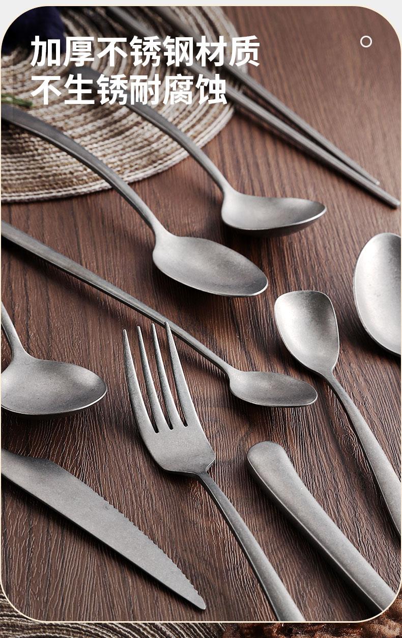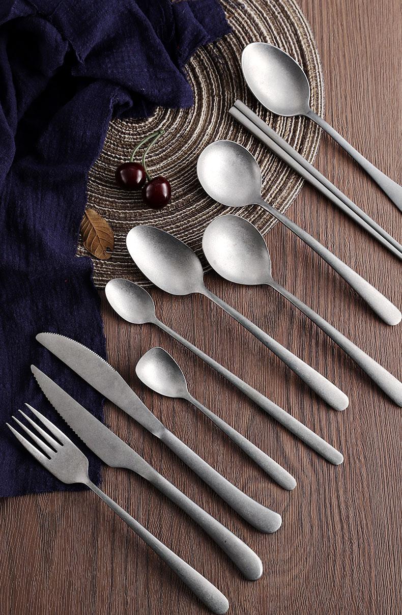 Cubiertos Retro Acero Inoxidable 304 Occidental Cuchillo para Bistec Tenedor Cuchara Envejecido ins Cuchara para Postre Cuchara para Revolver Palillos Tenedor para Fruta