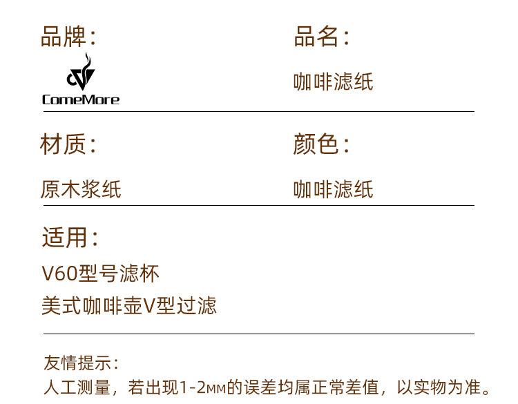 Papel de Filtro de Café al Por Mayor de Fábrica Cono Papel de Filtro de Café Preparado a Mano Papel de Filtro Desechable para Cafetera V60 1-4 Porciones