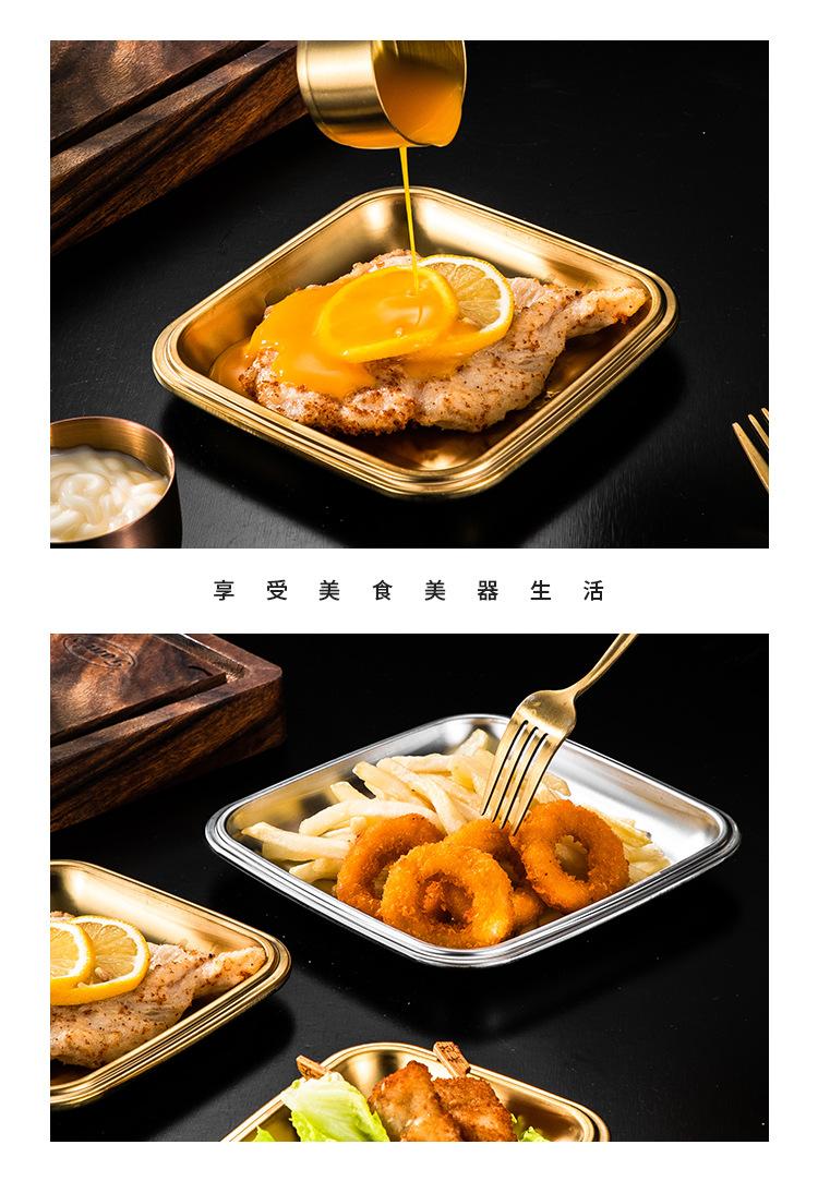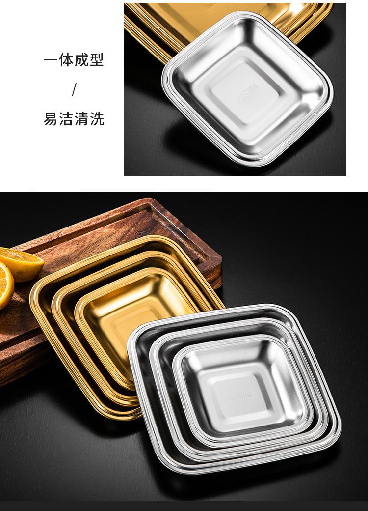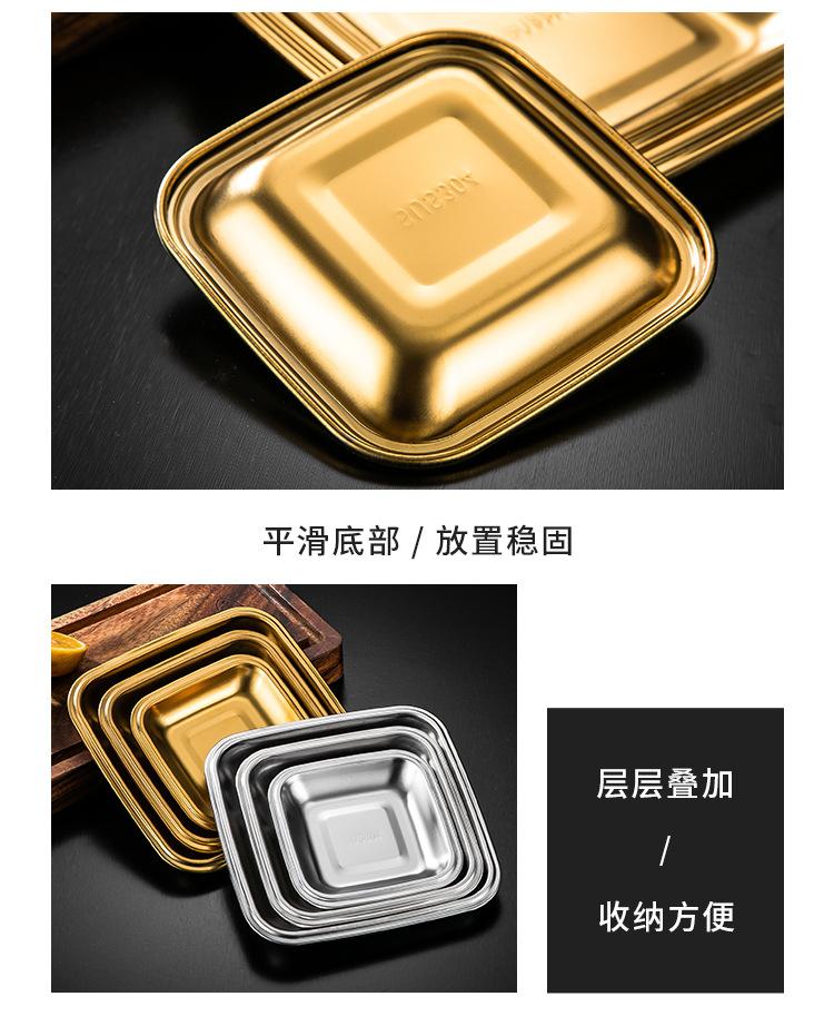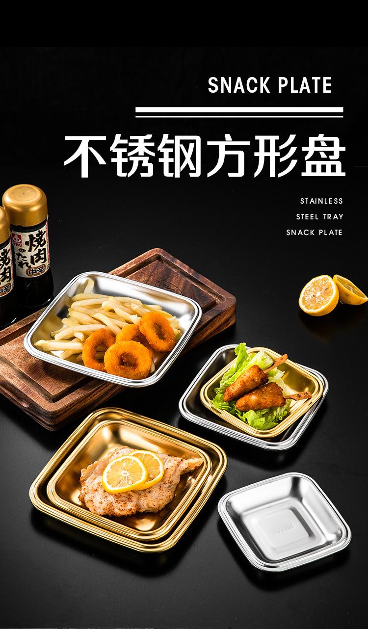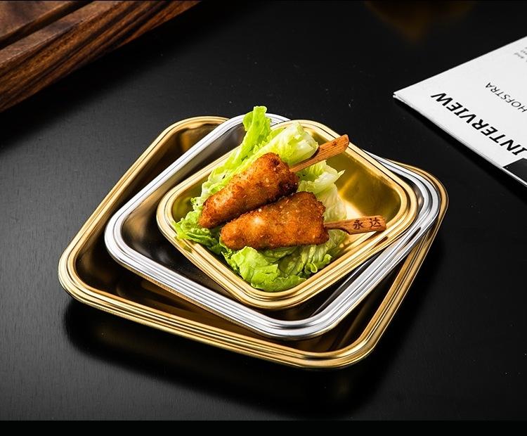 Plato Cuadrado de Acero Inoxidable 304 Plato Comercial Dorado para Barbacoa Plato para Rollos de Arroz Bandeja Llana Plato para Snacks