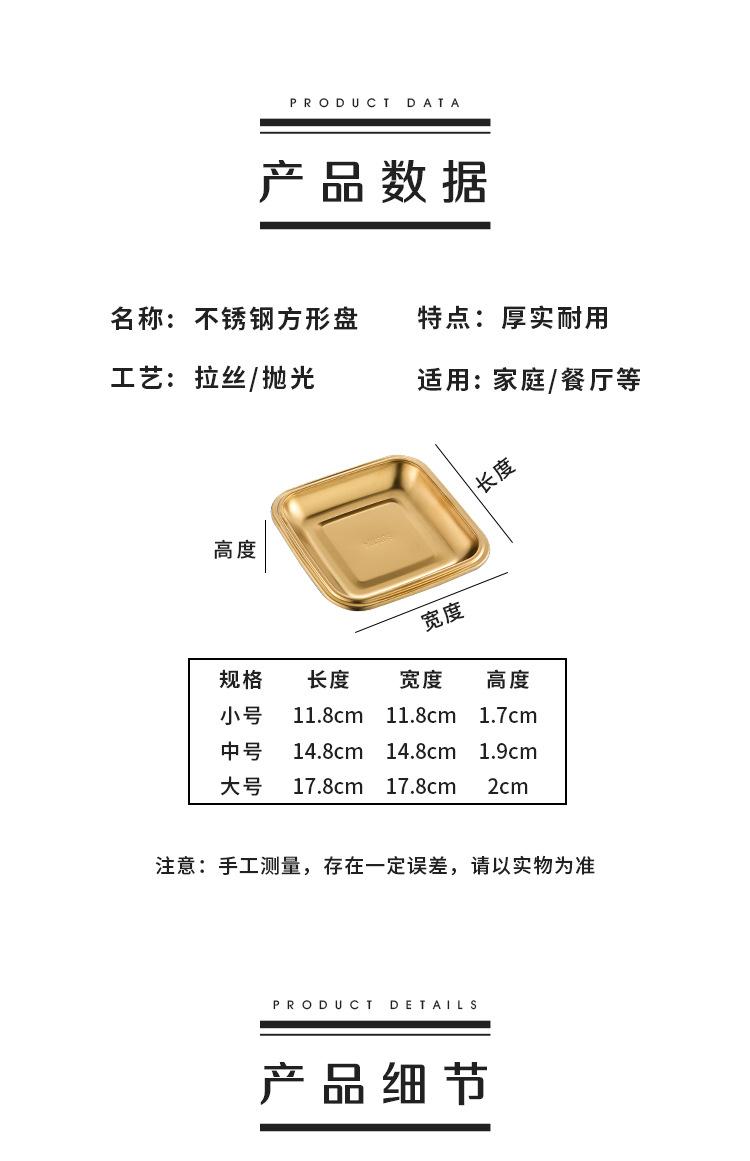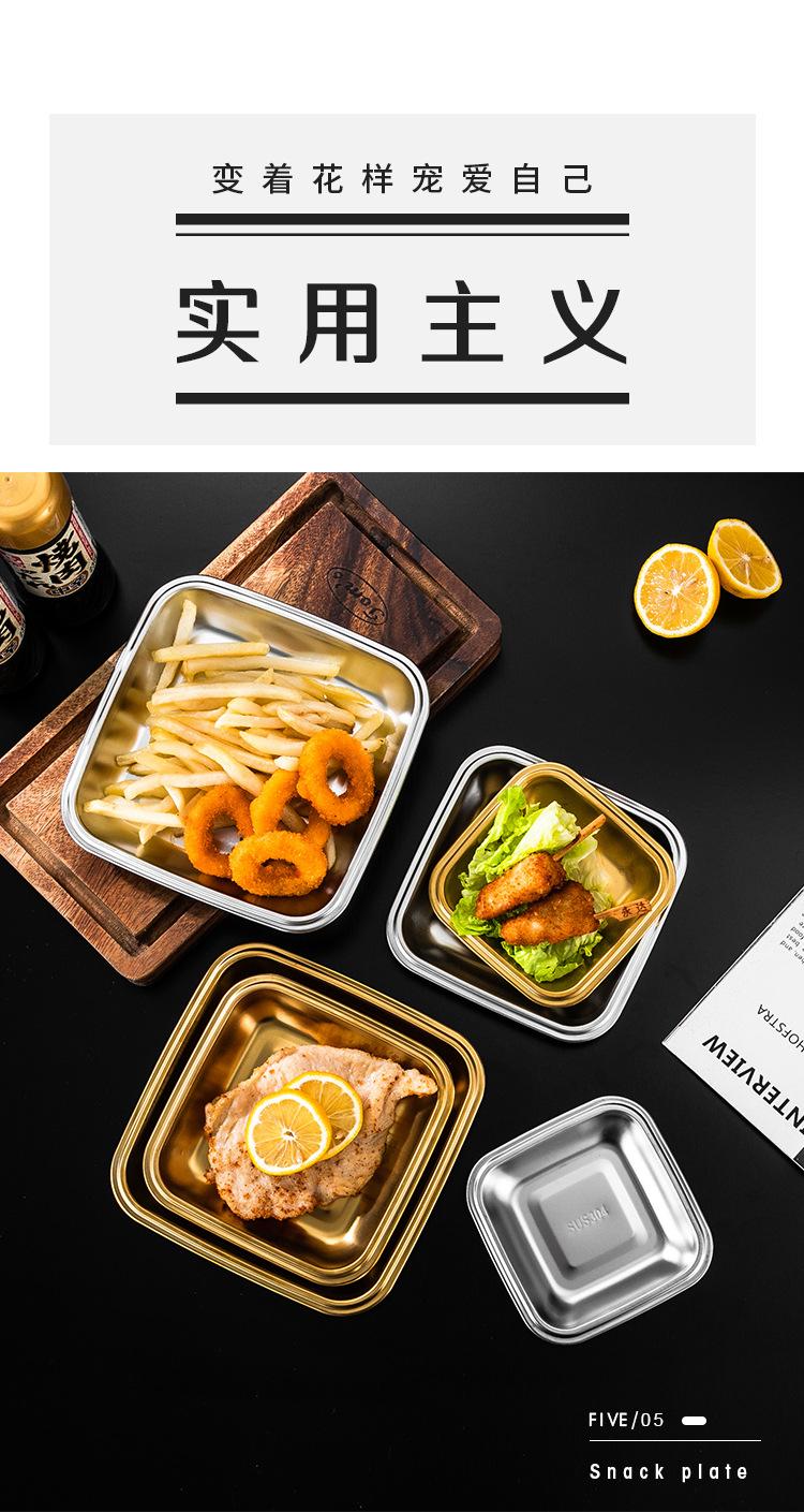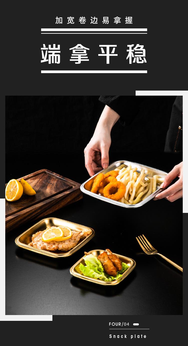 Plato Cuadrado de Acero Inoxidable 304 Plato Comercial Dorado para Barbacoa Plato para Rollos de Arroz Bandeja Llana Plato para Snacks
