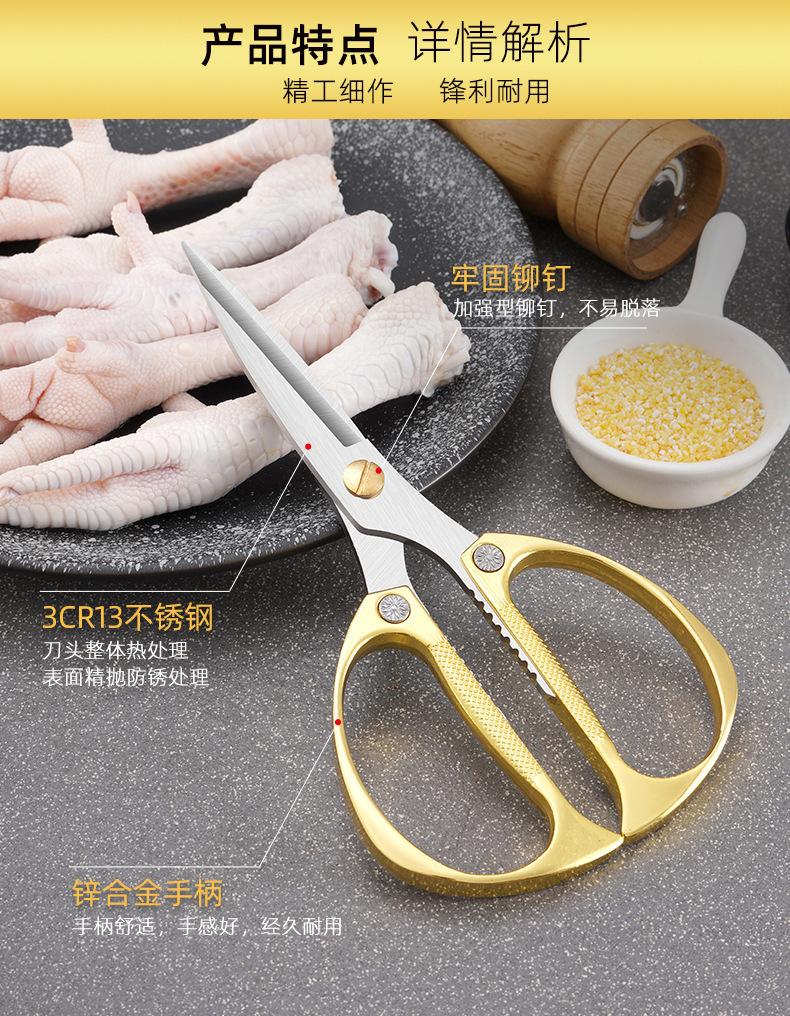 Tijeras de Acero Inoxidable Doradas Tijeras de Cocina Poderosas Tijeras de Sastre Tijeras Hechas a Mano Tijeras Domésticas Grandes Mango de Aleación de Aluminio