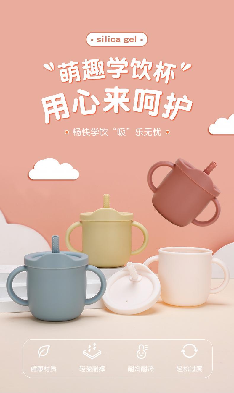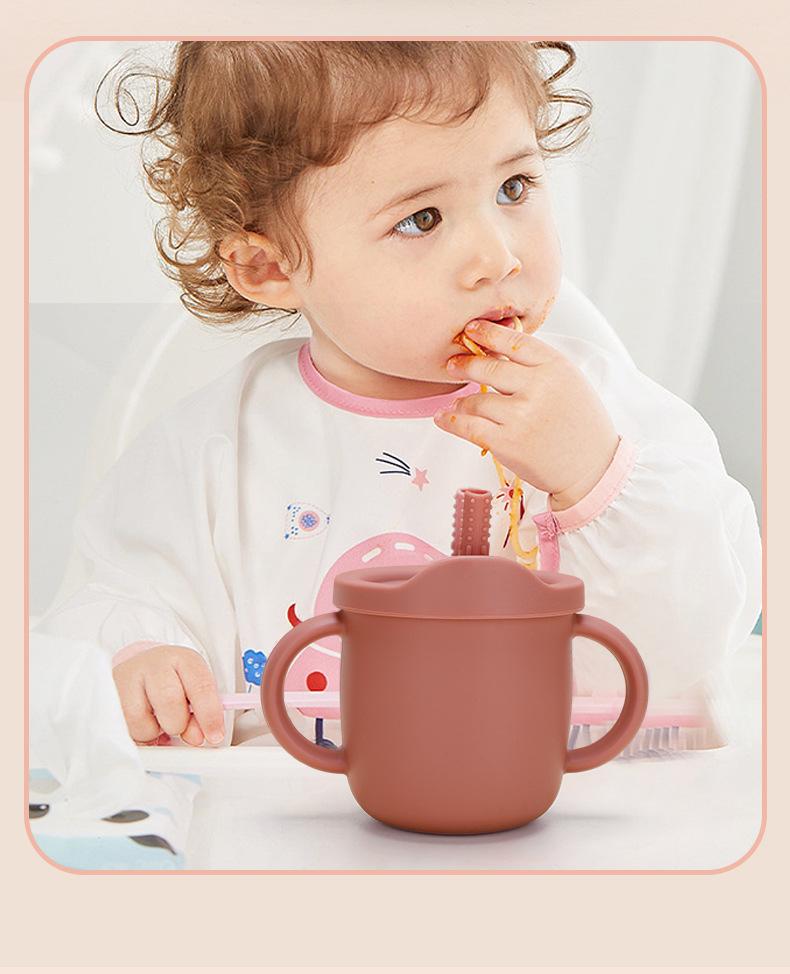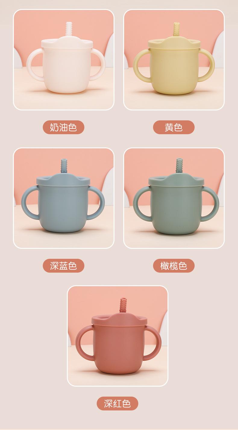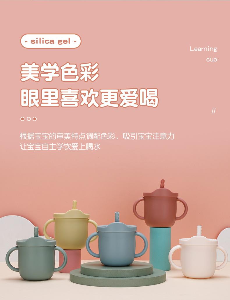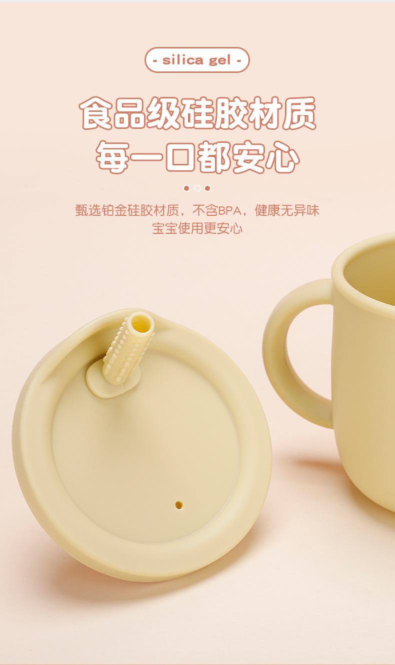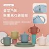 Set Completo de Vaso de Agua de Silicona para Niños Transfronterizo Vaso con Disco Compartimentado para Bebé Babero para Bebé Tazón para Alimentar Cuchara Tenedor Vaso con Pajita