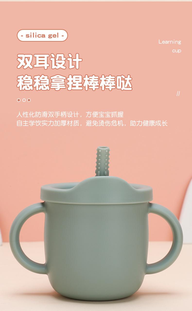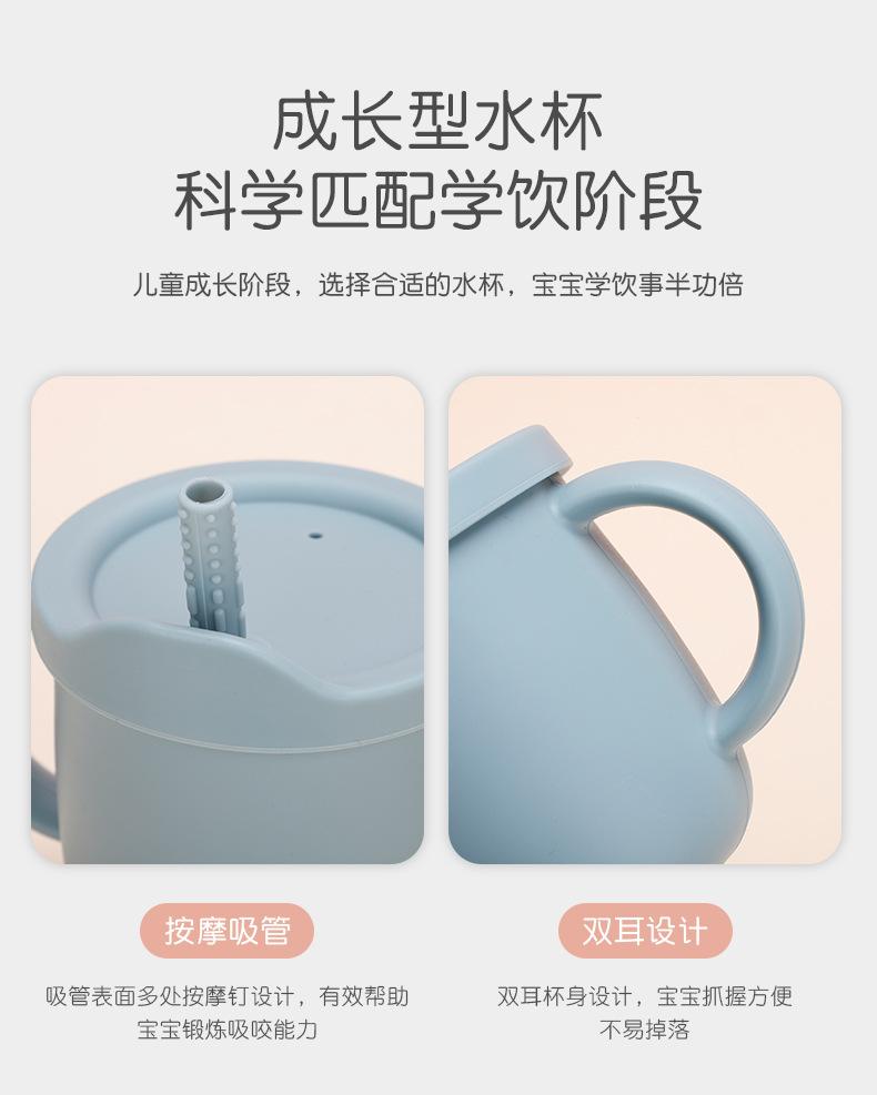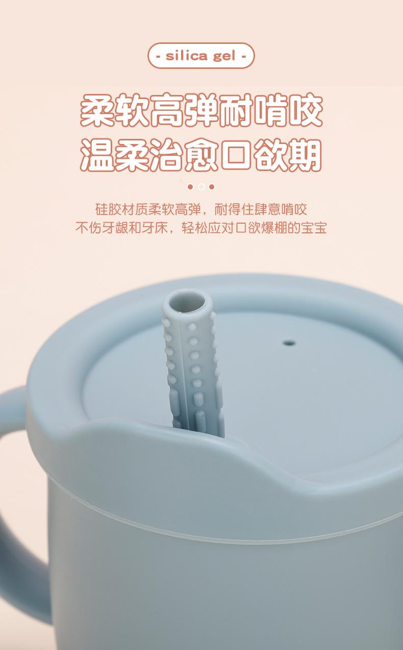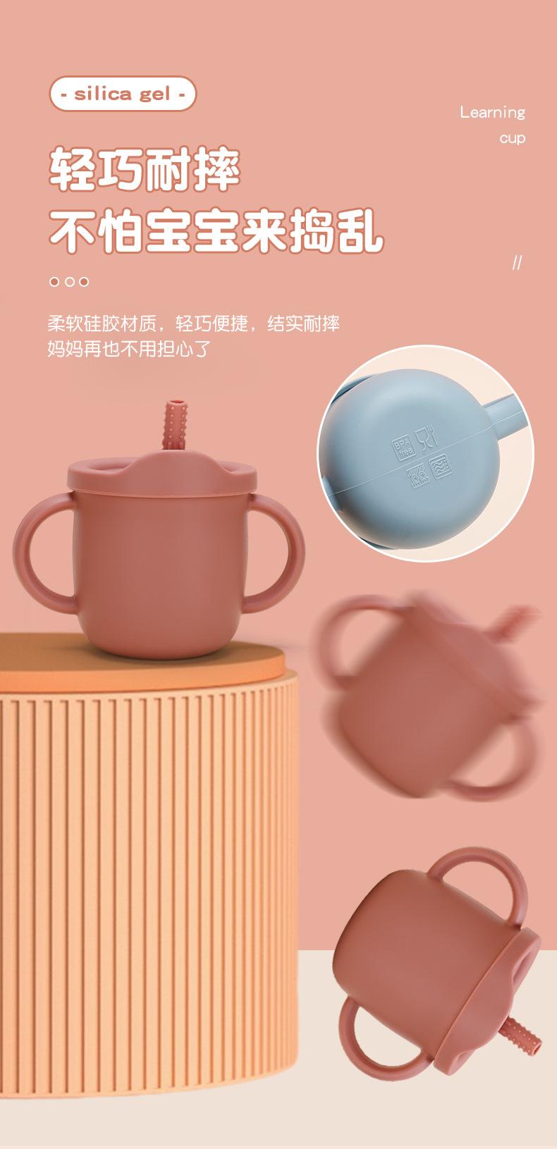 Set Completo de Vaso de Agua de Silicona para Niños Transfronterizo Vaso con Disco Compartimentado para Bebé Babero para Bebé Tazón para Alimentar Cuchara Tenedor Vaso con Pajita