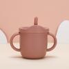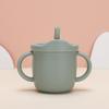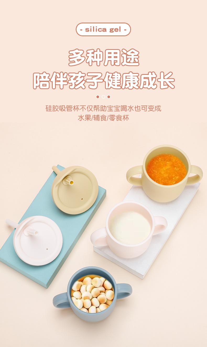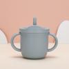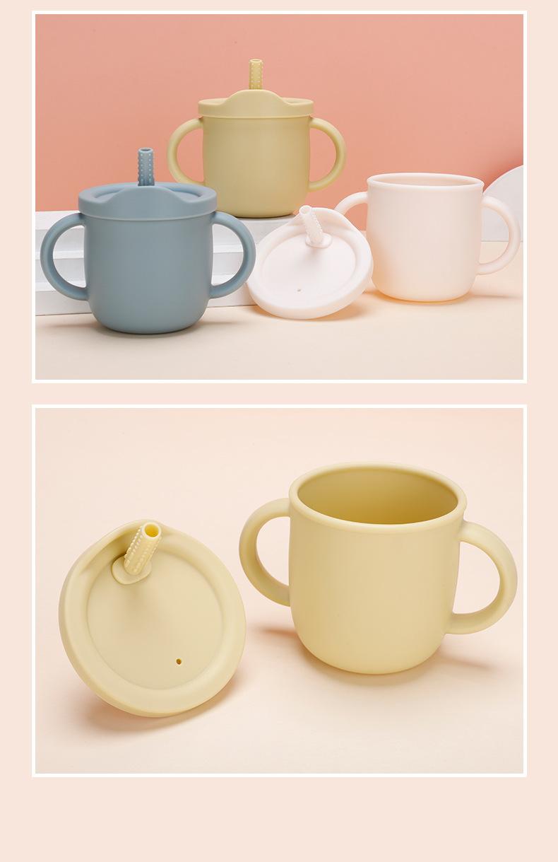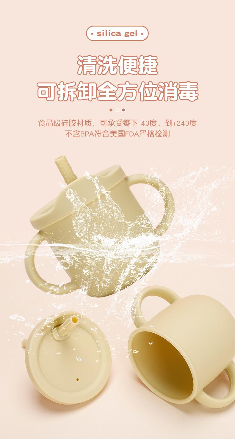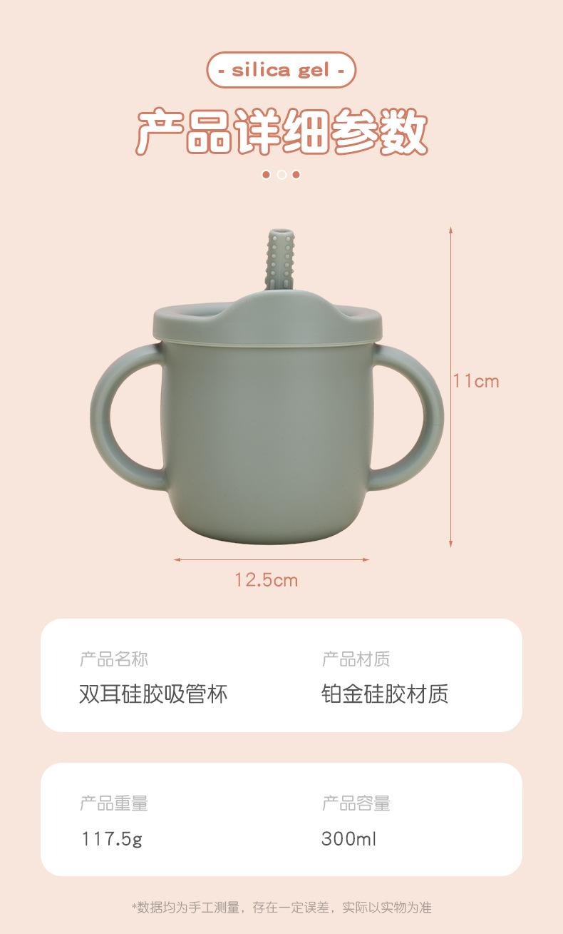Set Completo de Vaso de Agua de Silicona para Niños Transfronterizo Vaso con Disco Compartimentado para Bebé Babero para Bebé Tazón para Alimentar Cuchara Tenedor Vaso con Pajita