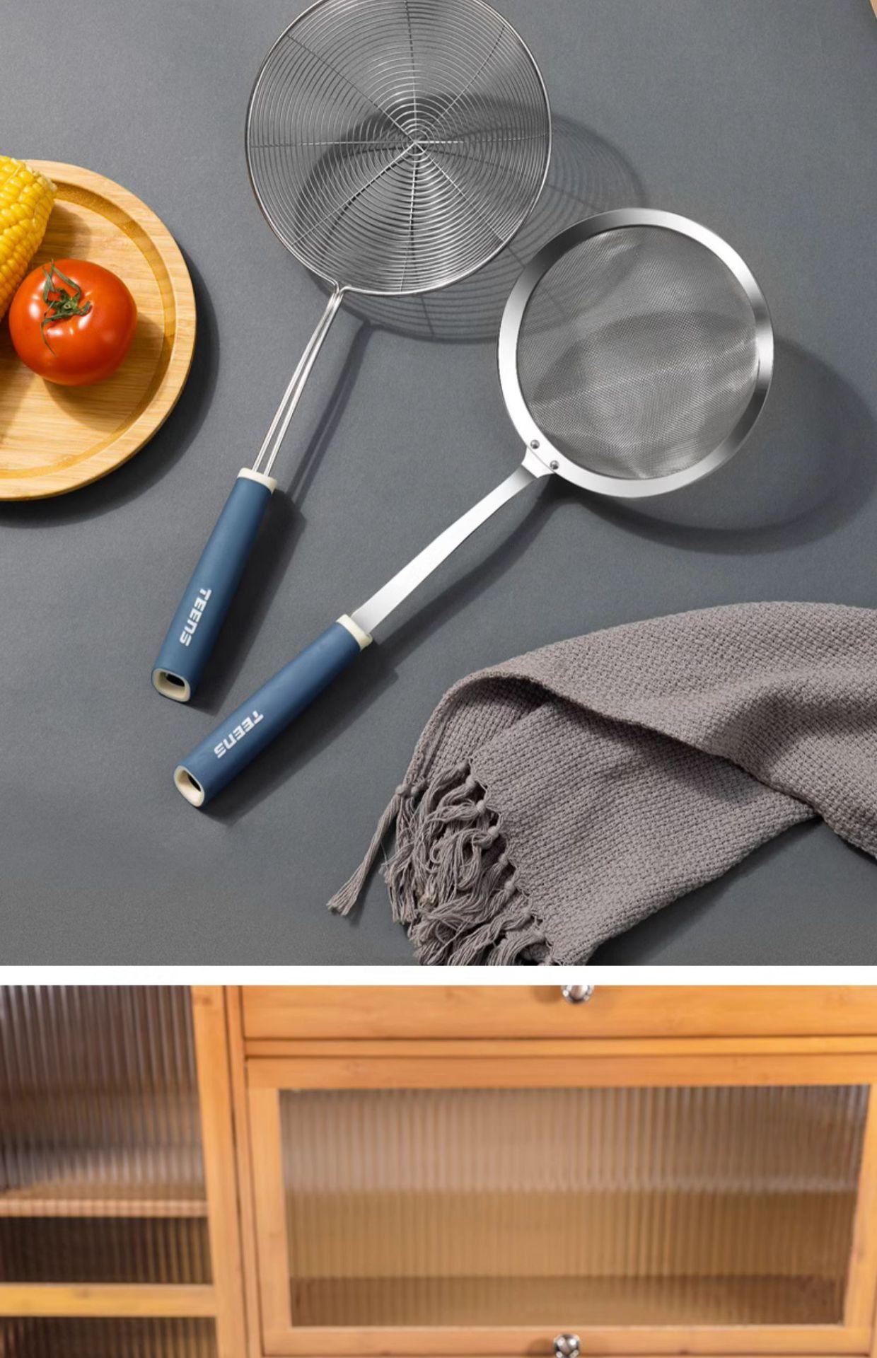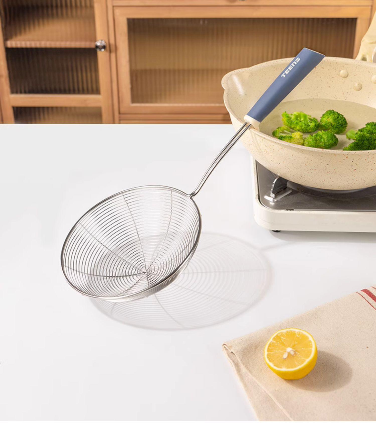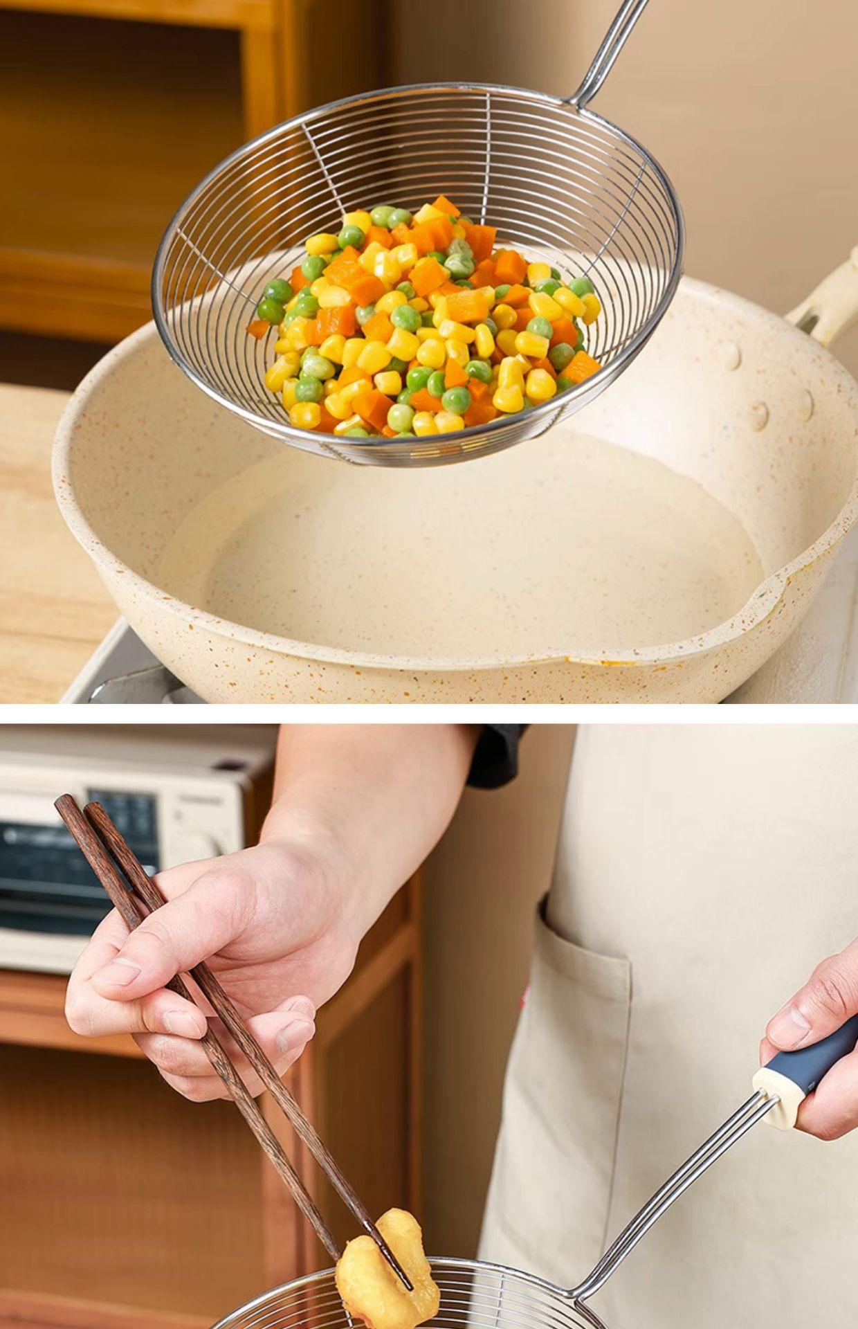 Acero Inoxidable 304 Hogar Cocina Malla Fina Espumadera Colador Filtro Tamiz para Fideos y Espumar Espumadera Grande