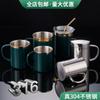 Taza de una sola capa 304 con tapa y asa, taza de acero inoxidable engrosado para beber agua, hogar, niños, jardín de infancia, oficina