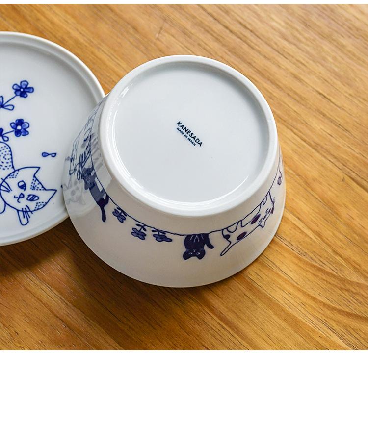 Tazones de té japoneses de la serie Meow Mino-Yaki importados, tazones de arroz, tazones planos de cerámica, platos pequeños, tazas de sopa domésticas de boca recta