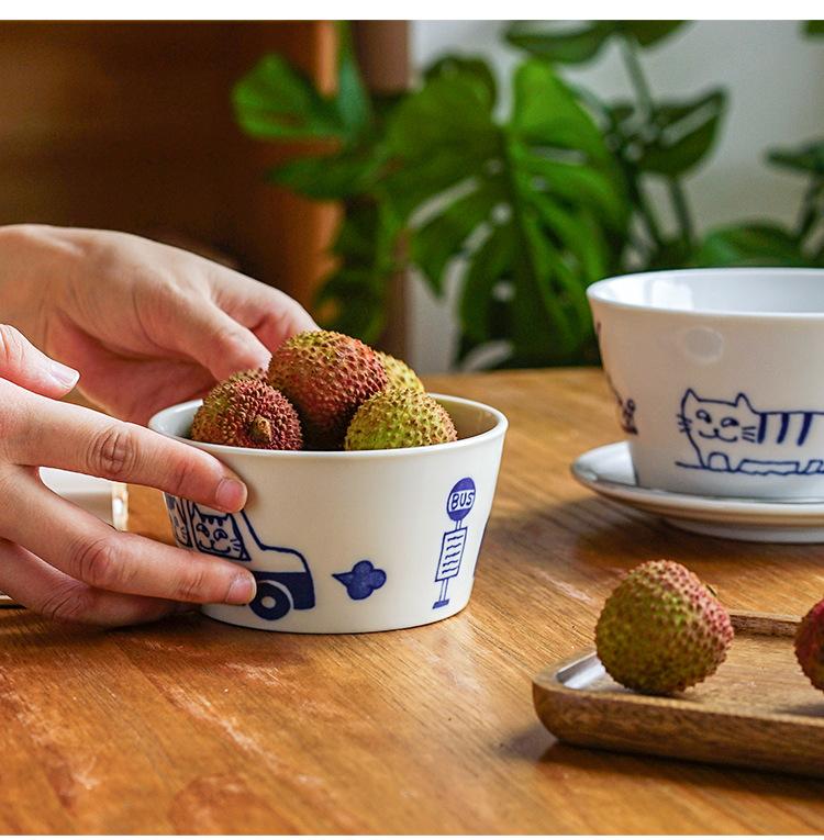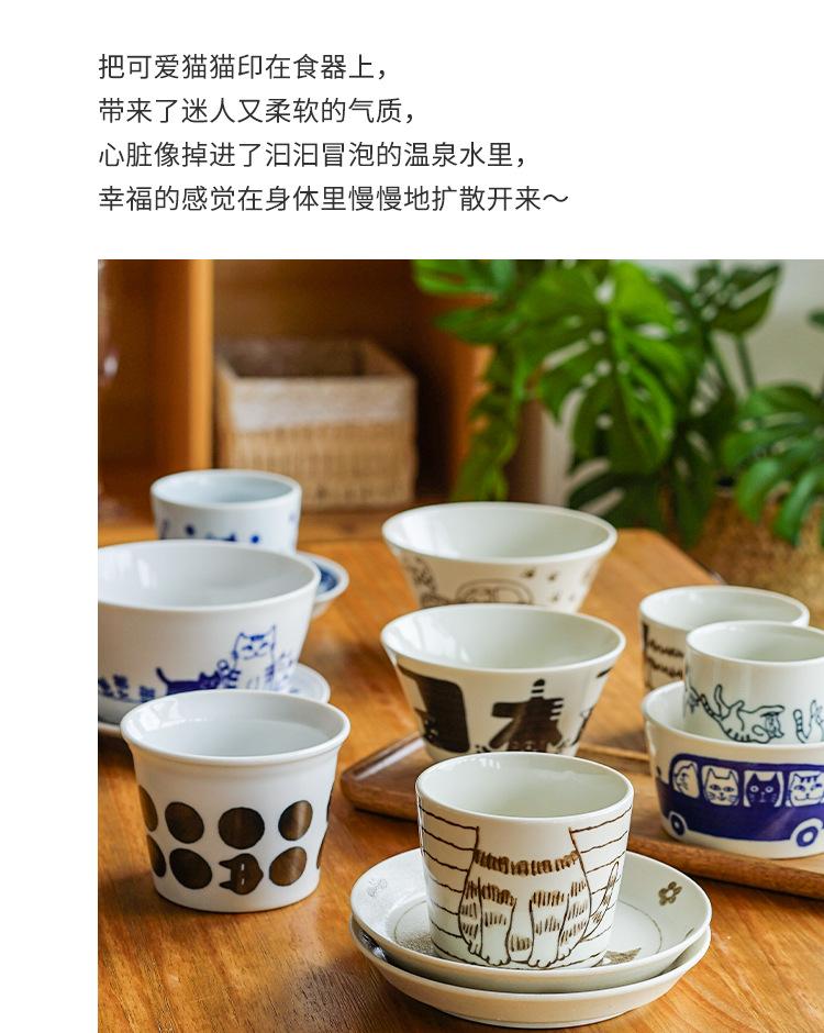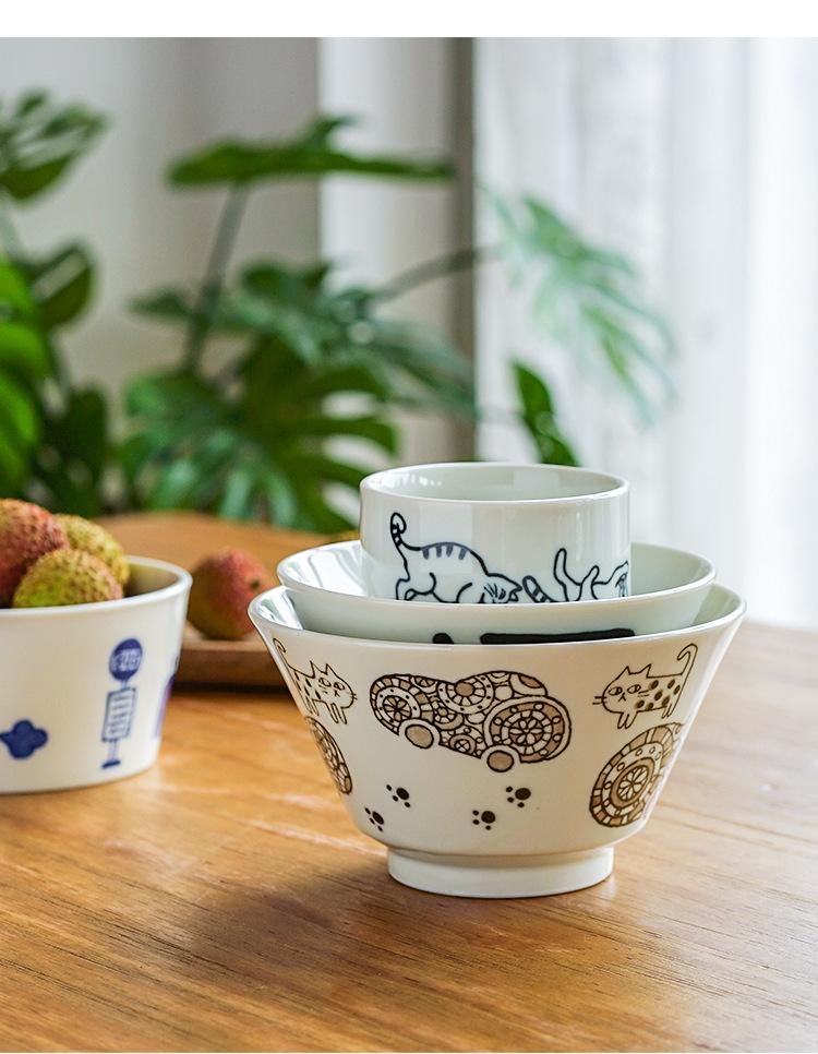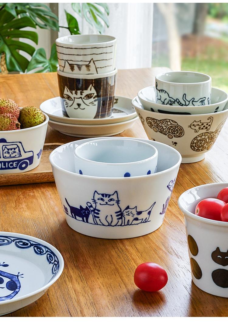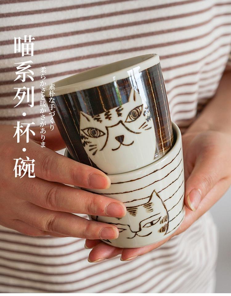 Compra Tazones de té japoneses de la serie Meow Mino-Yaki importados, tazones de arroz, tazones planos de cerámica, platos pequeños, tazas de sopa domésticas de boca recta al por mayor en Joom.pro